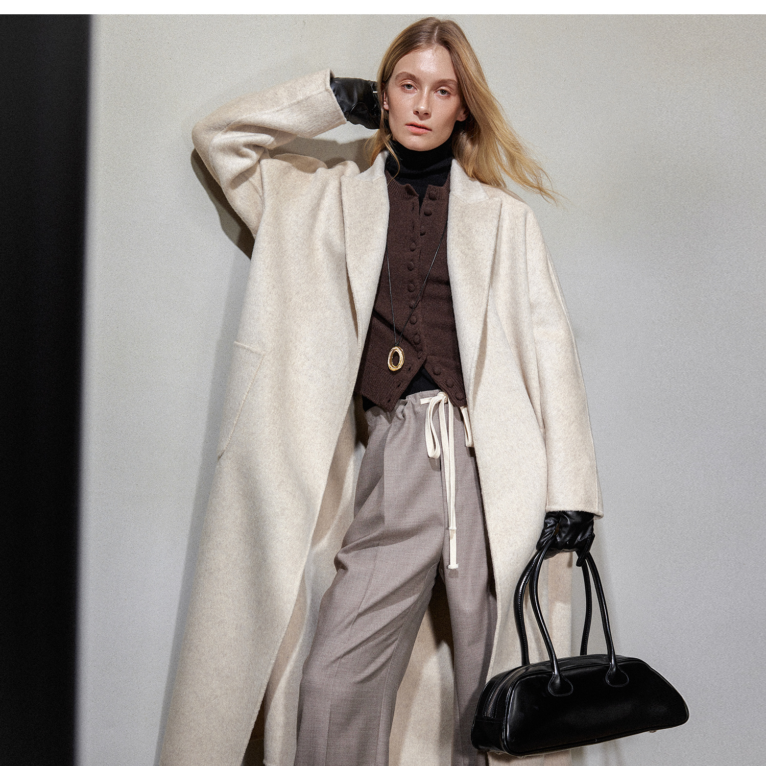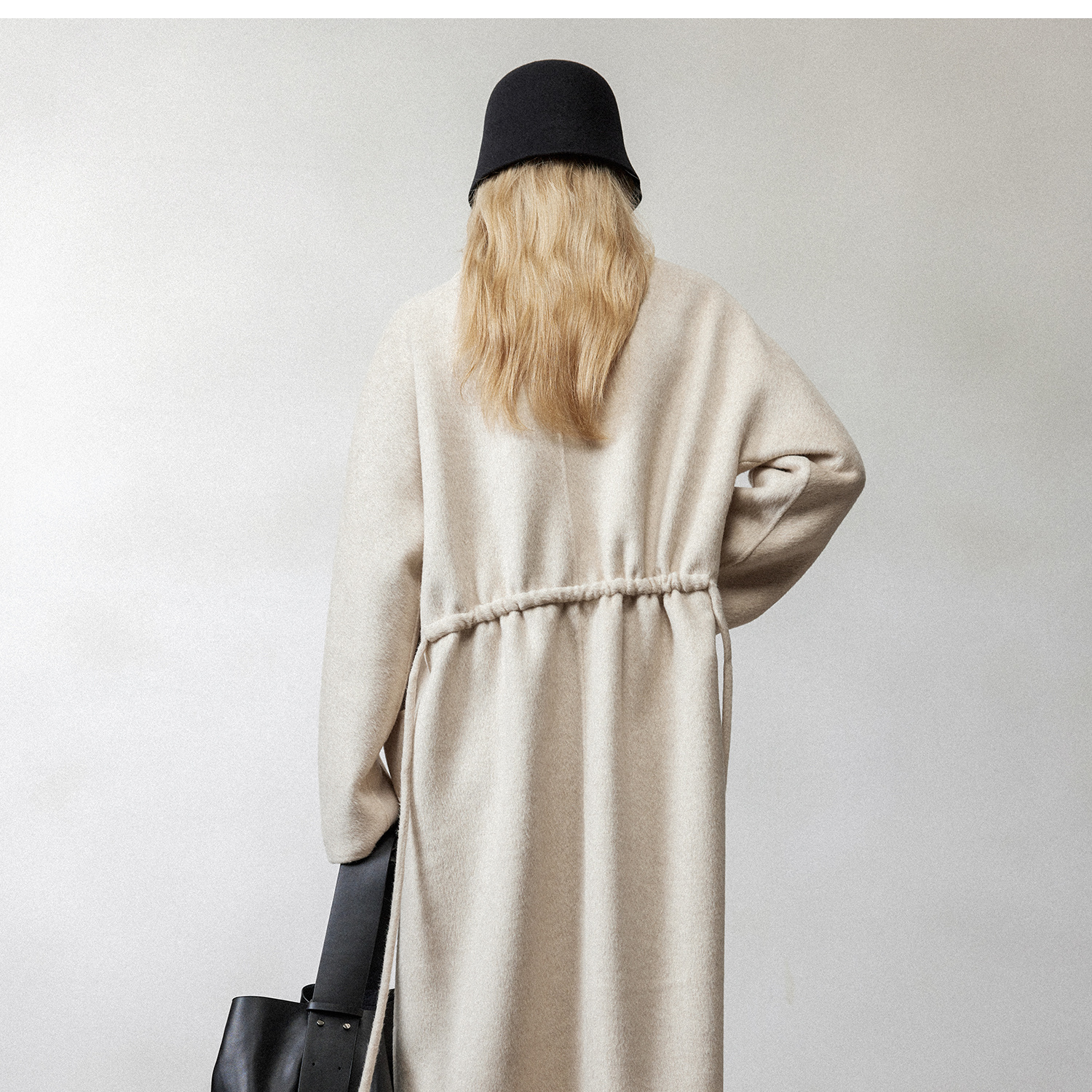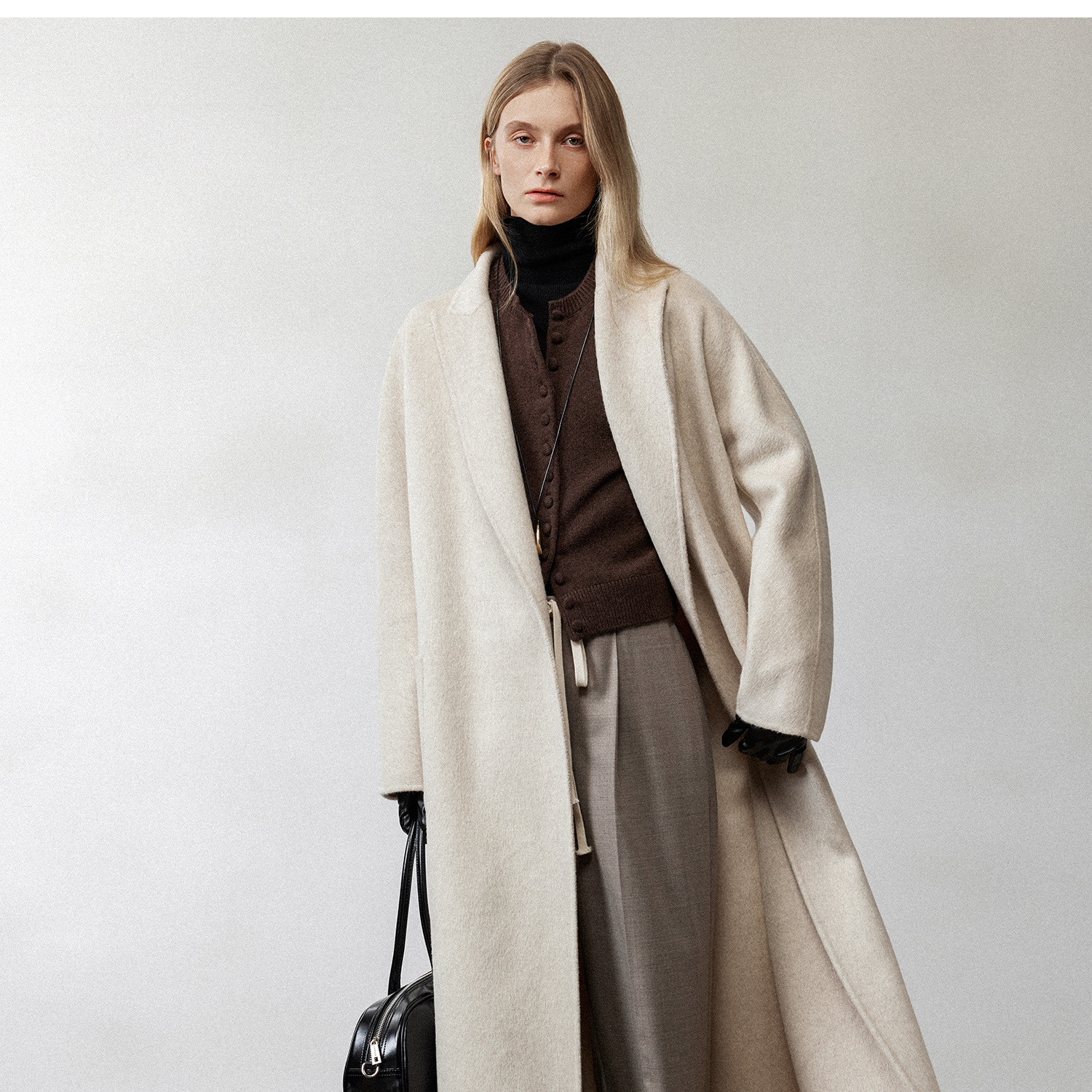 松弛感牦牛绒桑蚕丝羊毛混纺时髦抽绳浴袍式大衣2024冬新DY2404002