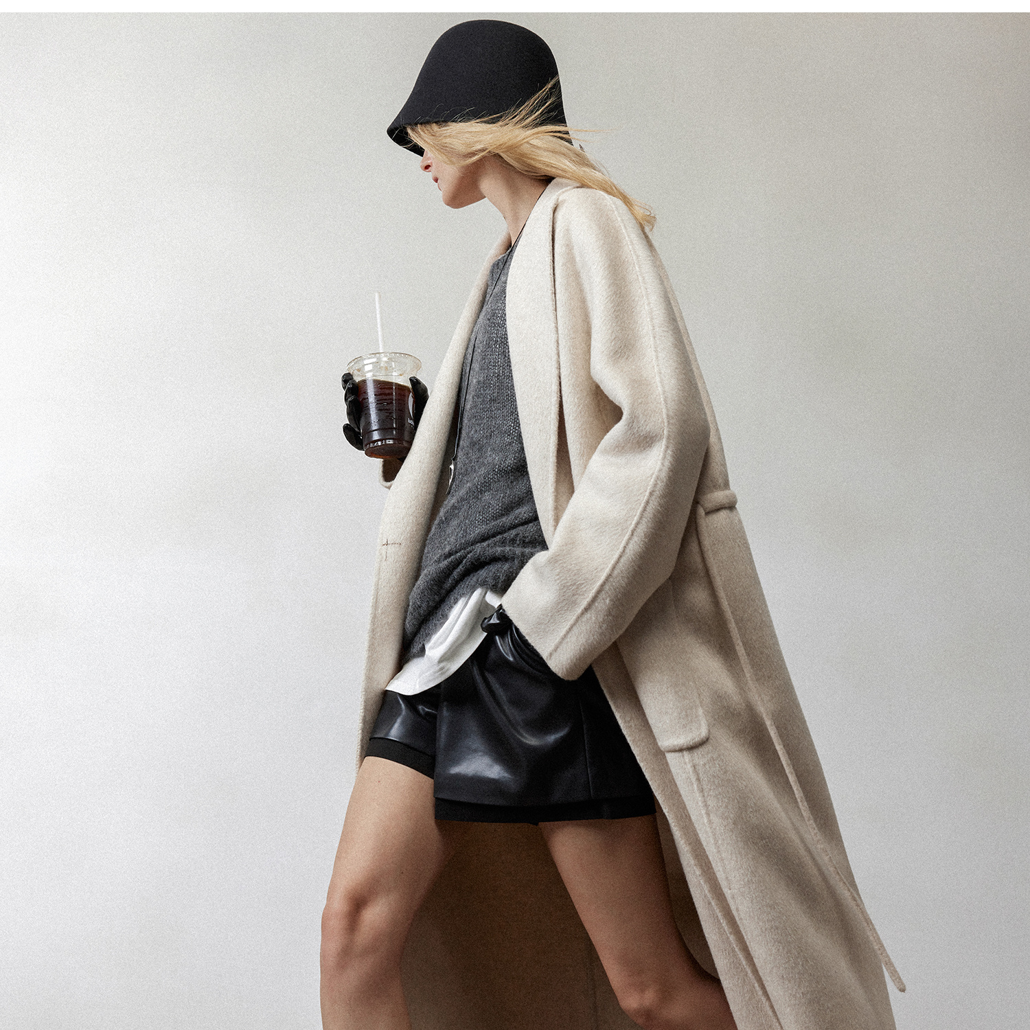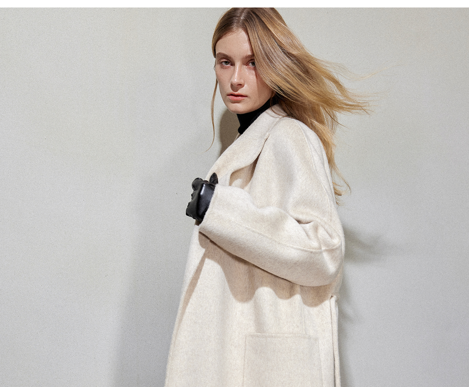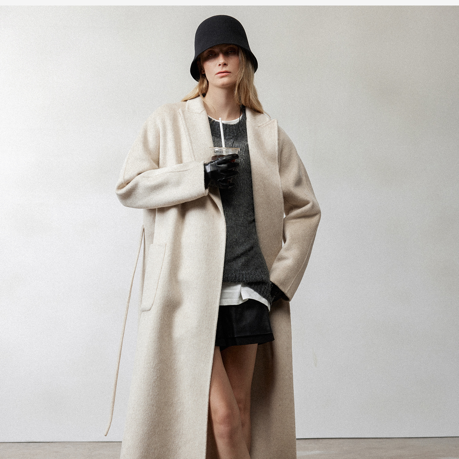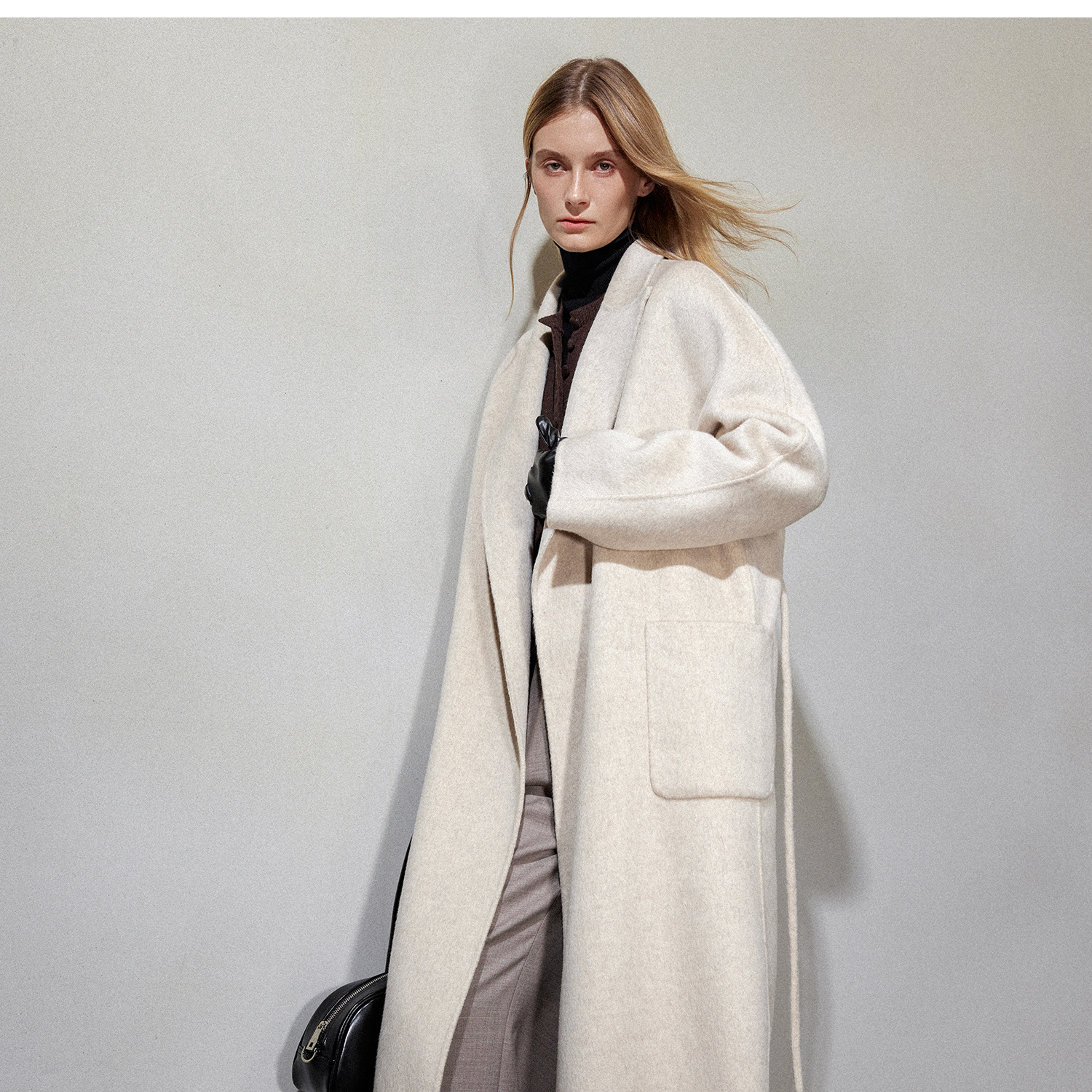 松弛感牦牛绒桑蚕丝羊毛混纺时髦抽绳浴袍式大衣2024冬新DY2404002