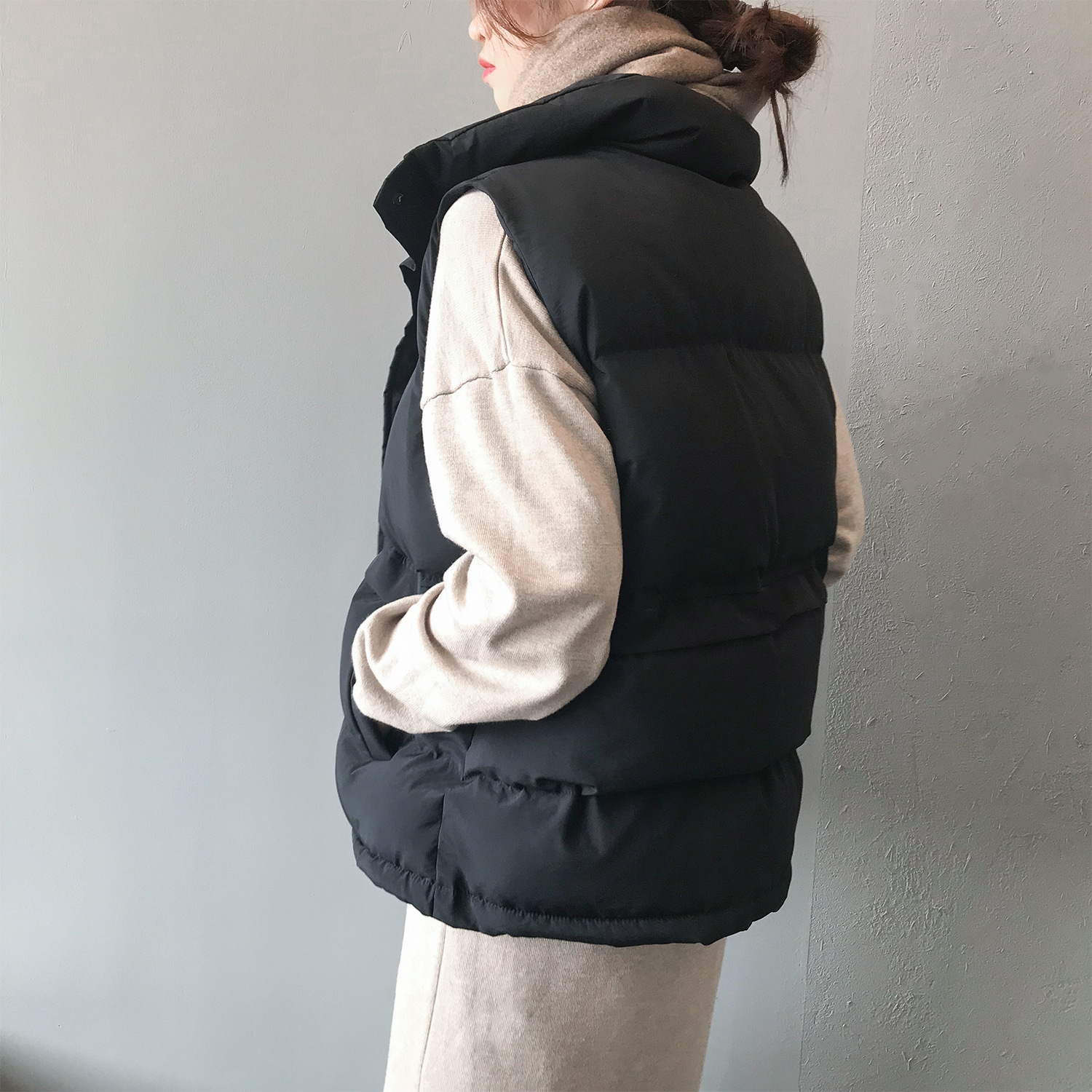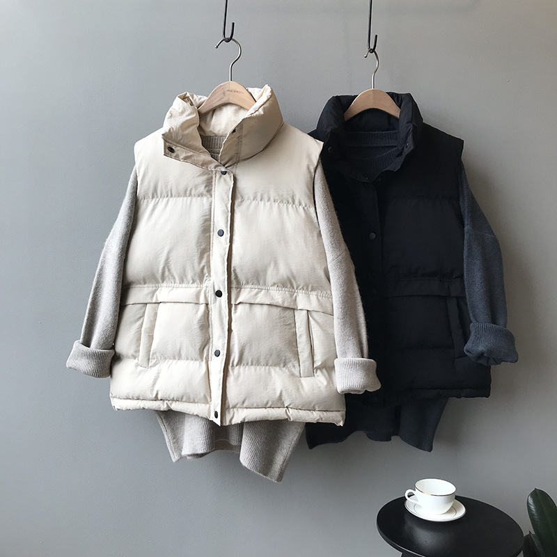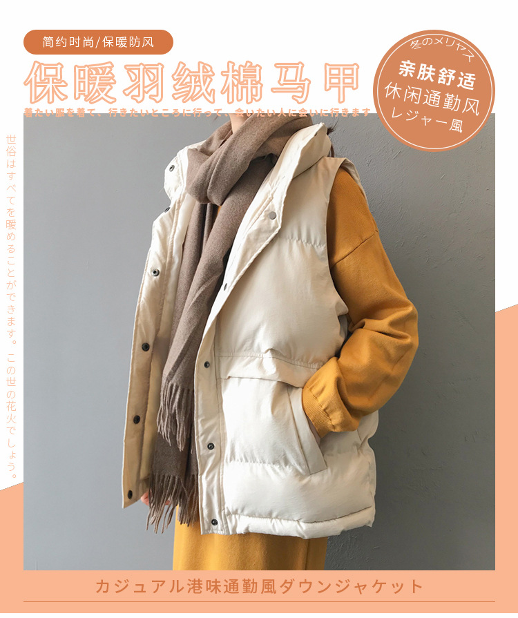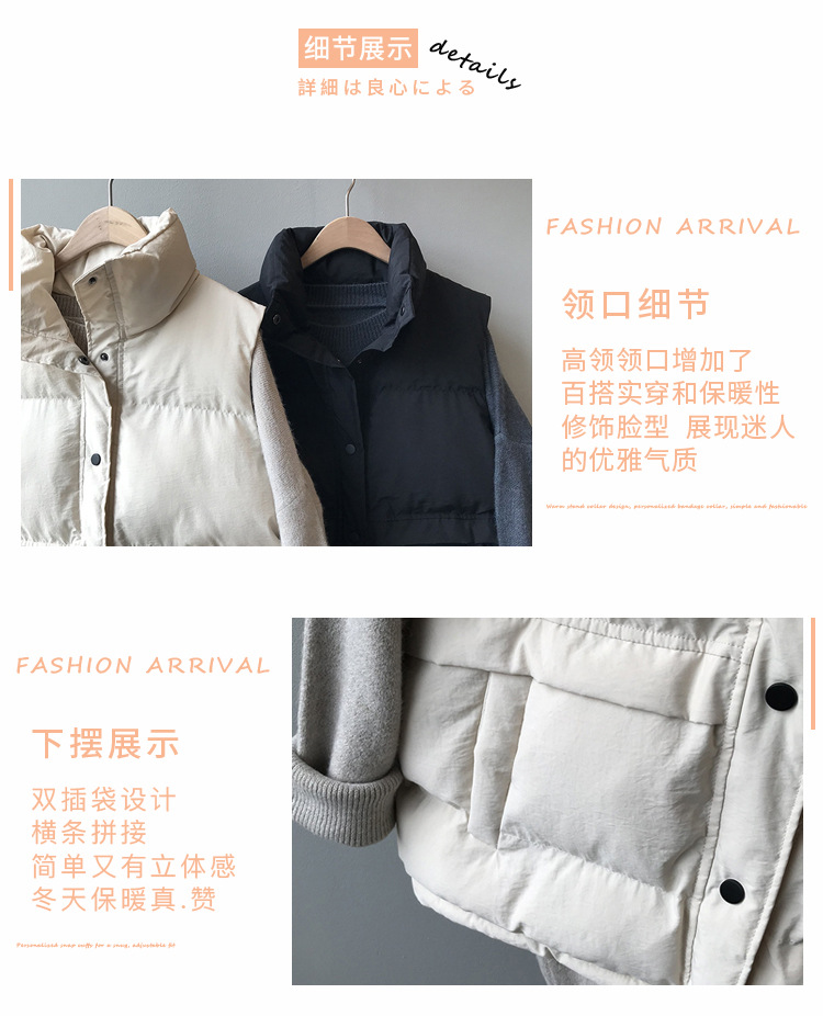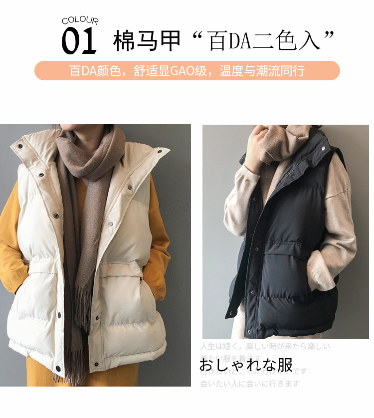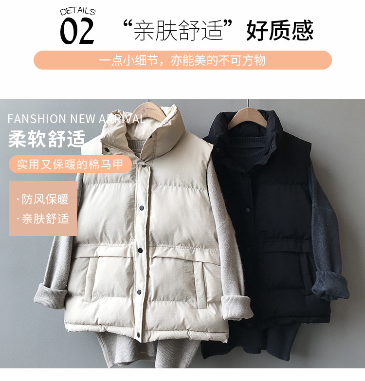 【百搭颜色,舒适亲肤好质感!】羽绒棉马甲女,韩版宽松新款,秋冬马甲背心 翻领短款面包外套-QQ