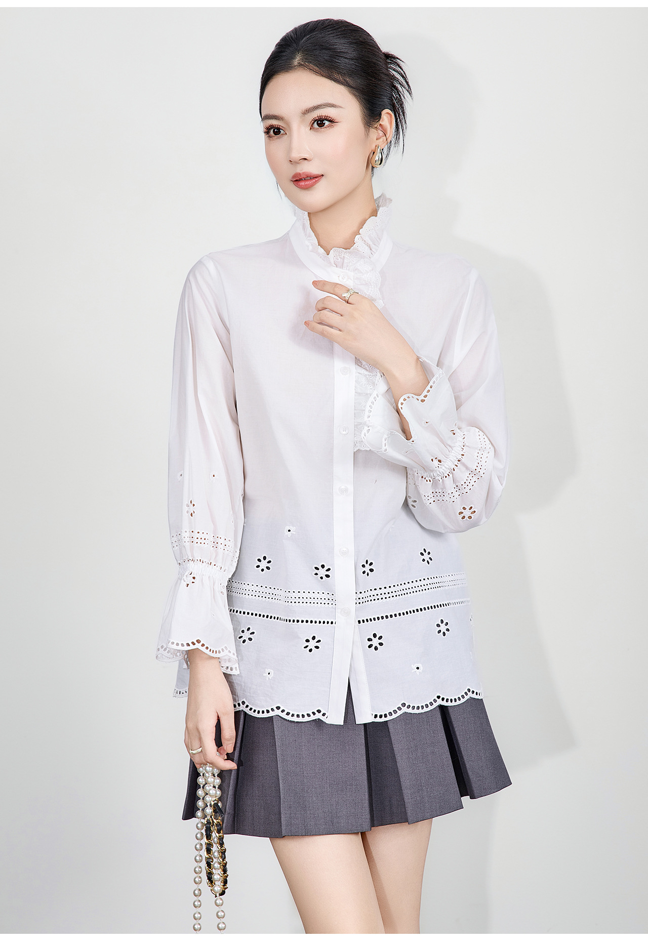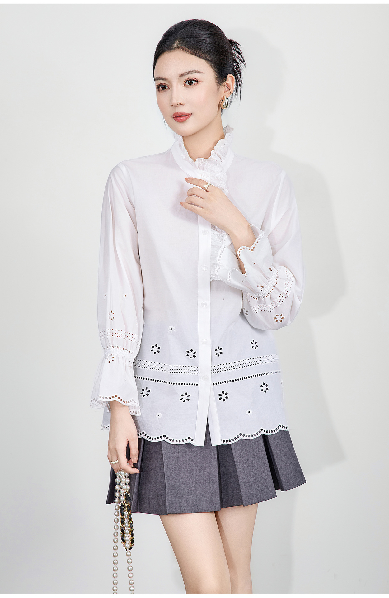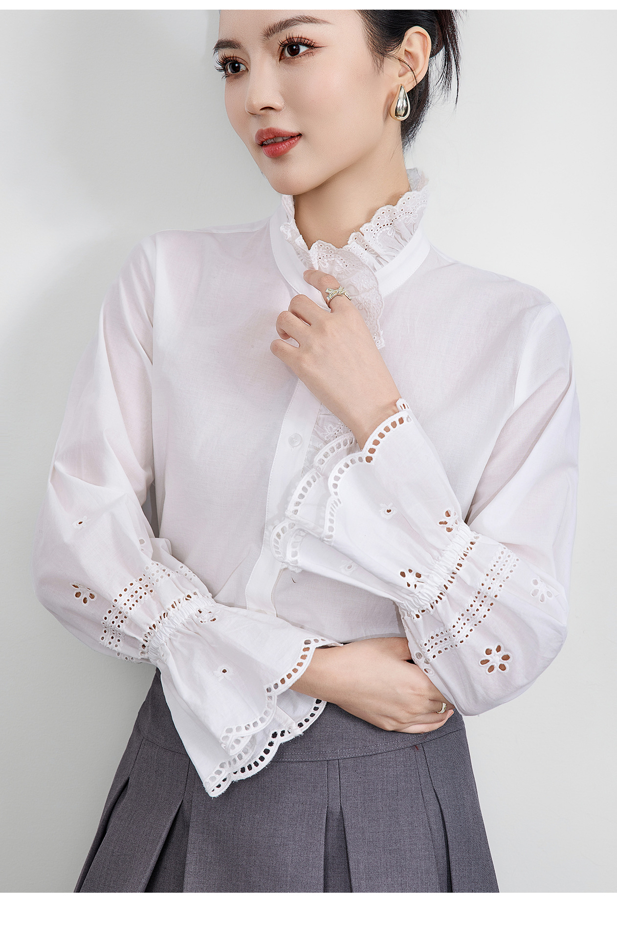 「高货wl」全新升级【铂金会员293/天猫389/差价96】(95125)洛诗琳浪漫蕾丝花边立领衬衫2025秋季设计感刺绣镂空上衣