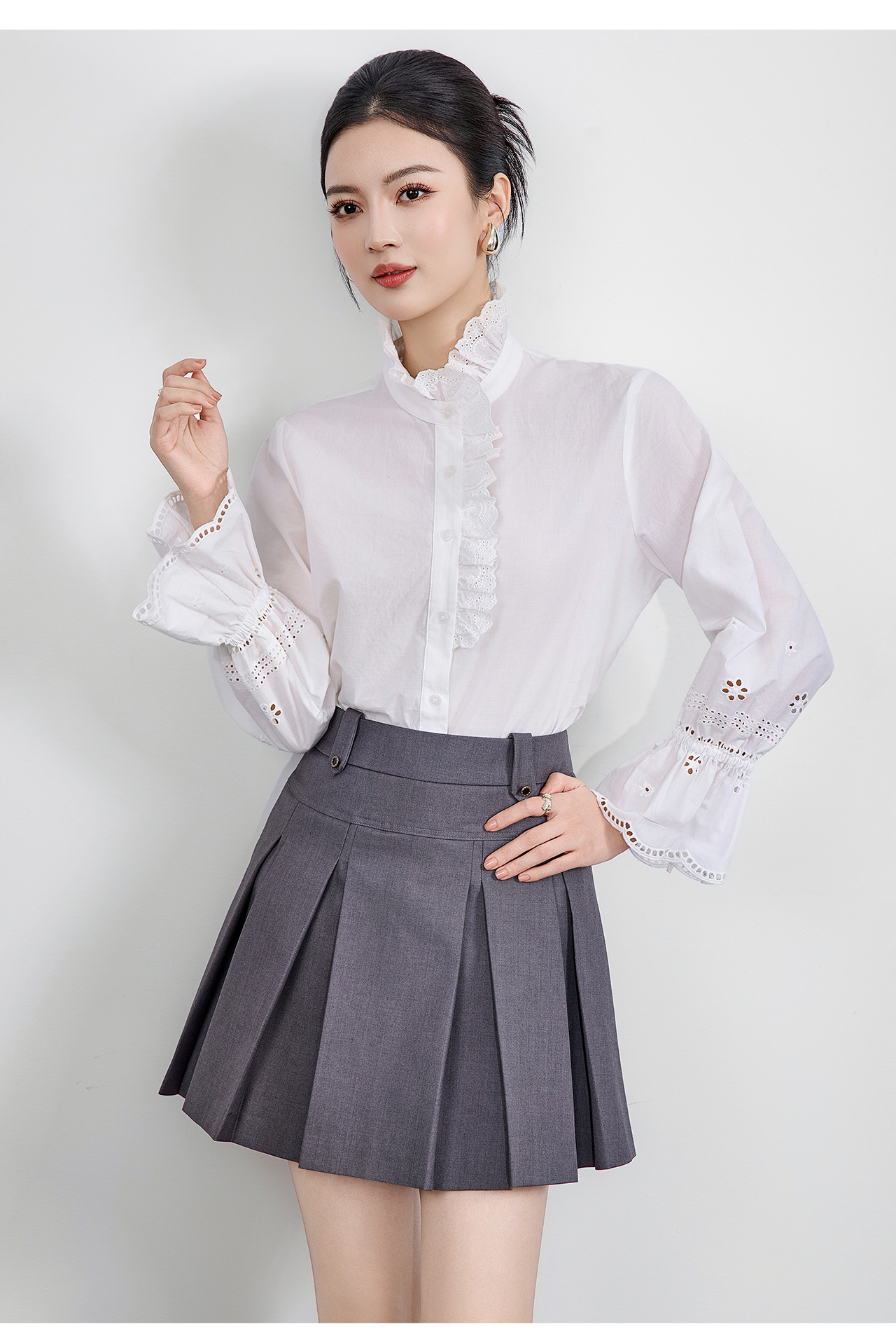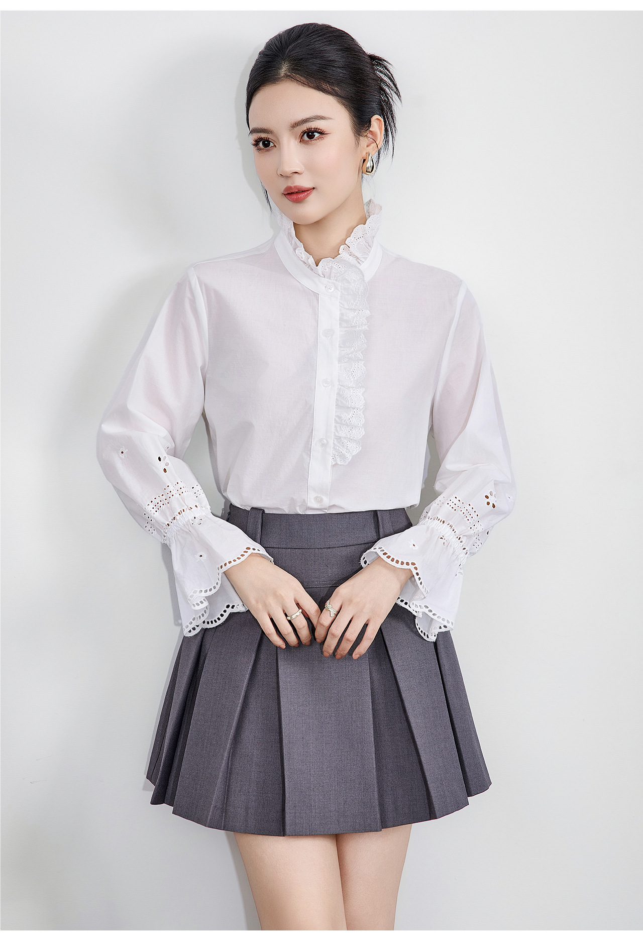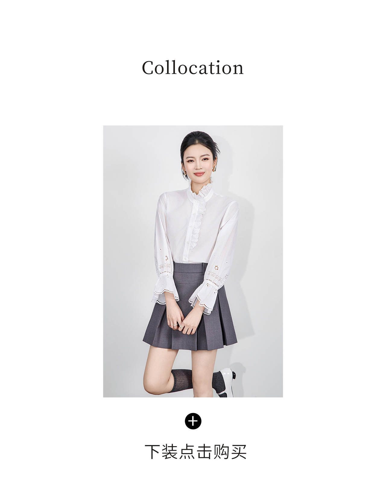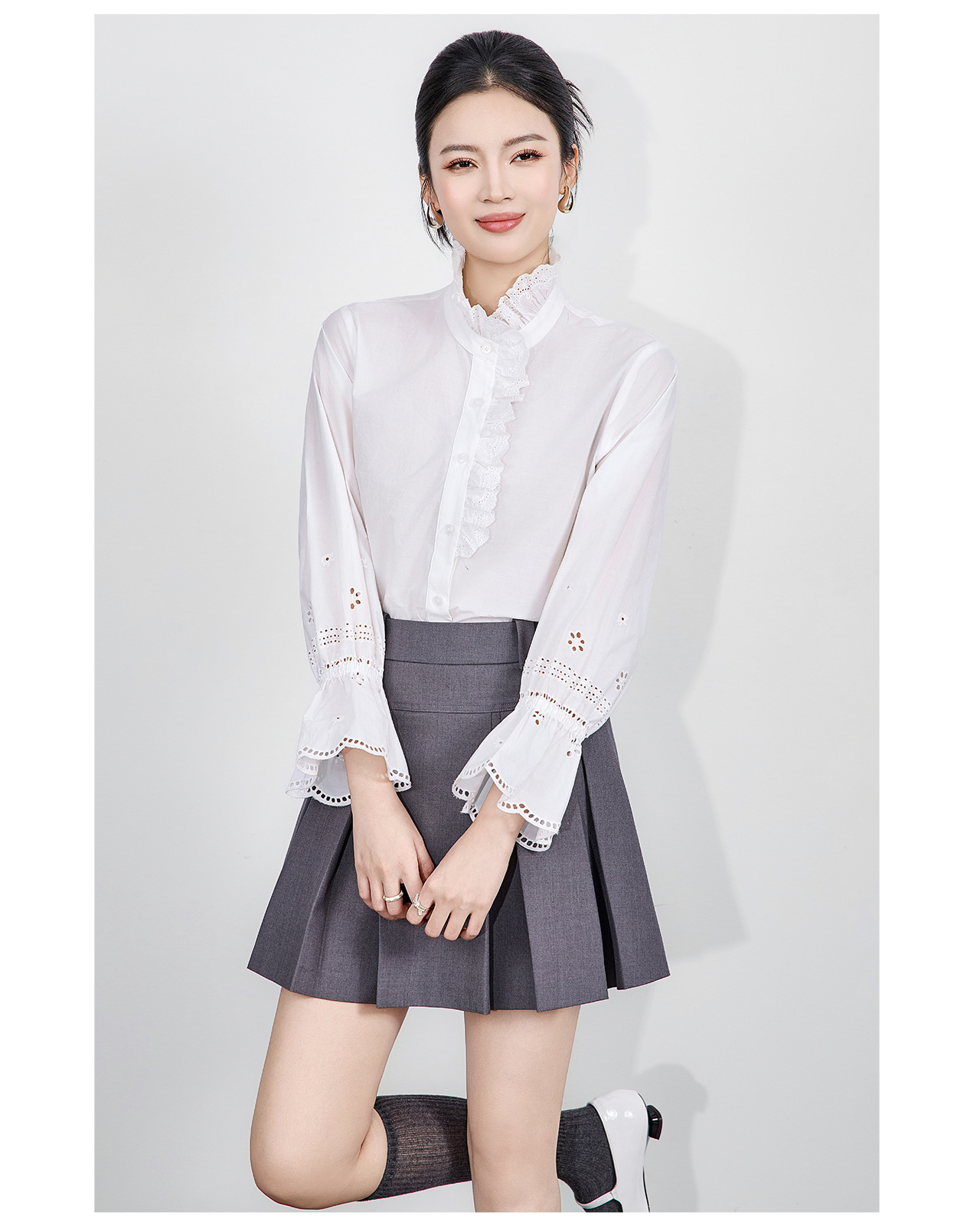 「高货wl」全新升级【铂金会员293/天猫389/差价96】(95125)洛诗琳浪漫蕾丝花边立领衬衫2025秋季设计感刺绣镂空上衣
