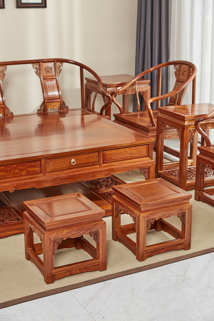 红木沙发是身份和地位的象征,因其雍容华贵、富贵典雅而深受消费者的亲赖。