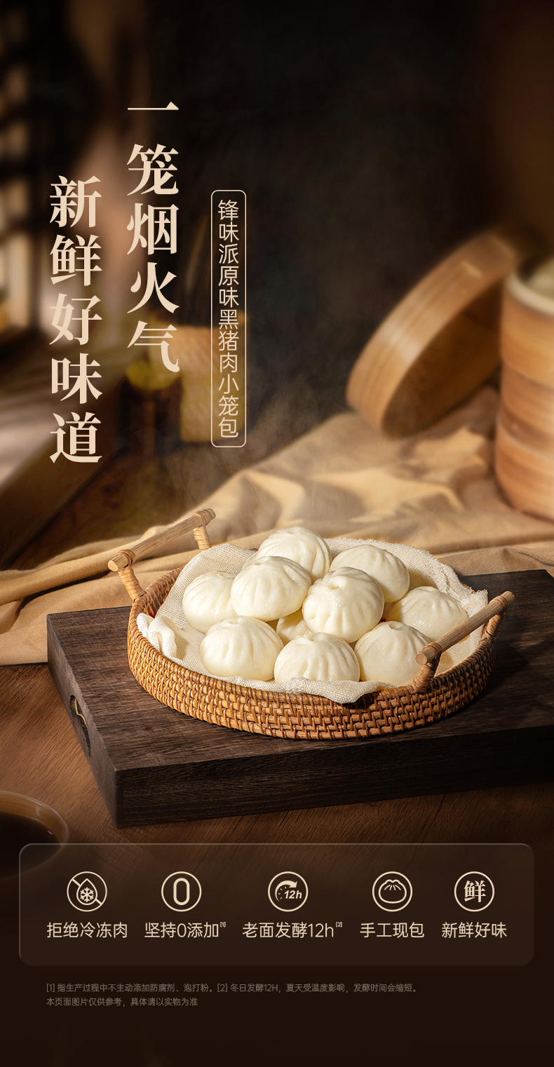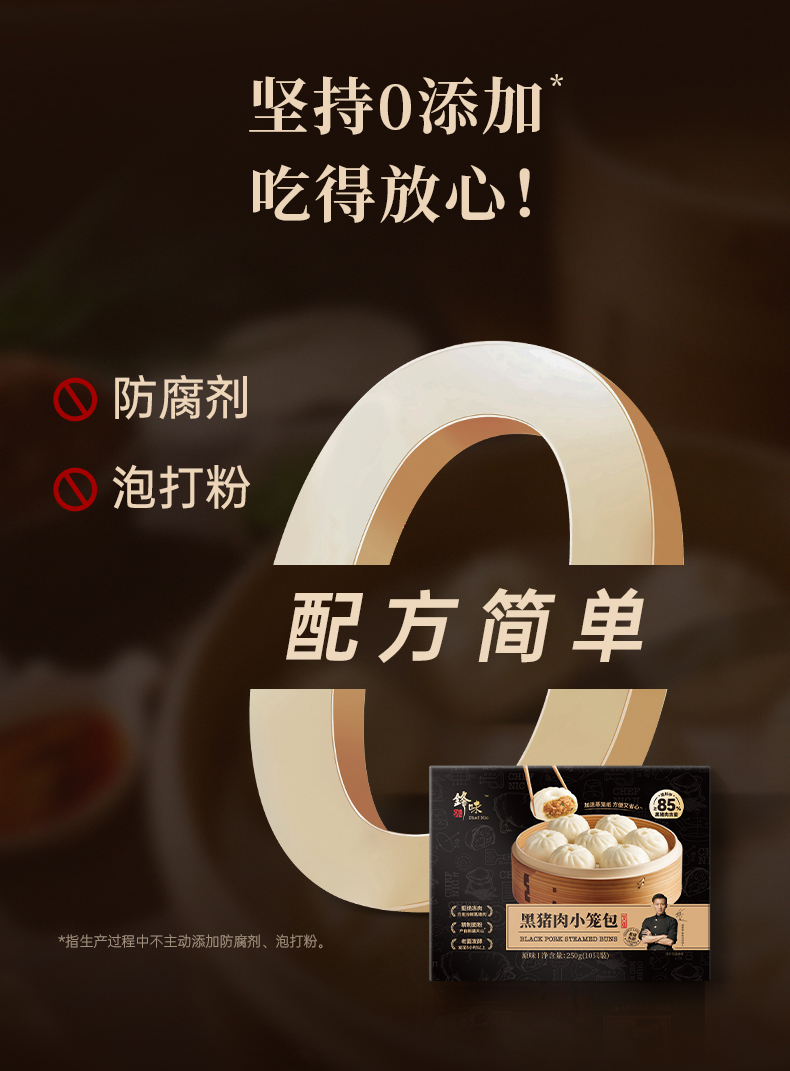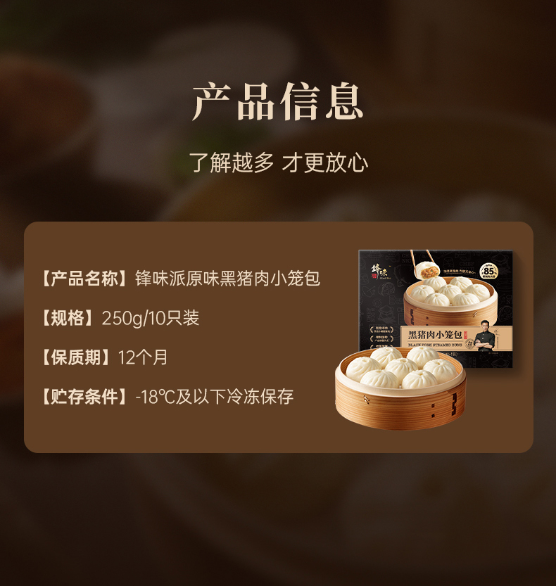 【预售-12月29日配送】锋味派黑猪肉小笼包(原味)/1包(10只,共250g)生产日期:25年10月