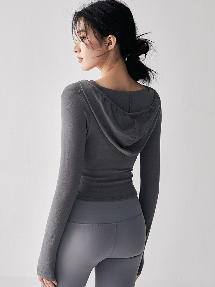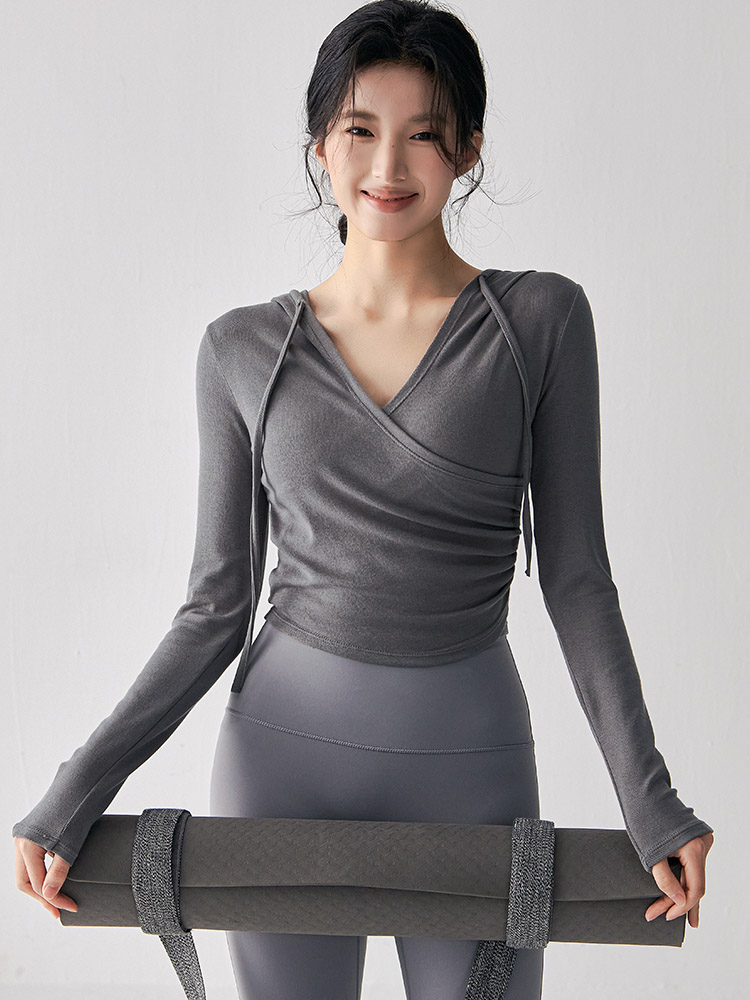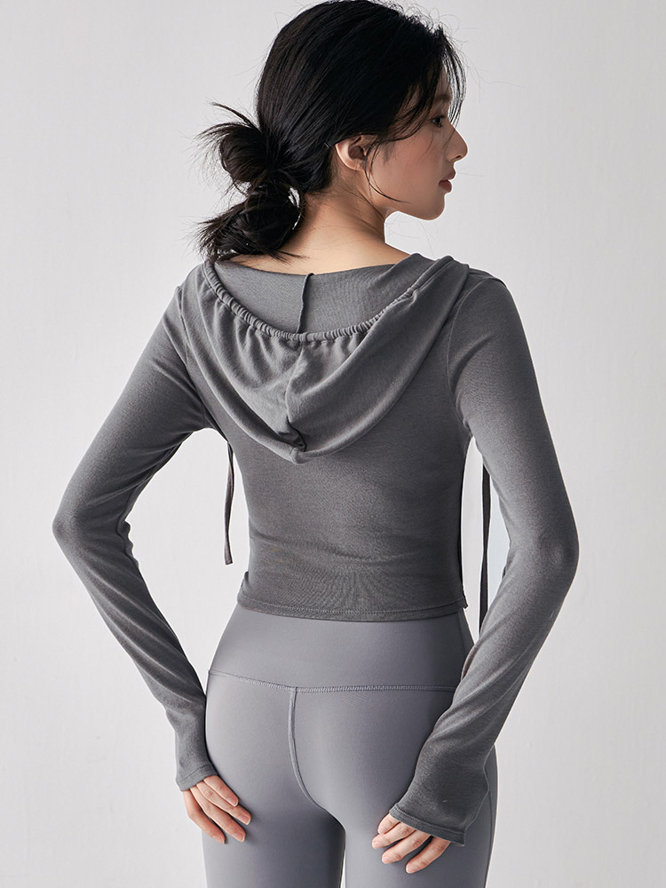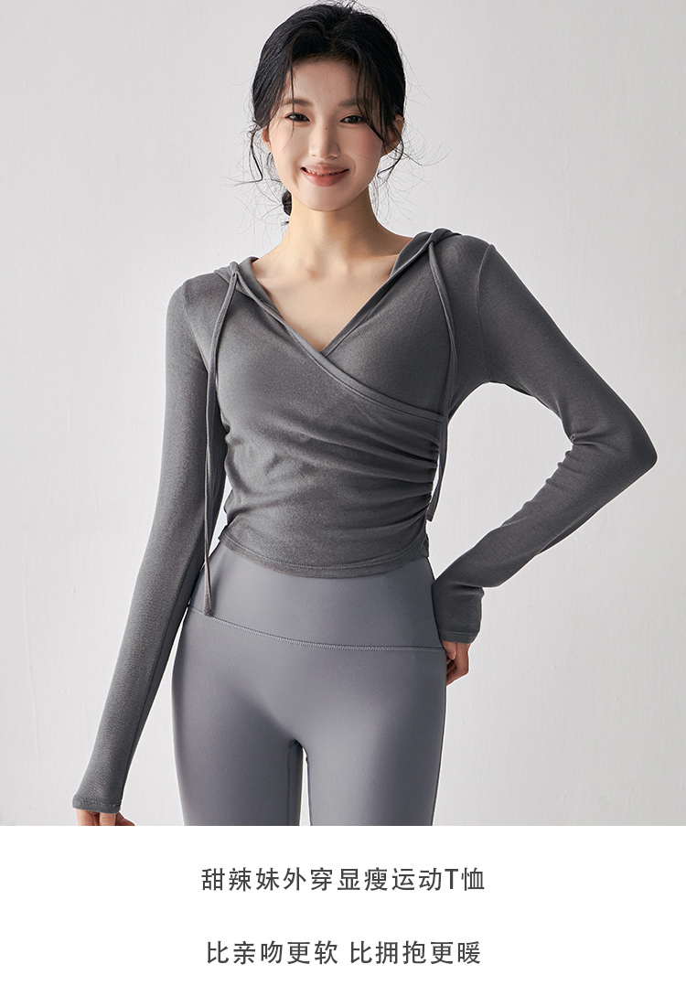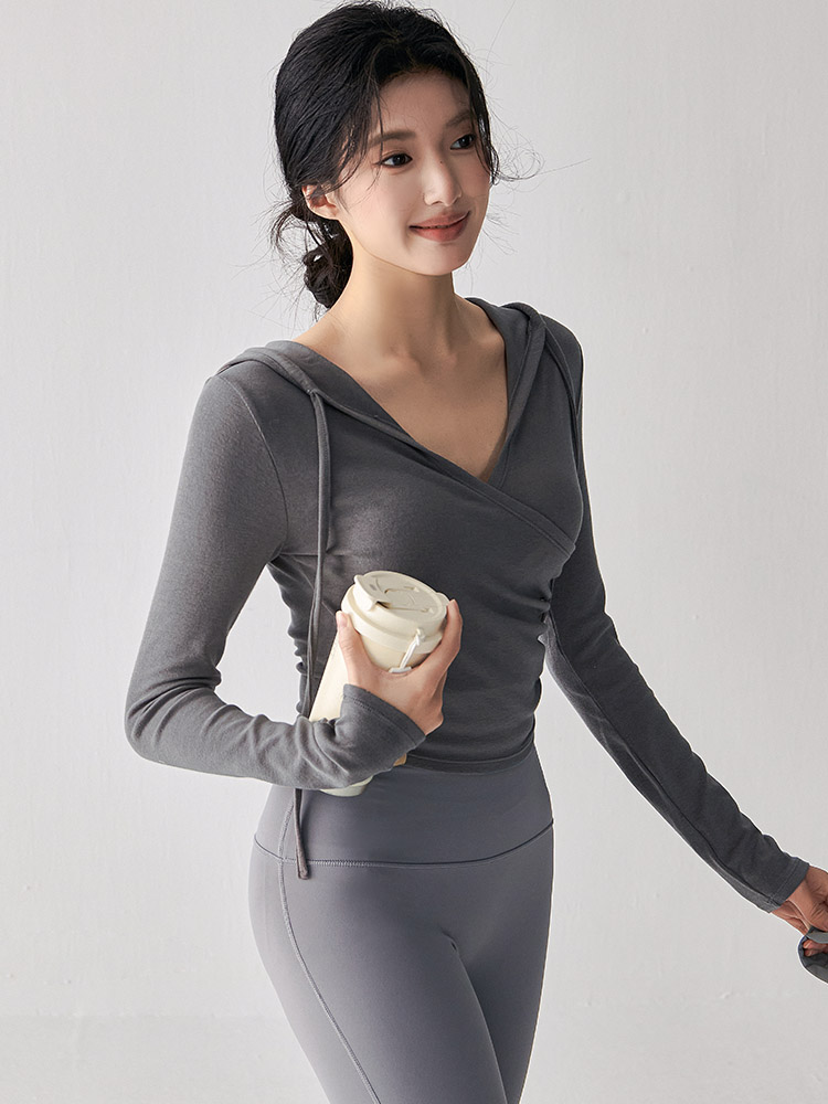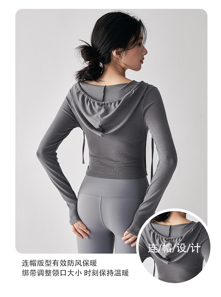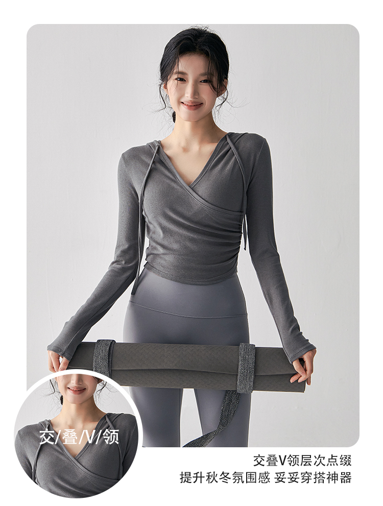 跃牌【美西西系列】秋季新款纯欲小心机交叉连帽瑜珈服女显瘦运动上衣辣妹外穿健身服CX-687