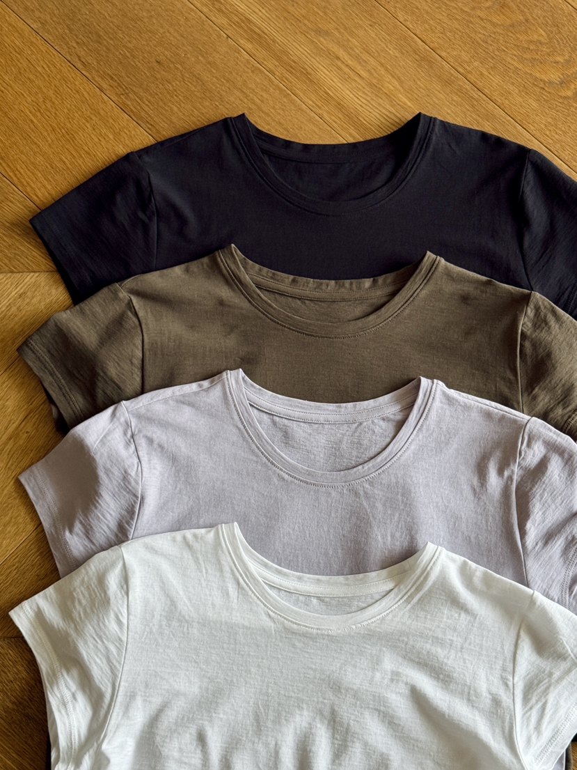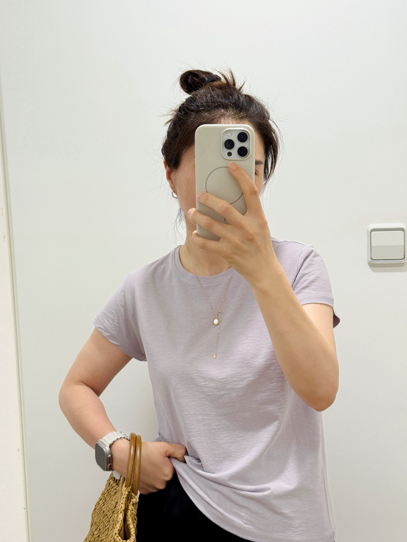 145克强捻棉,轻薄不透,筋骨有弹力,机洗也不散。基础款中的网王炸单品,收到试试你就知道了,领口不小,不勒脖子,领口窄边,加强棉纱捻度纤维的强韧度比普通的棉高出45%,表面纹路清晰,呈现细致的螺纹肌理正反面同样光洁富有自然弹力,肉眼可见的高级。初接触冷感功能,干爽透气体感,尤其是砂砂的肌肤感,舒服到爆!