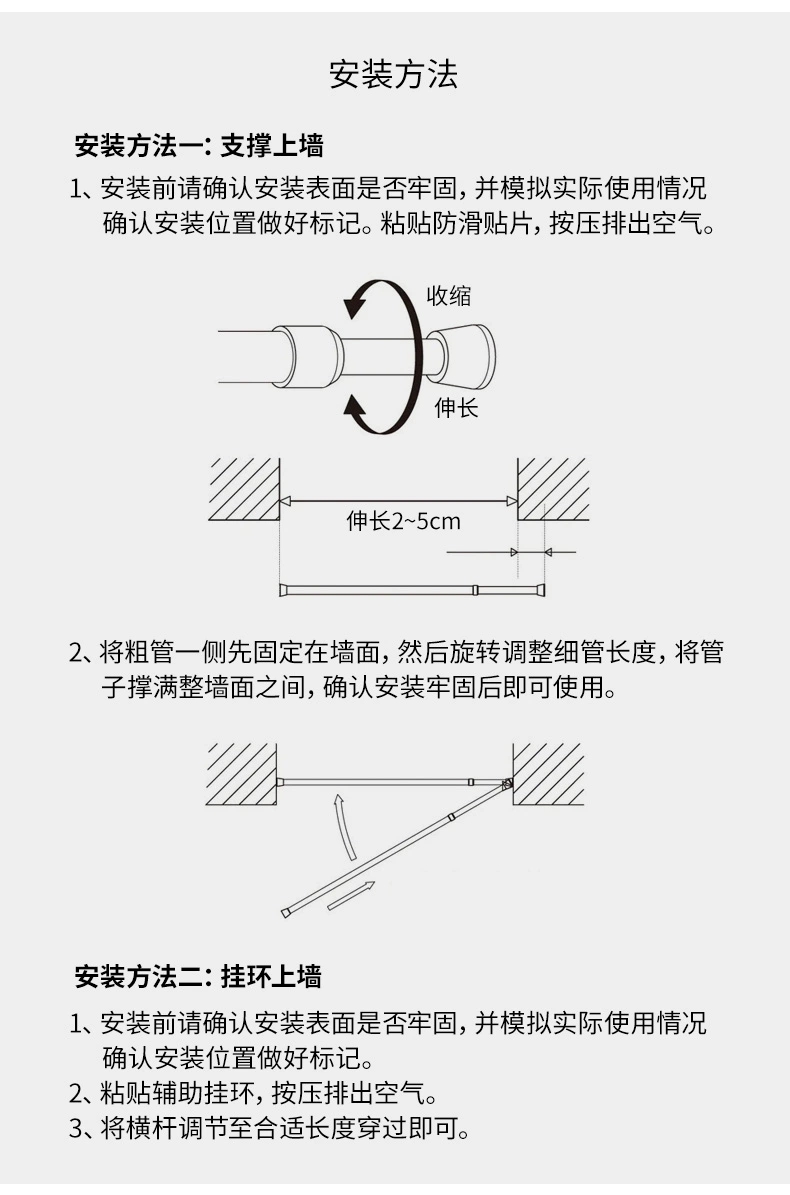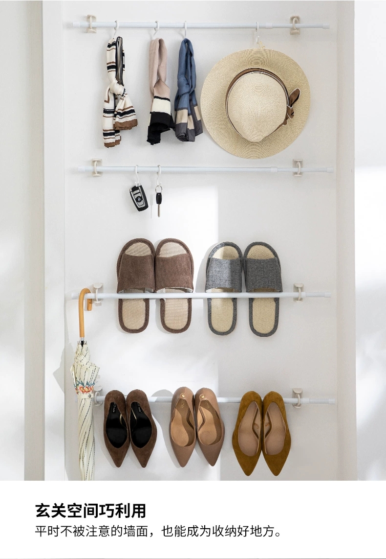 霜山收纳伸缩杆 家庭多用途置物撑杆书架横杆支架免打孔衣杆