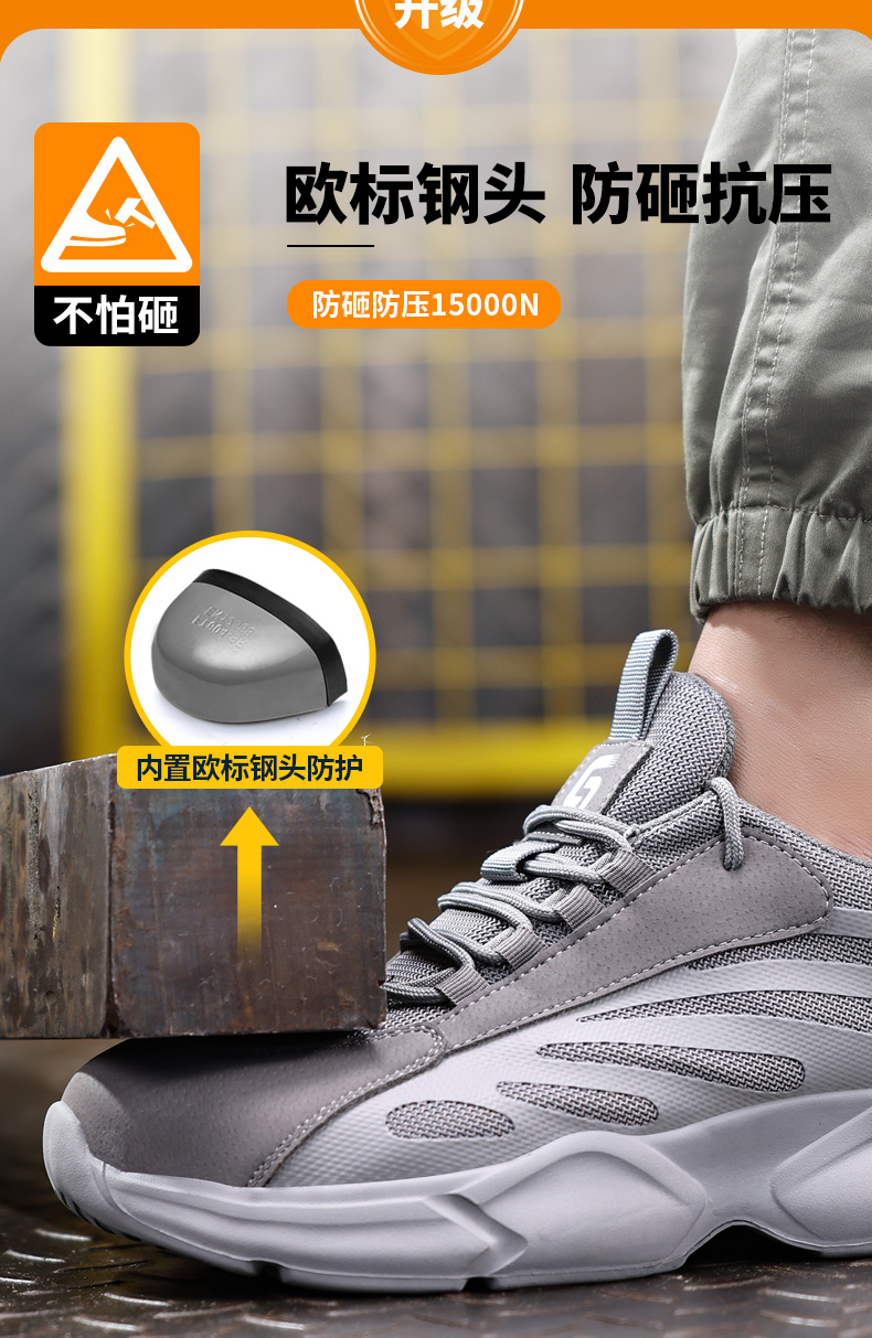 2024新品春季款透气轻便劳保鞋防砸防刺穿耐磨轻便钢包头工地工作鞋