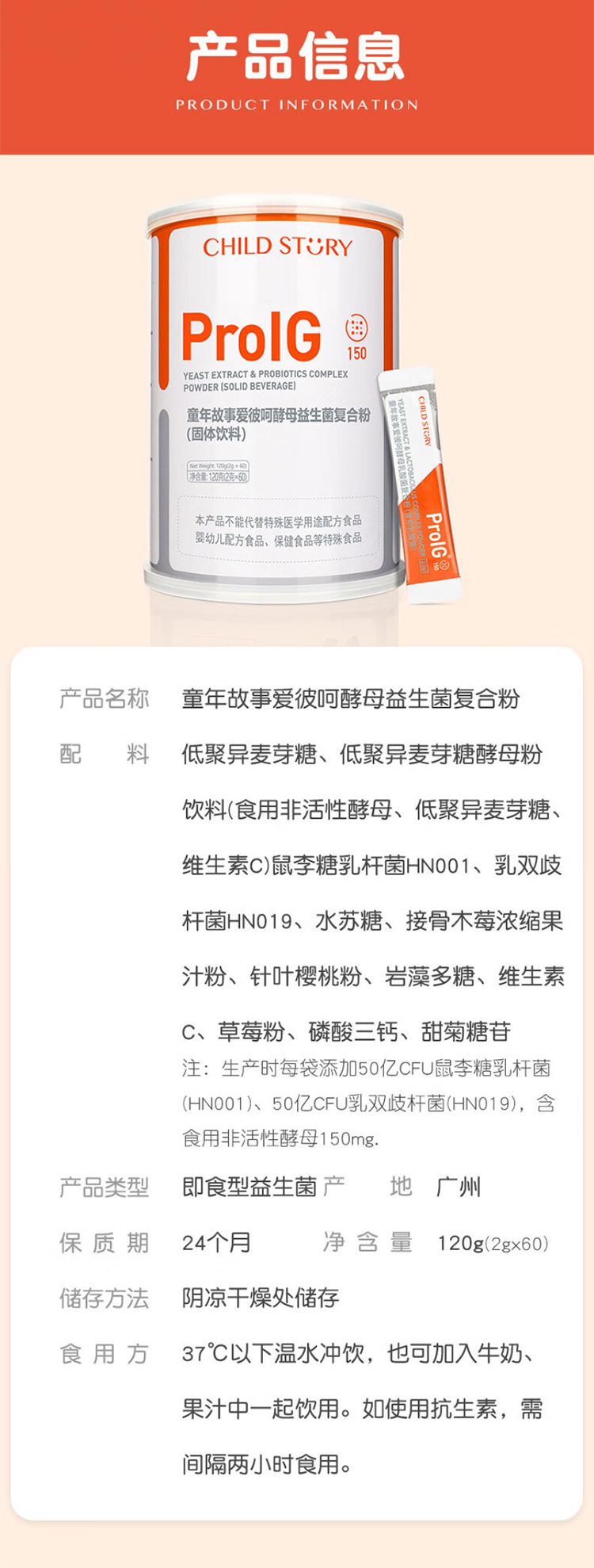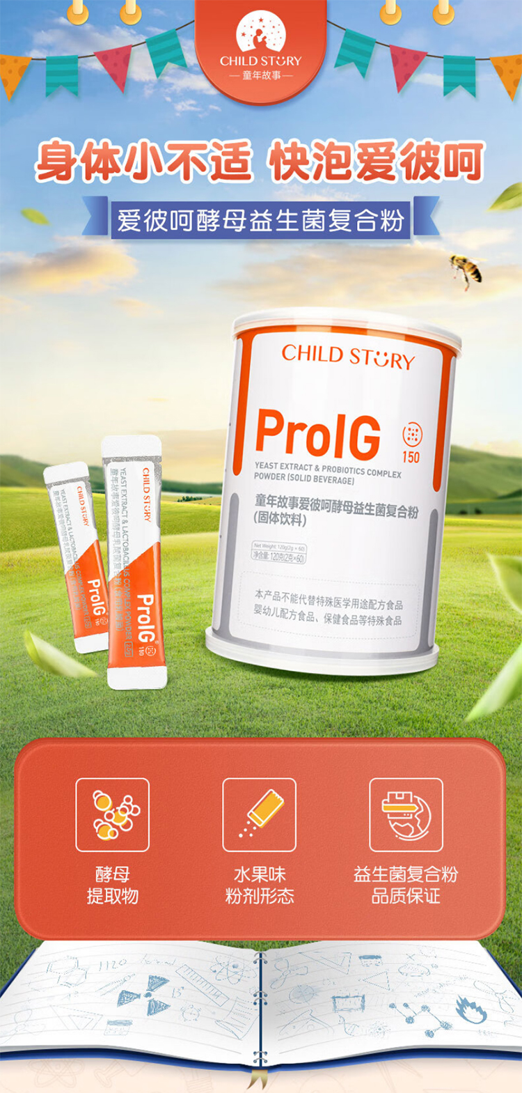 童年故事爱彼呵酵母益生菌复合粉固体饮料120g(2g*60)