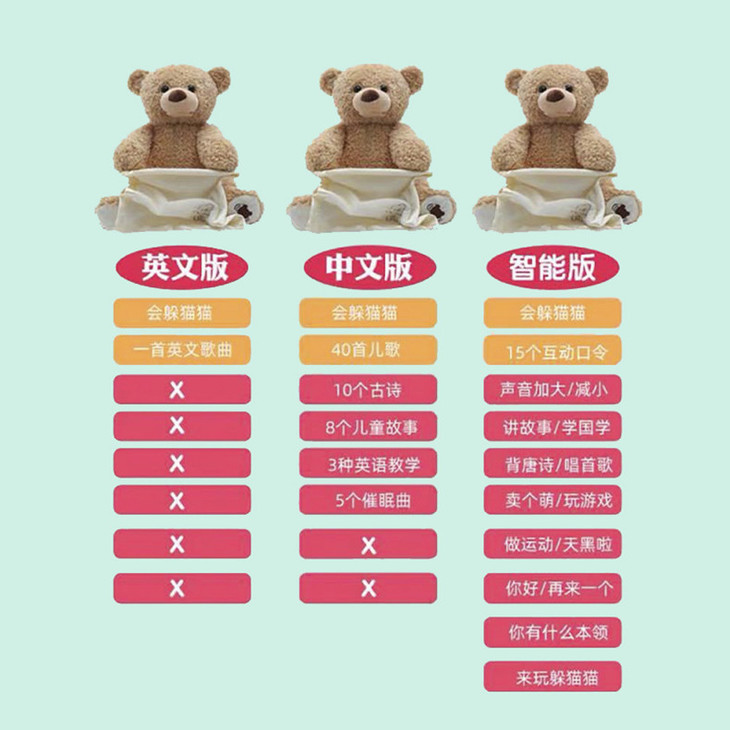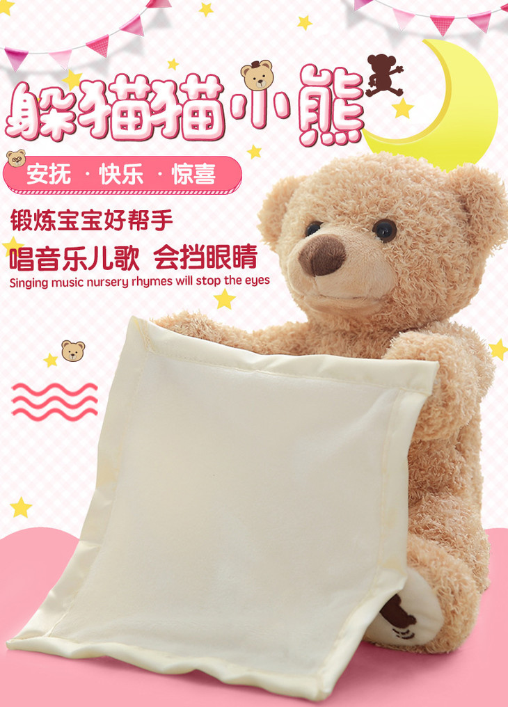 【会躲猫猫的小熊】网红同款益智毛绒玩具 儿童安抚玩偶害羞捂眼睛礼物-W仓