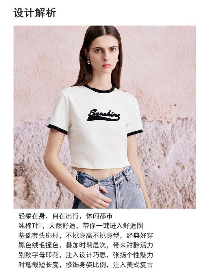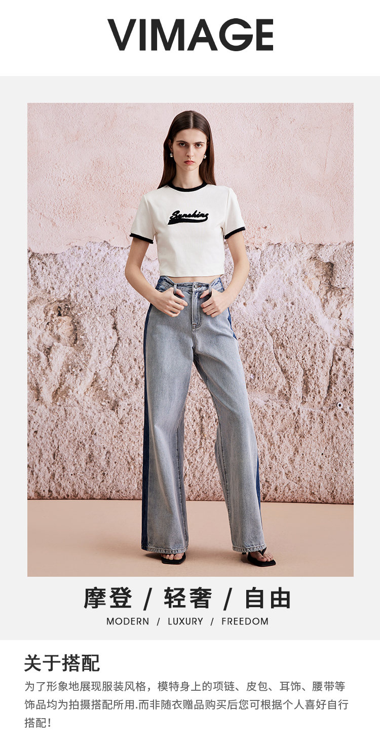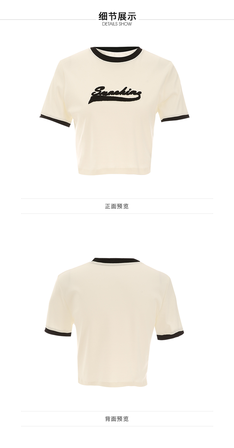 VIMAGE纬漫纪夏季新款时尚百搭打底舒适撞色短款T恤女V2102706