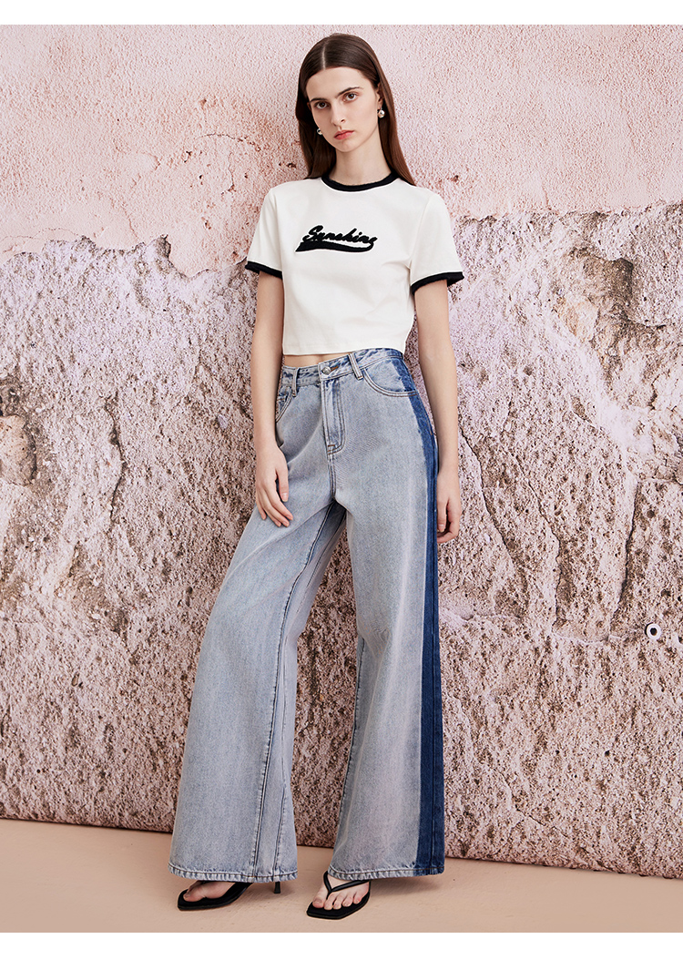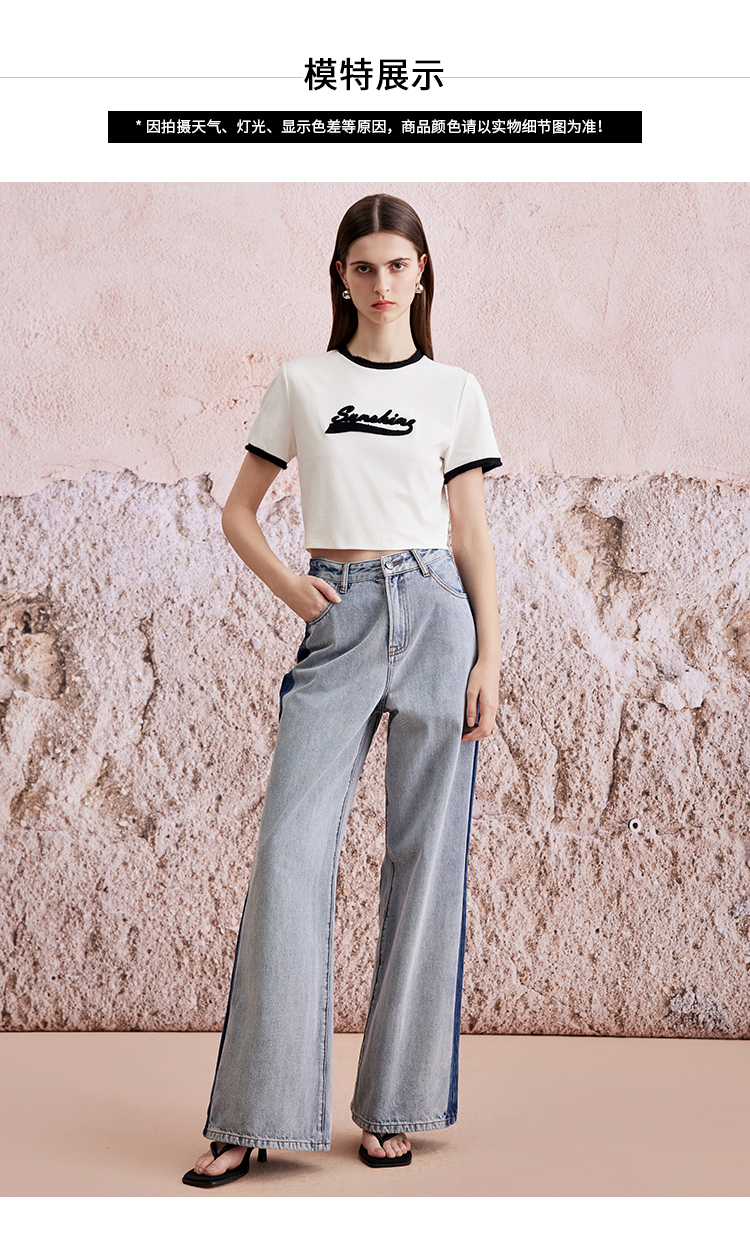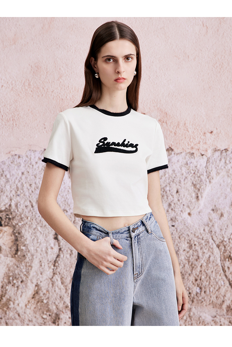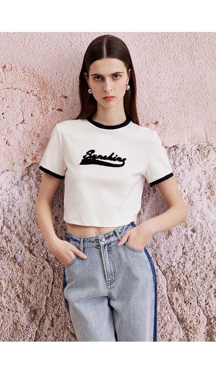 VIMAGE纬漫纪夏季新款时尚百搭打底舒适撞色短款T恤女V2102706