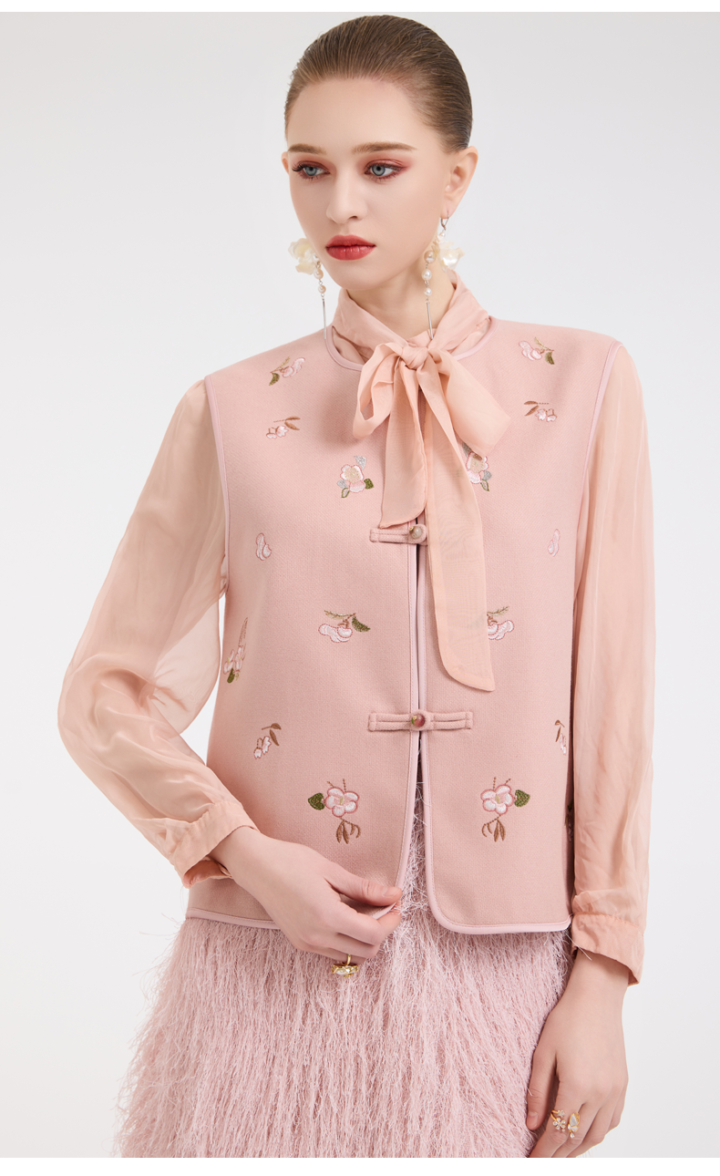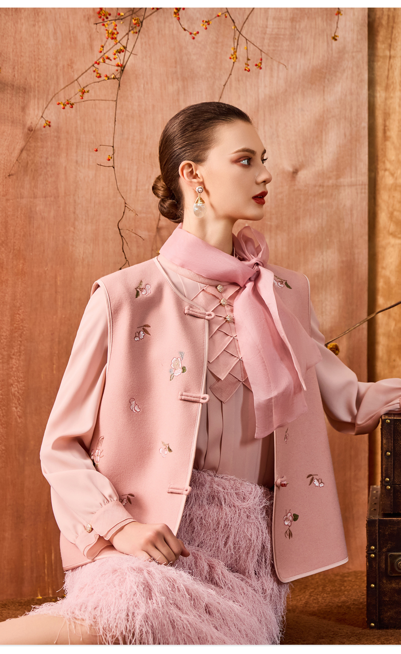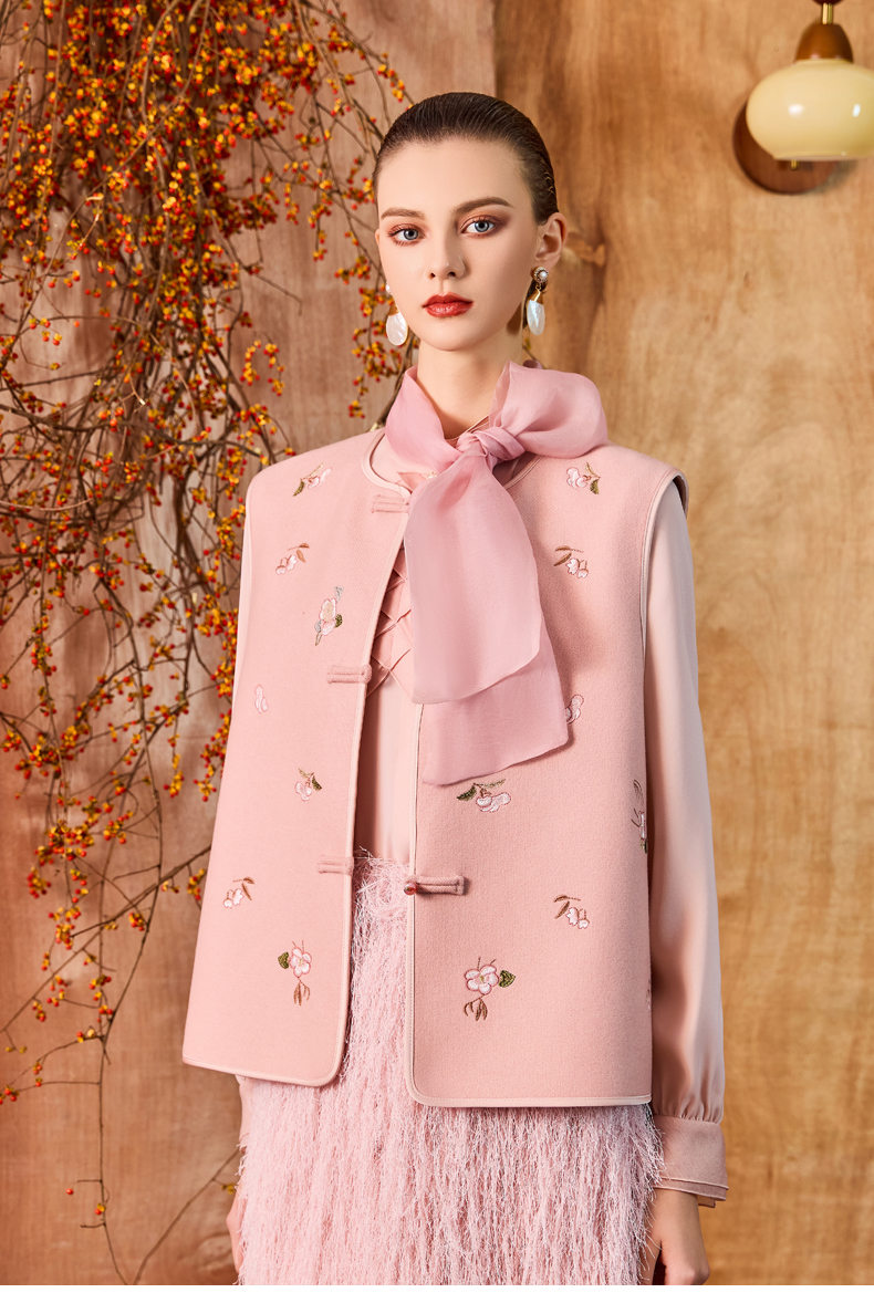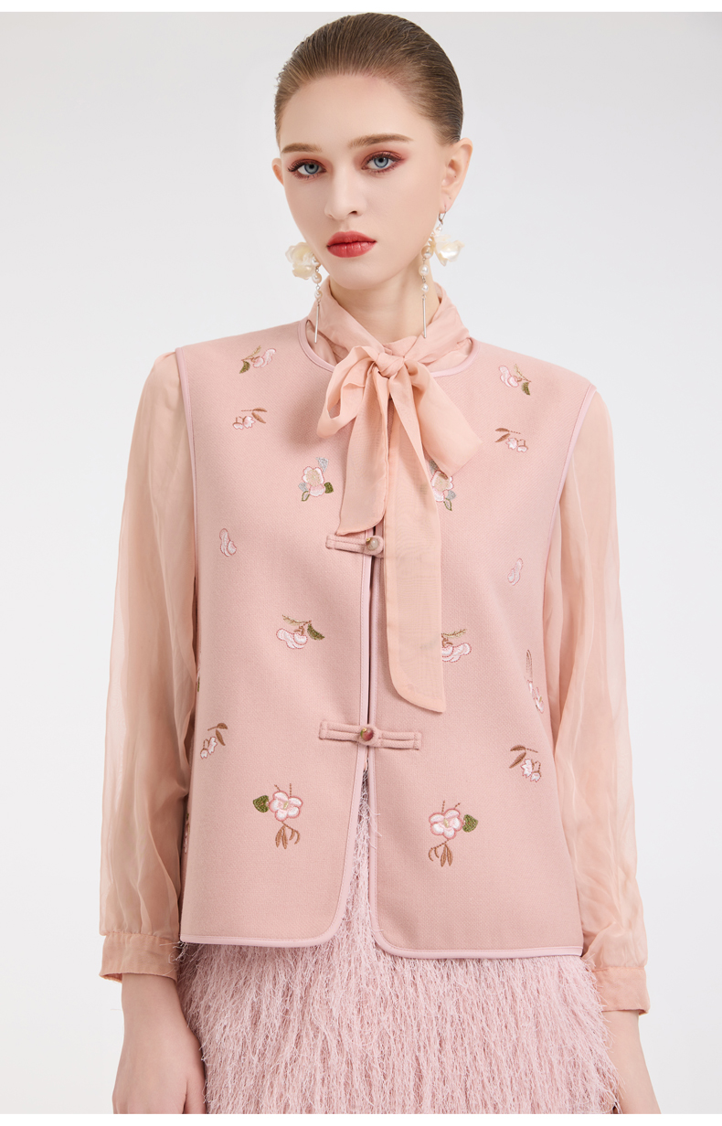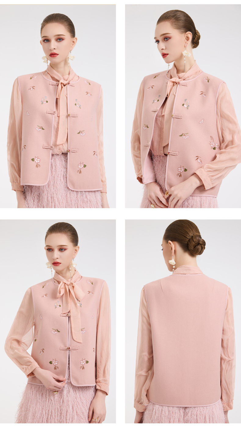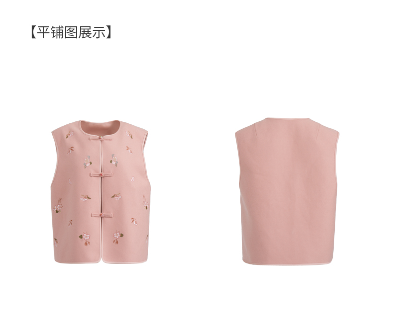 乔万尼中式设计绣花盘扣羊毛羊绒混纺雅致中国风马甲ED4H837