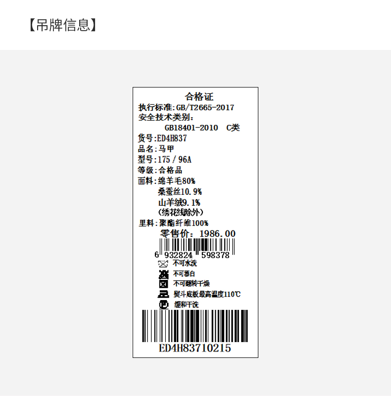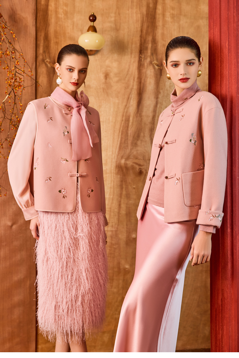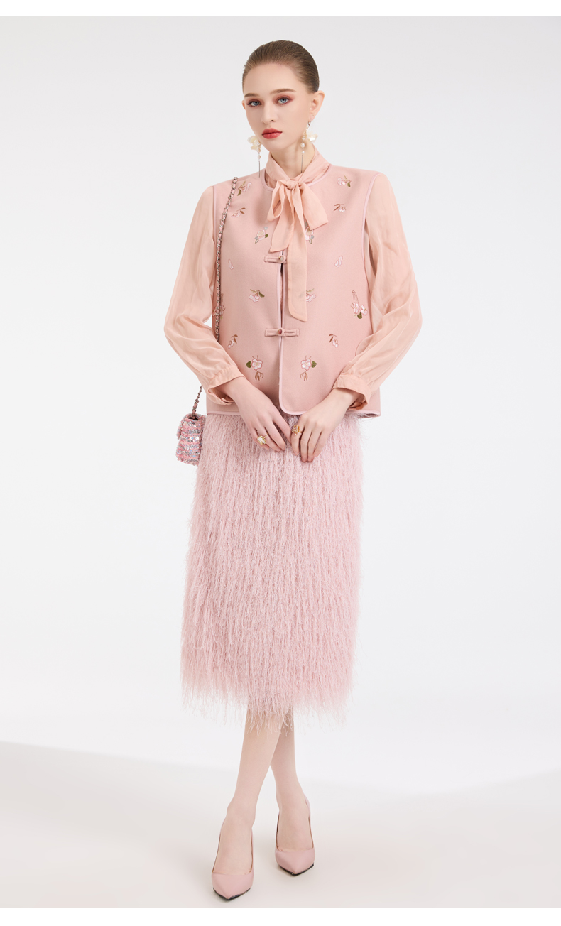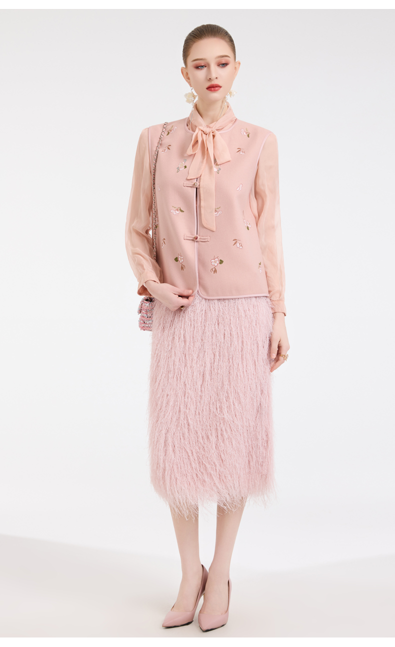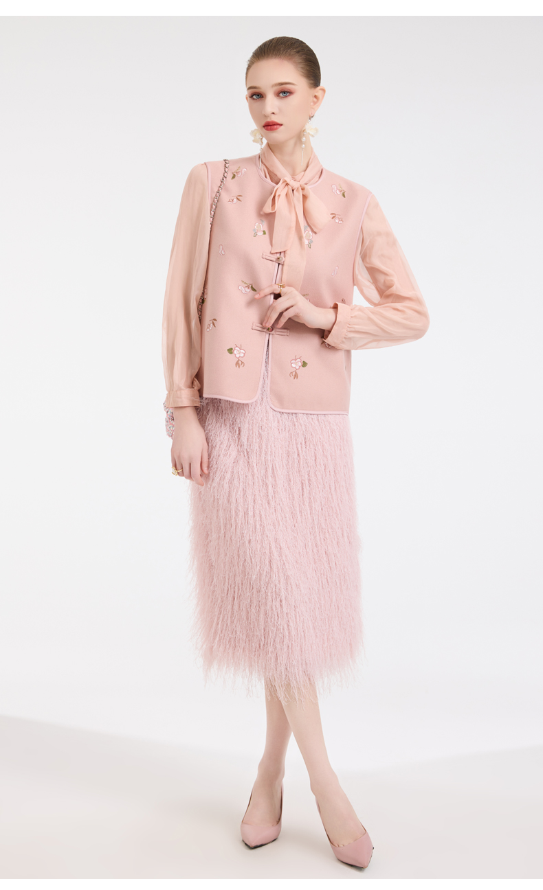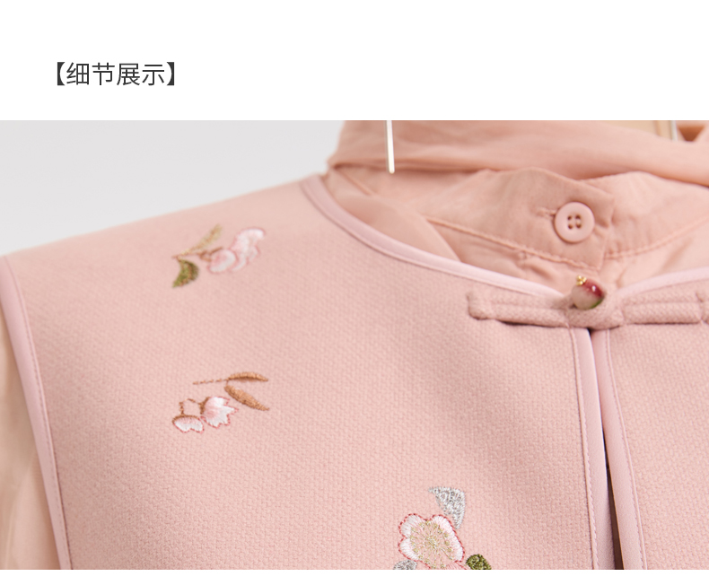 乔万尼中式设计绣花盘扣羊毛羊绒混纺雅致中国风马甲ED4H837