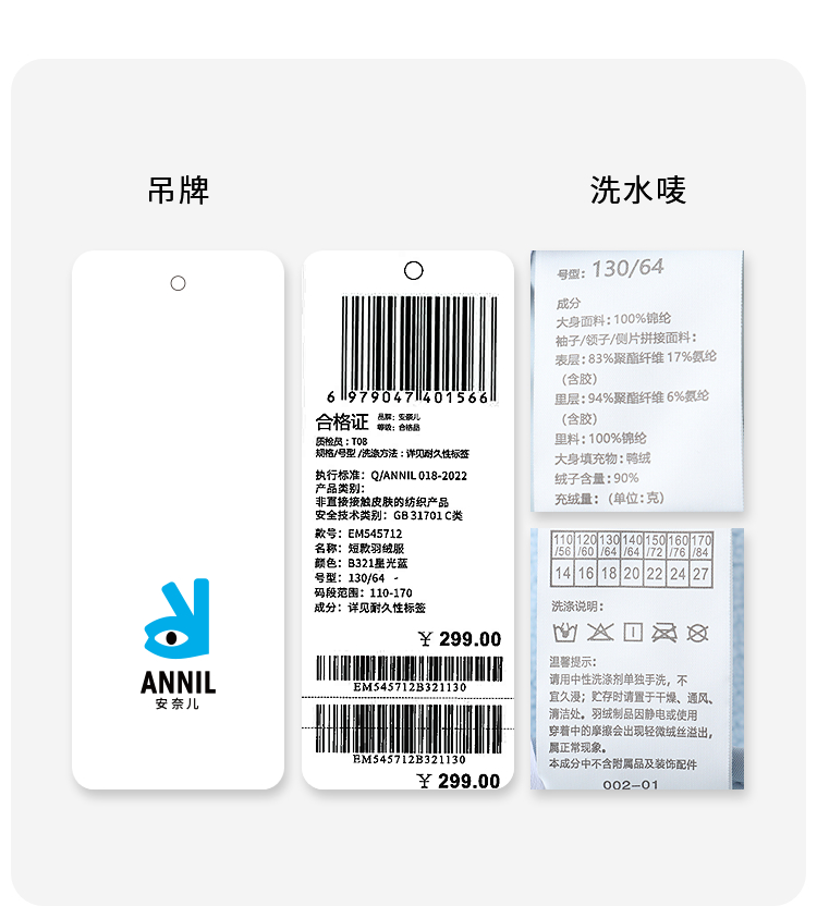 【校服叠穿神器】男女童短款羽绒服冬季新款安奈儿童装EM545712