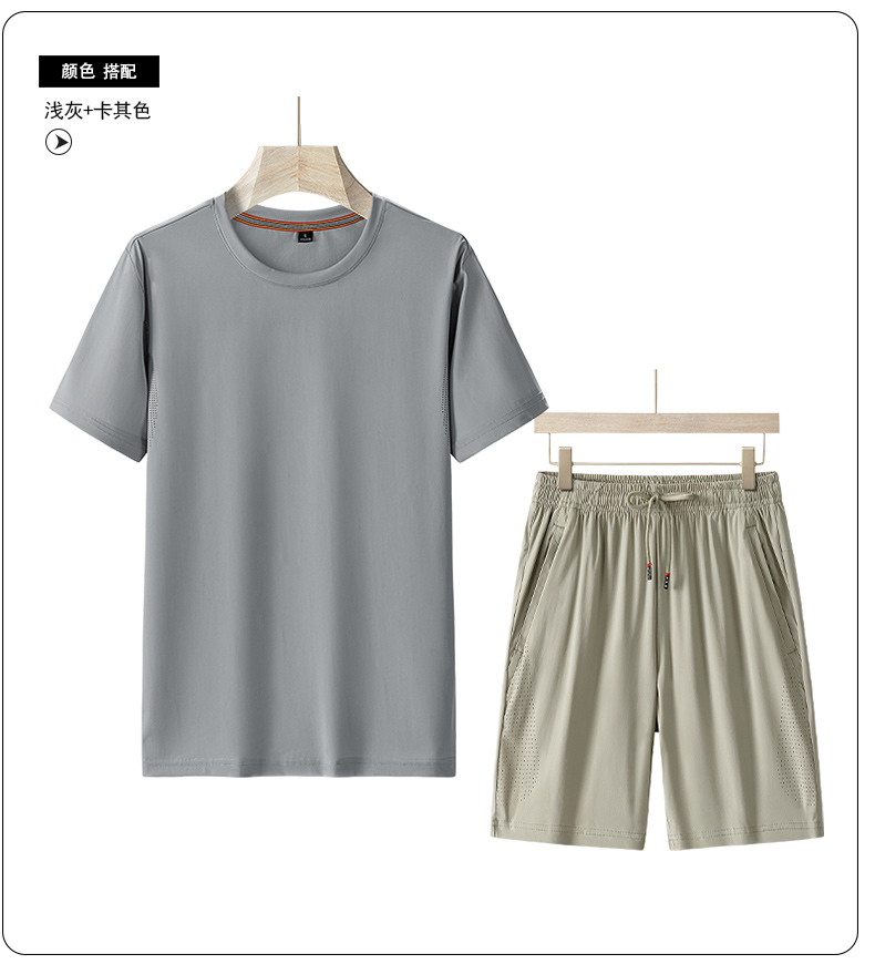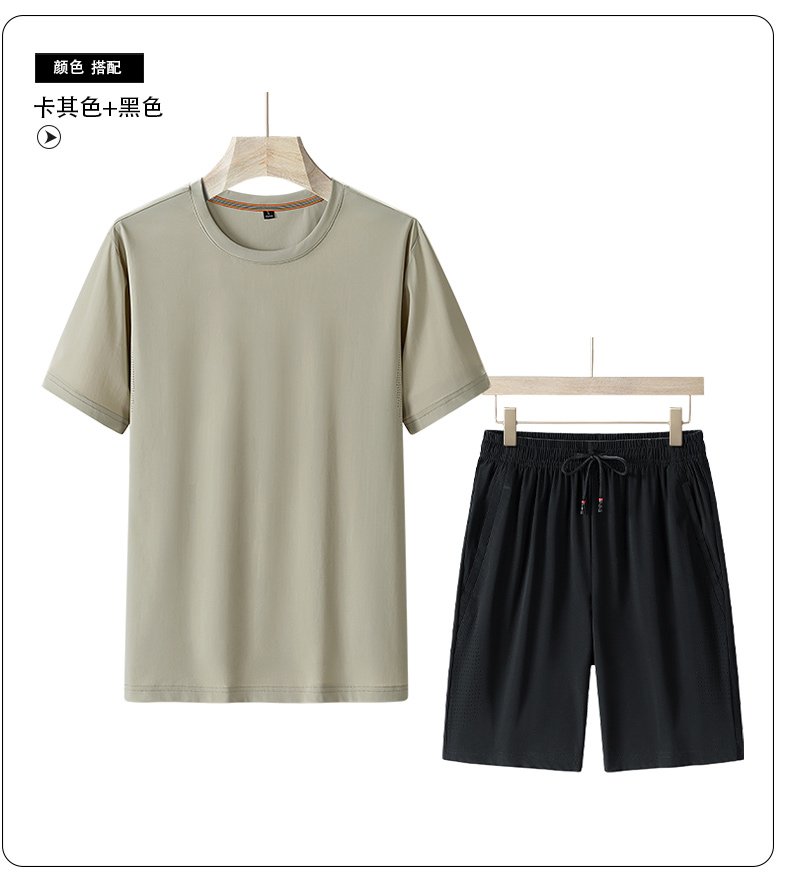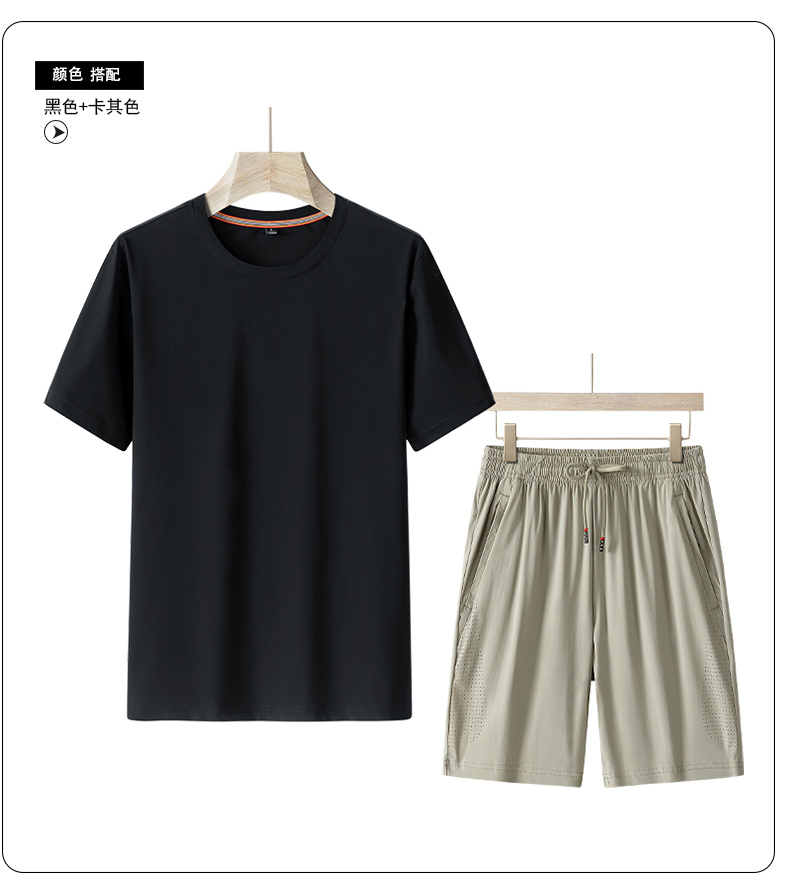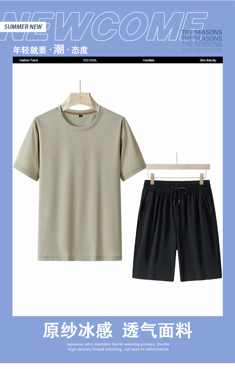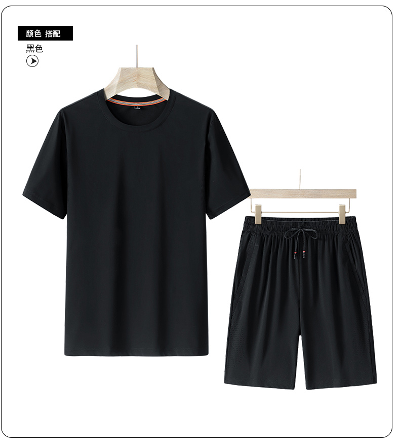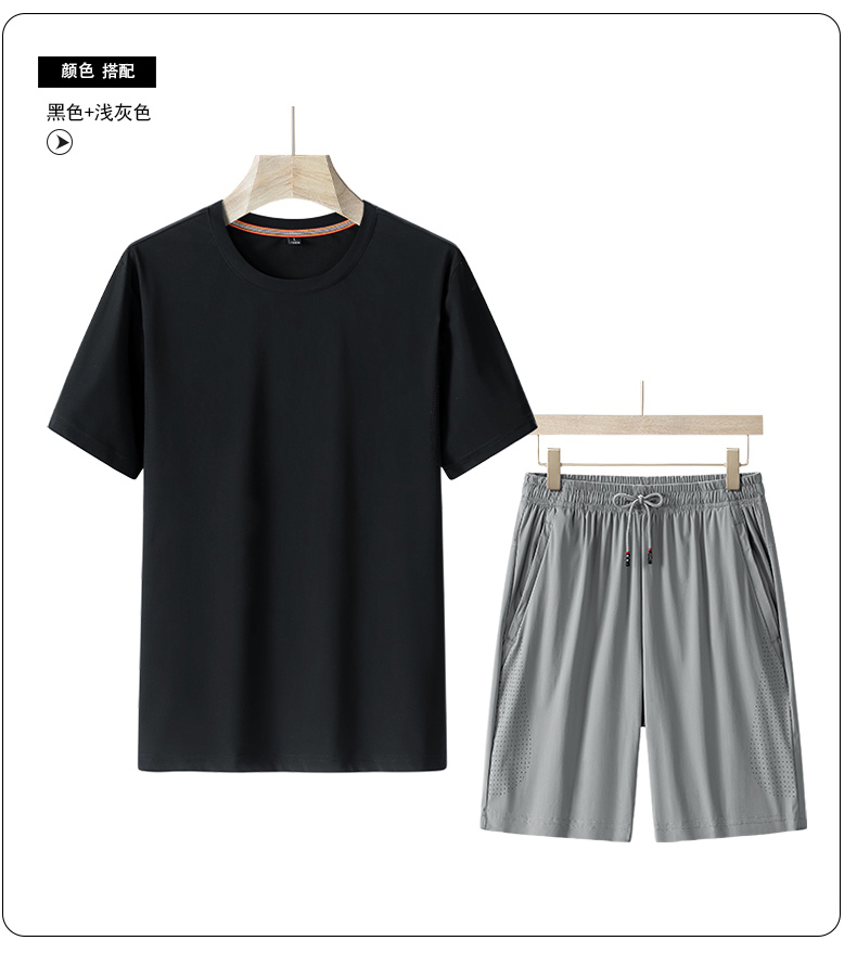 【超大码】【夏季套装】【DSK】大依优型大码冰丝短袖T恤短裤套装圆领时尚潮流宽松潮牌加肥加大上衣男士半袖
