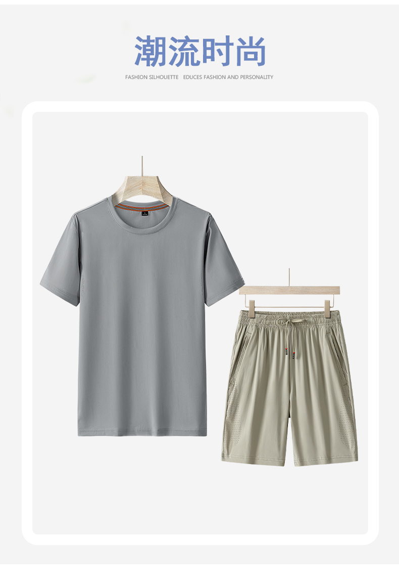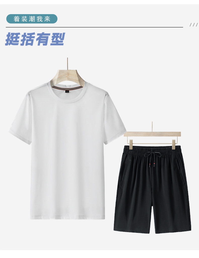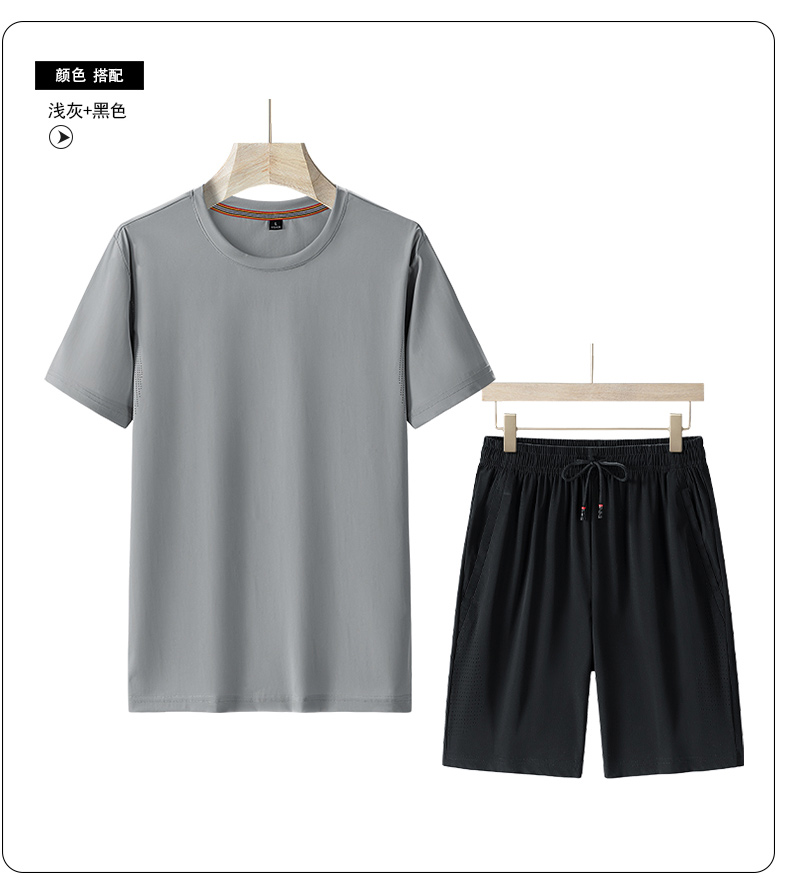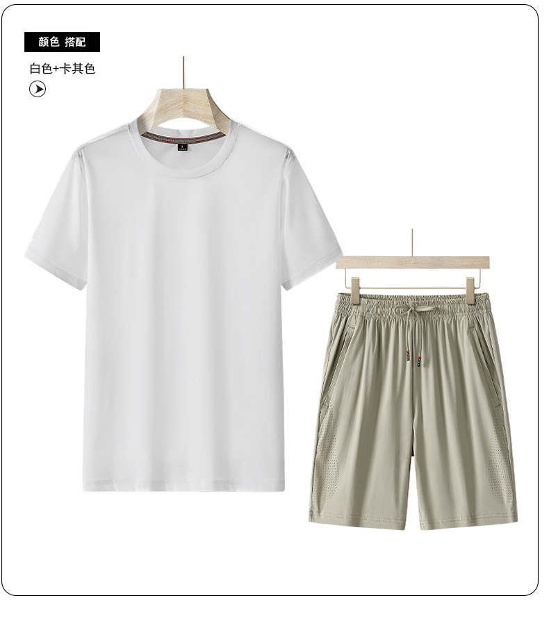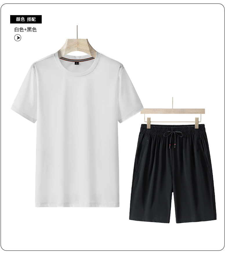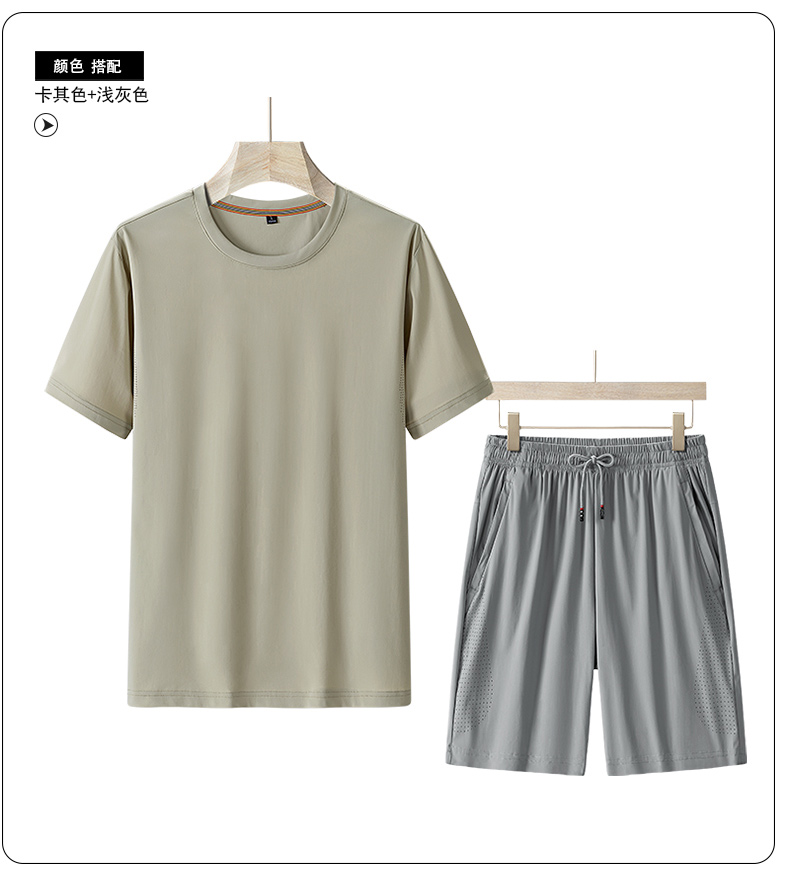 【超大码】【夏季套装】【DSK】大依优型大码冰丝短袖T恤短裤套装圆领时尚潮流宽松潮牌加肥加大上衣男士半袖