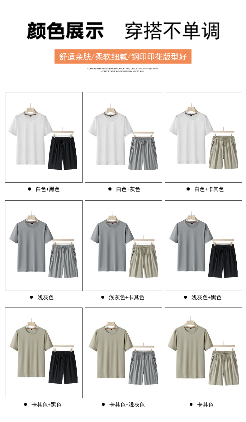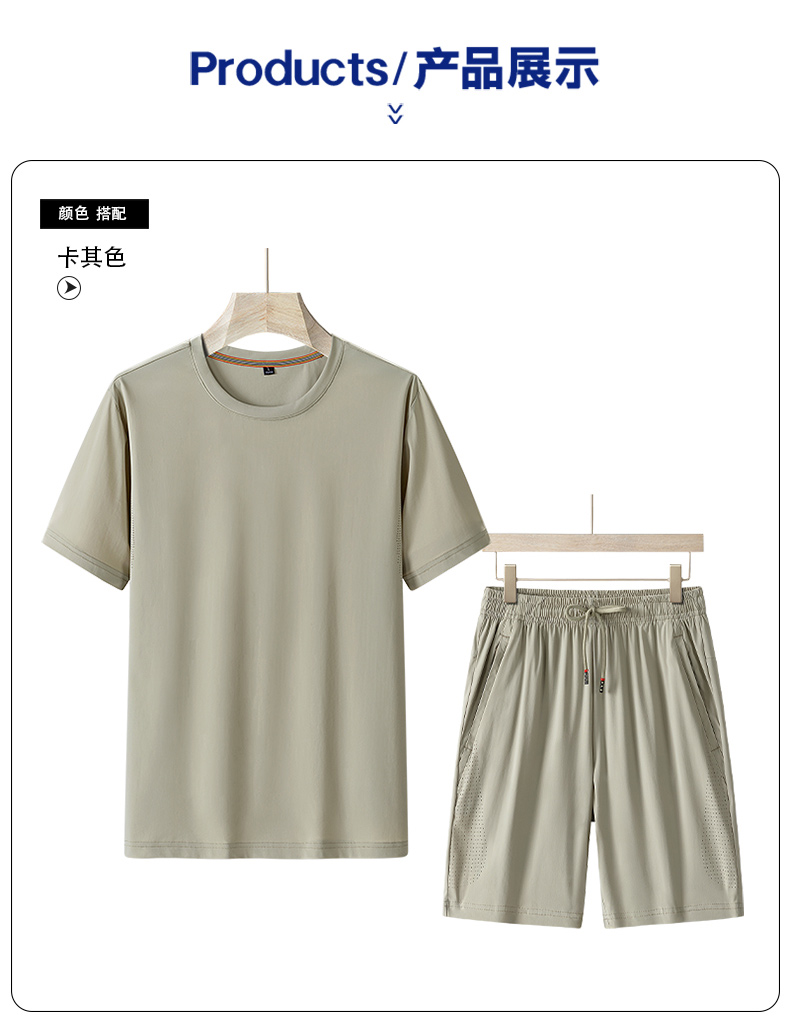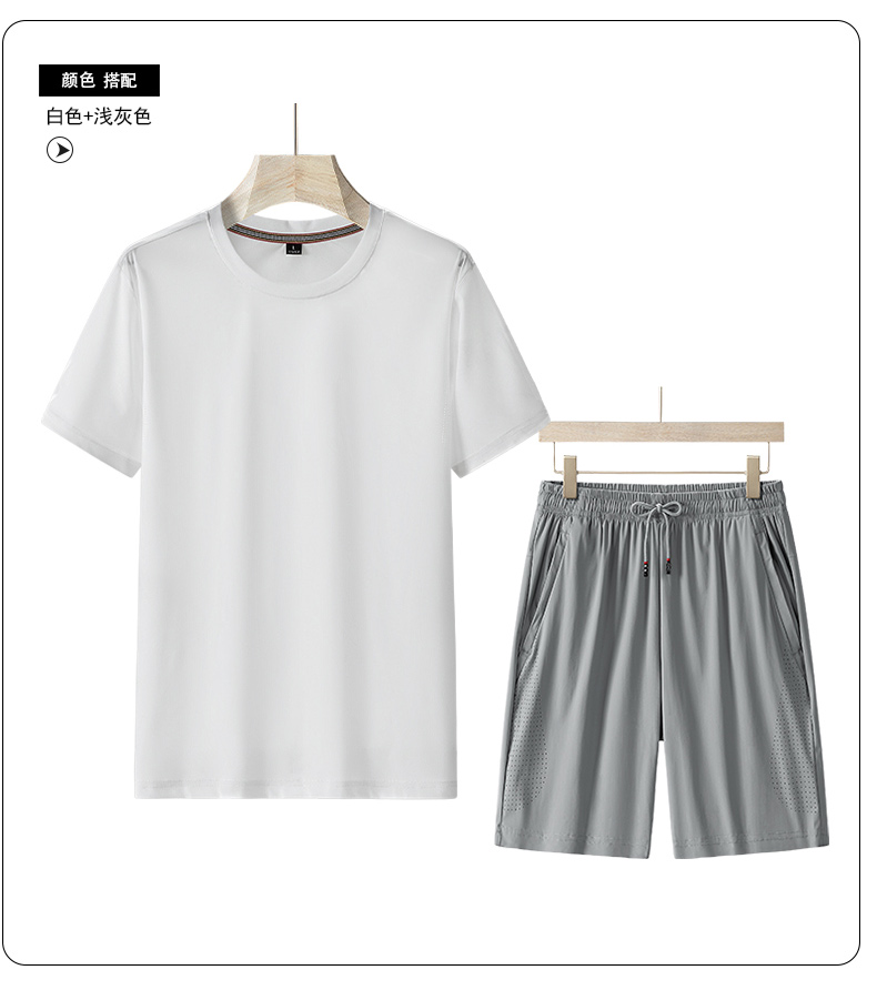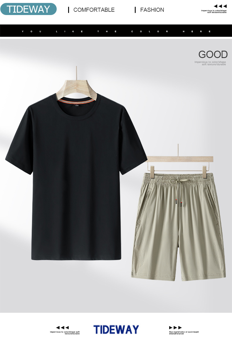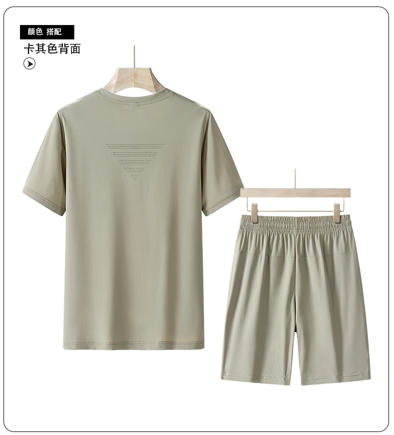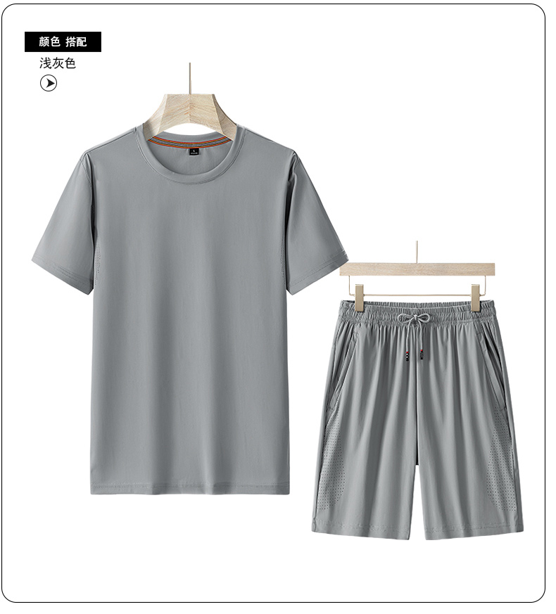 【超大码】【夏季套装】【DSK】大依优型大码冰丝短袖T恤短裤套装圆领时尚潮流宽松潮牌加肥加大上衣男士半袖