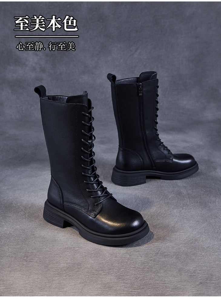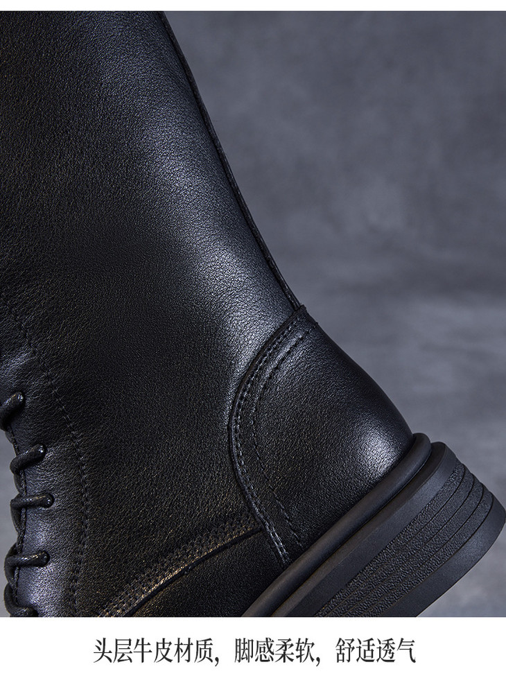真皮马丁靴英伦风秋冬季加绒瘦瘦靴中筒机车靴ZM258028
