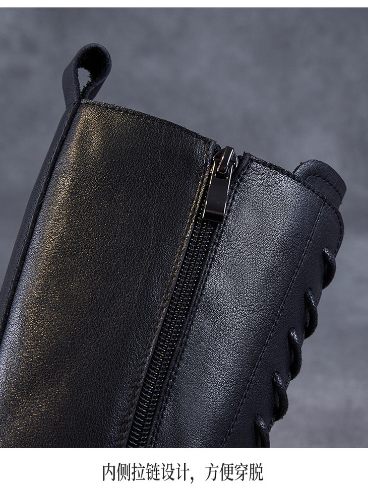 加绒保暖系带厚底休闲头层牛皮,复古平底毛毛棉鞋ZM258718