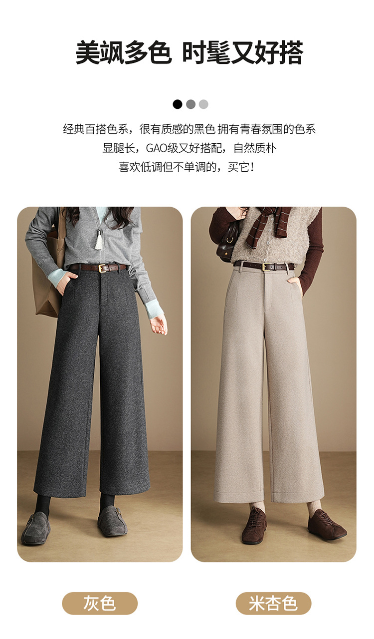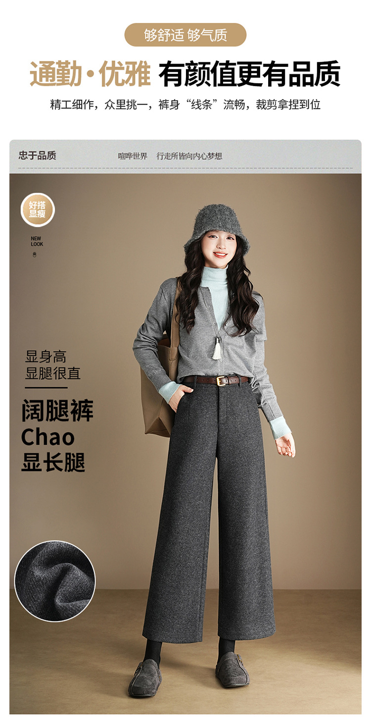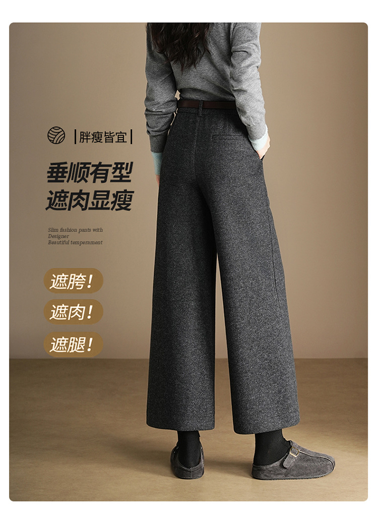 「自」全新升级【铂金会员220/天猫289/差价69】(15020)洛诗琳羊毛呢阔腿九分裤2025冬季新款高腰垂感宽松直筒裤