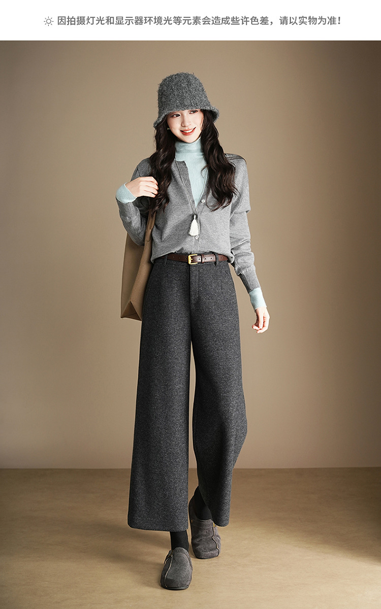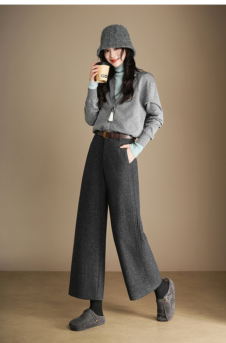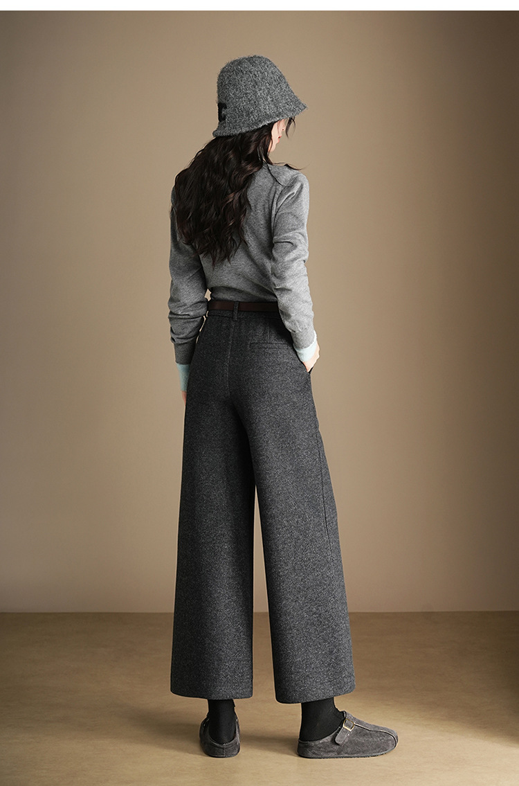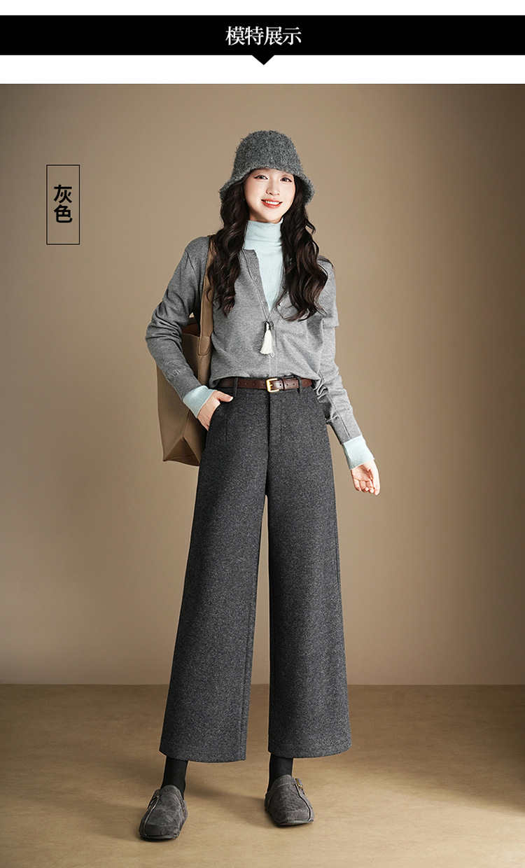 「自」全新升级【铂金会员220/天猫289/差价69】(15020)洛诗琳羊毛呢阔腿九分裤2025冬季新款高腰垂感宽松直筒裤
