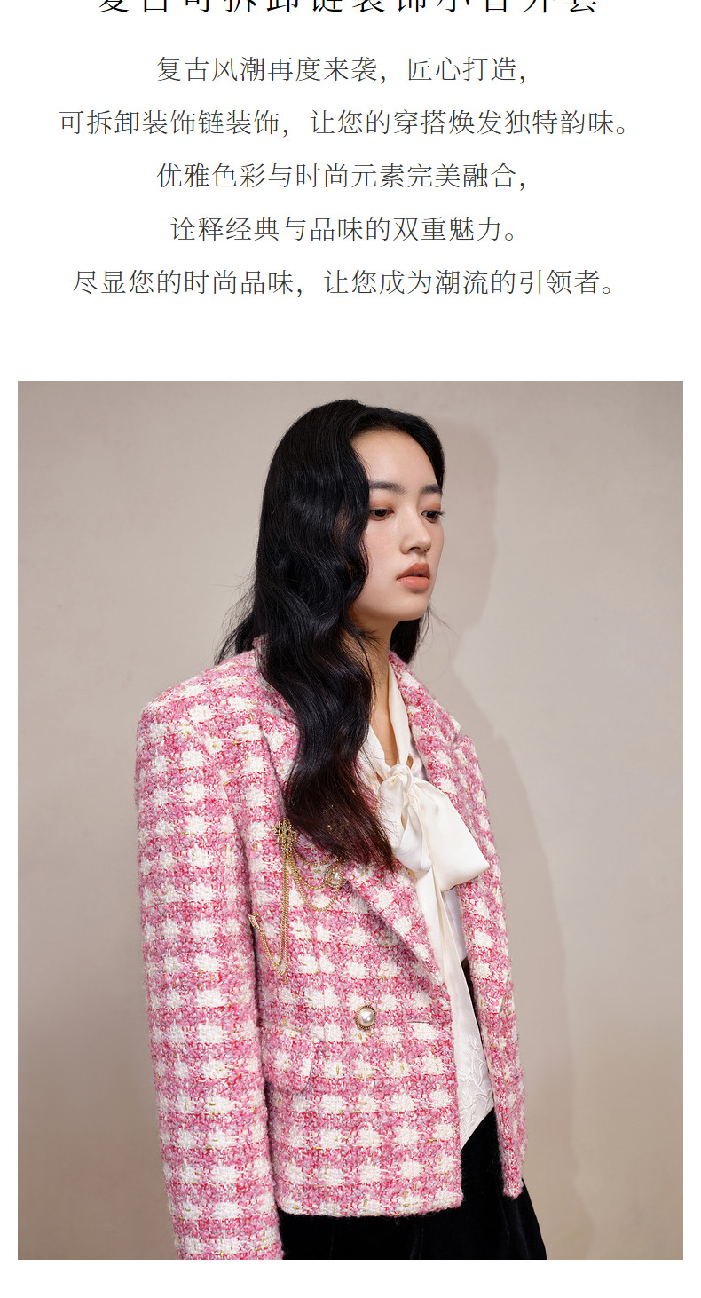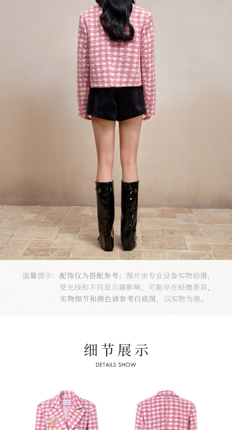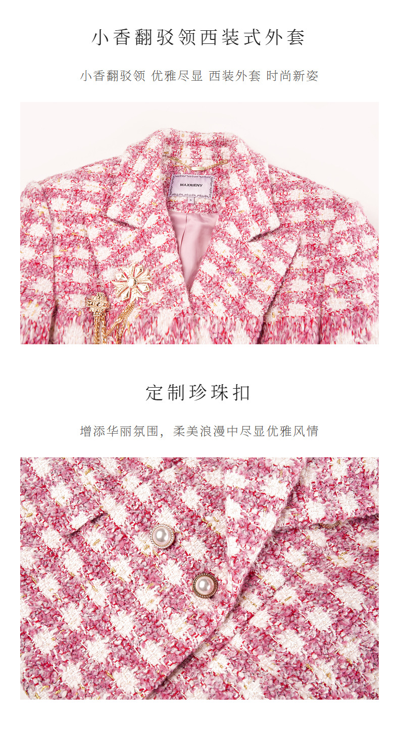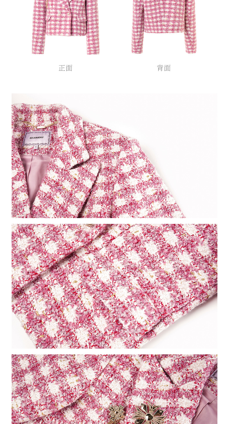 MAXRIENY千金小香风短外套战袍格纹西装花纱上衣(货号:MS88JA766)