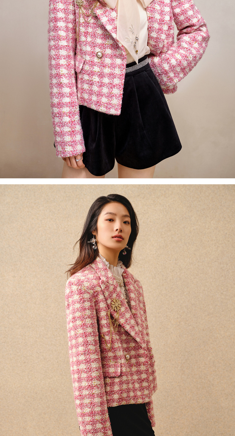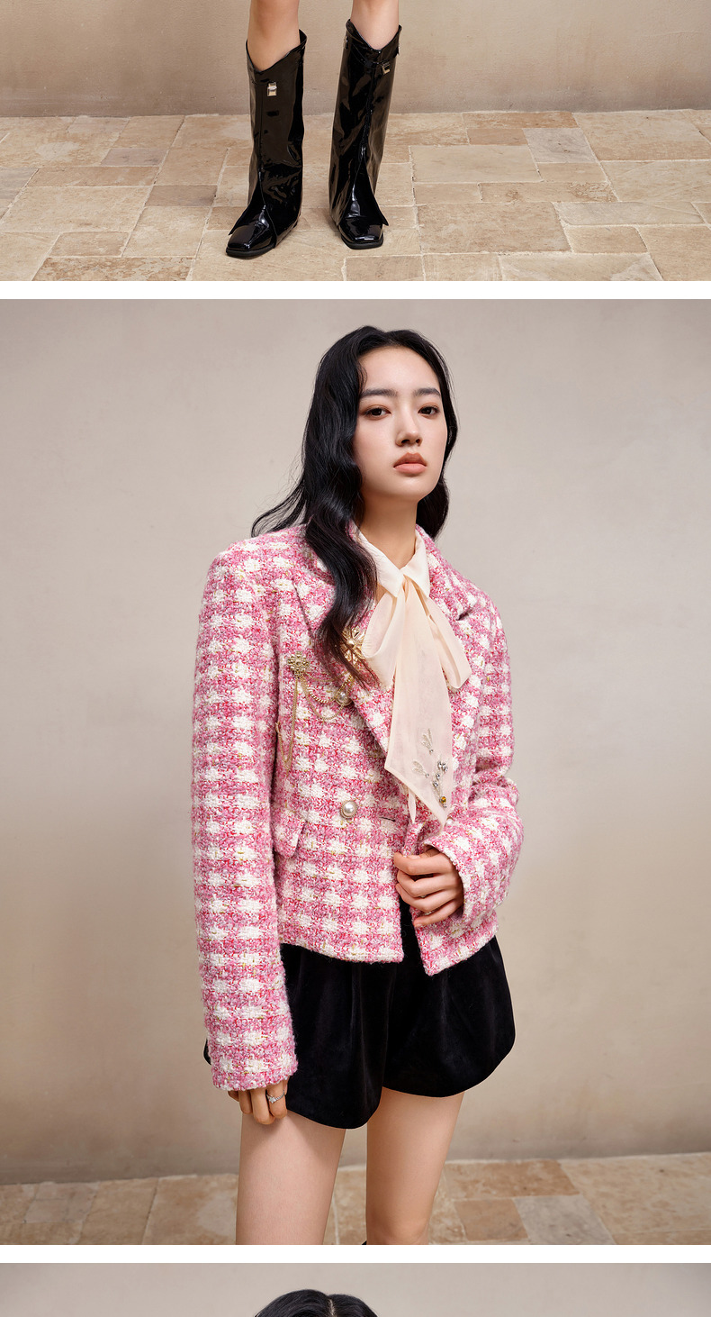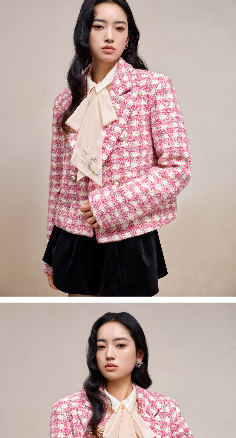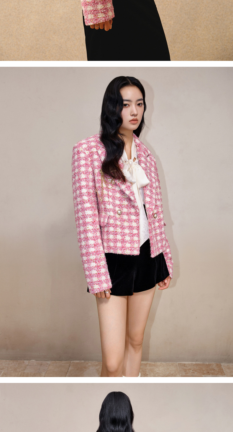 MAXRIENY千金小香风短外套战袍格纹西装花纱上衣(货号:MS88JA766)