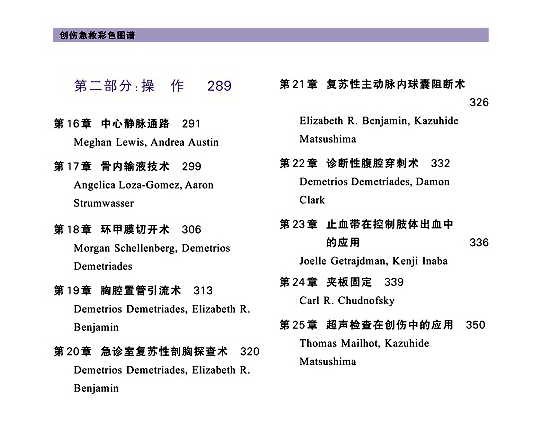 《创伤急救彩色图谱》(第3版)由美国外科学会创伤教育委员会前副主席、美国创伤外科学会前副主席德米曲斯·德米曲埃狄斯教授等主编,由南加州大学创伤与急危重症医学中心——全美最繁忙的创伤中心之一的富有经验、技术精湛的团队人员共同编写,由华中科技大学协和深圳医院吴京兰主任领衔,协同国内创伤急救专家共同翻译完成,旨在为广大创伤从业人员提供一本具有实战指导意义的参考书。