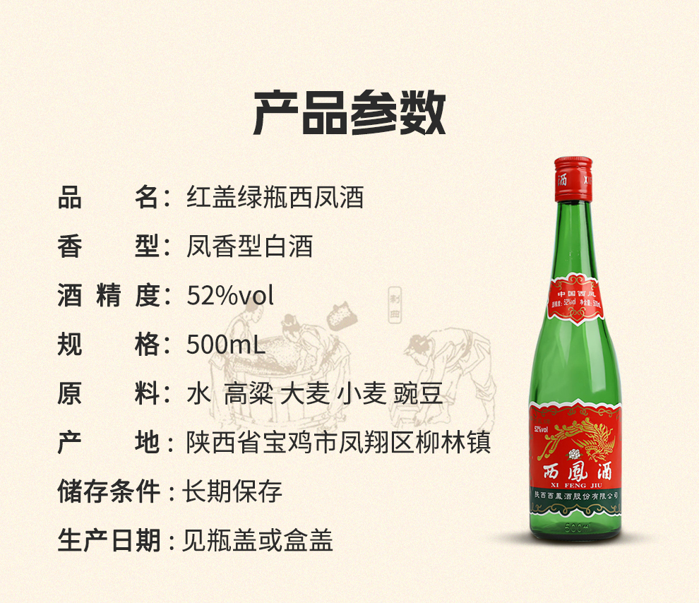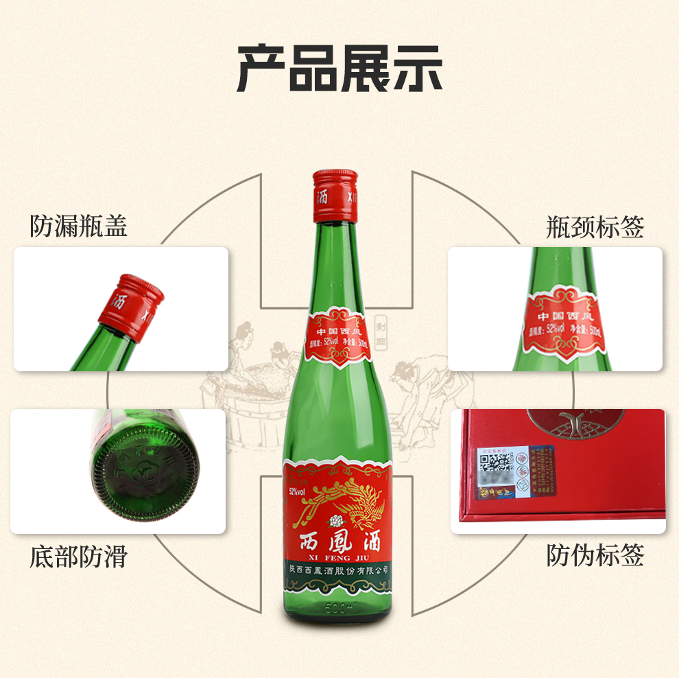 【酒厂官方直营】52度老绿瓶西凤酒500ml 单瓶