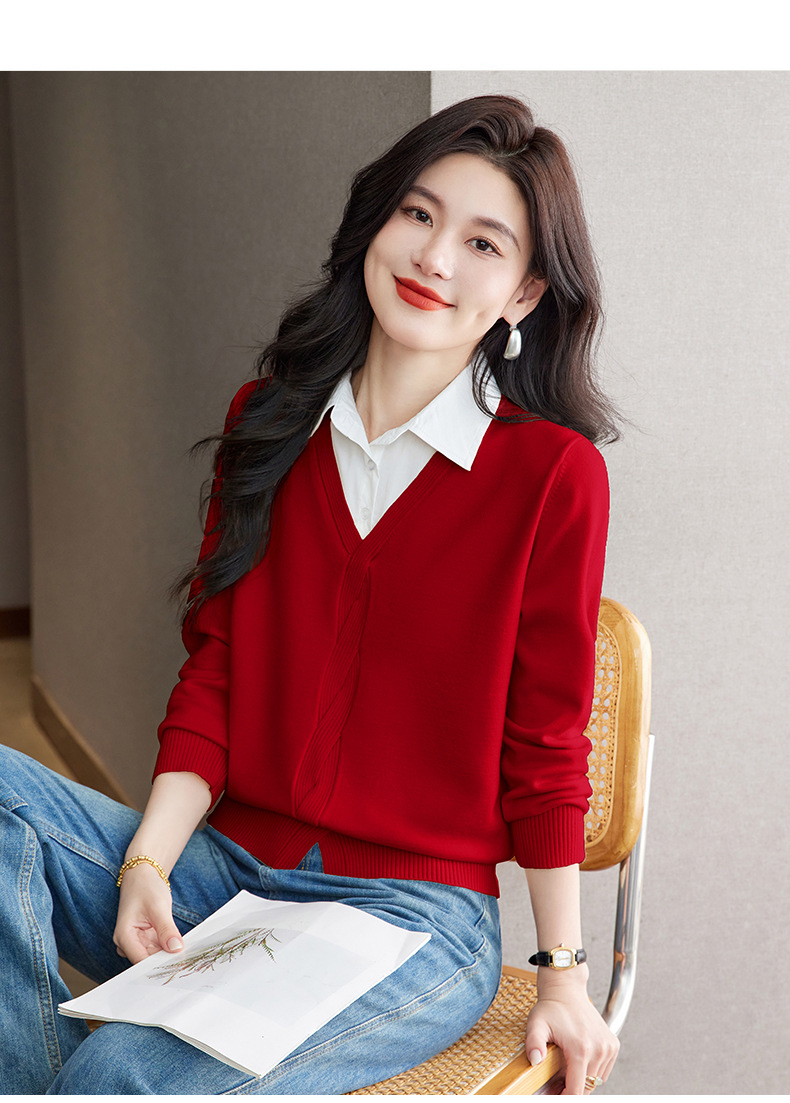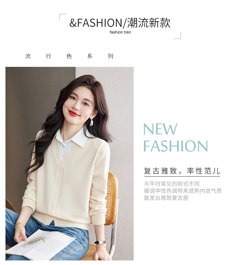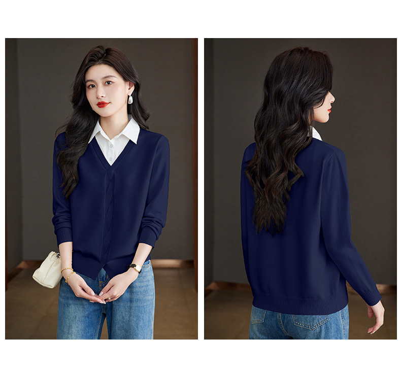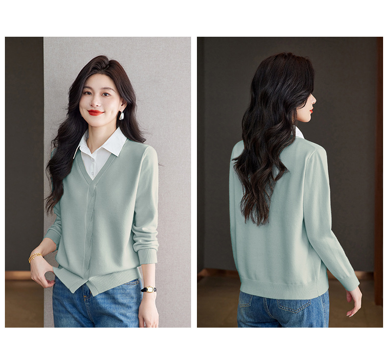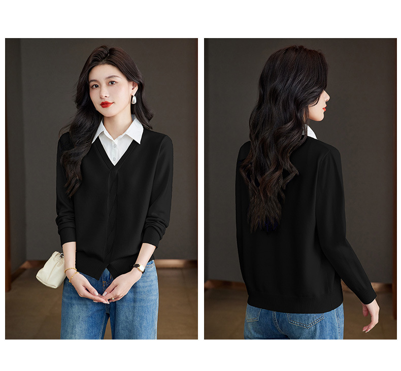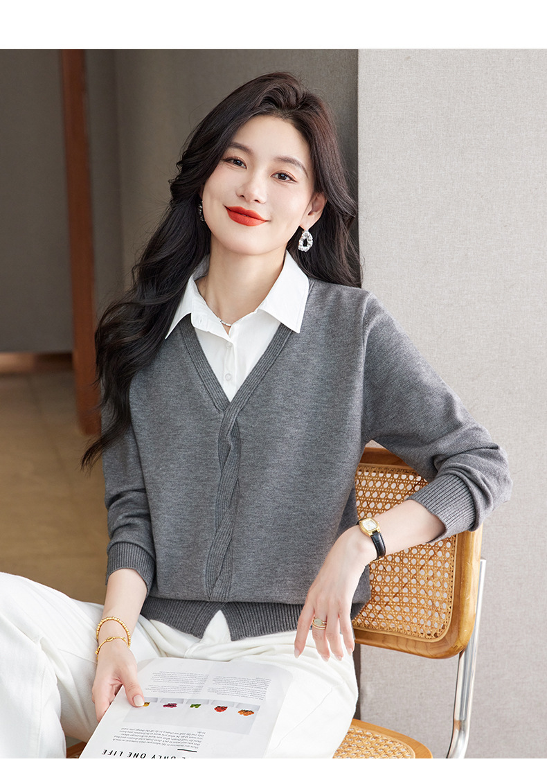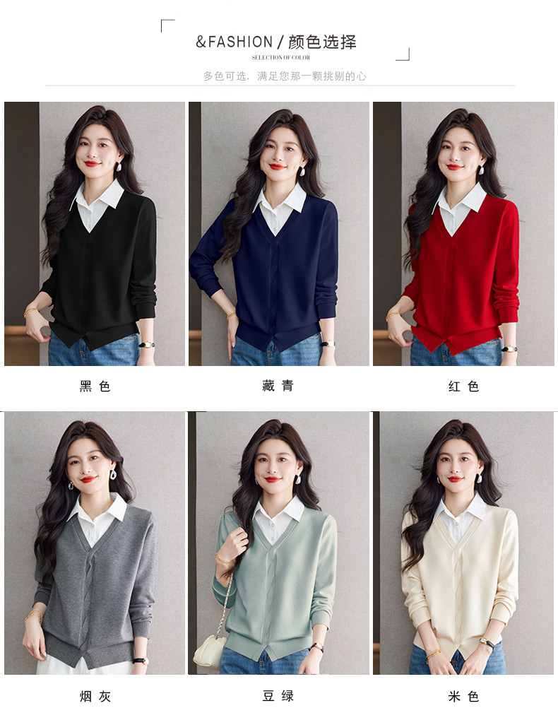 CC秋季衬衫领长袖针织t恤女2025新款气质洋气打底衫内搭假两件上衣