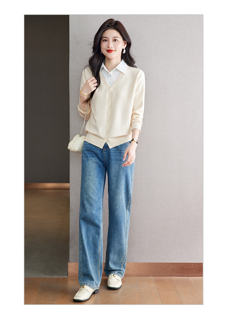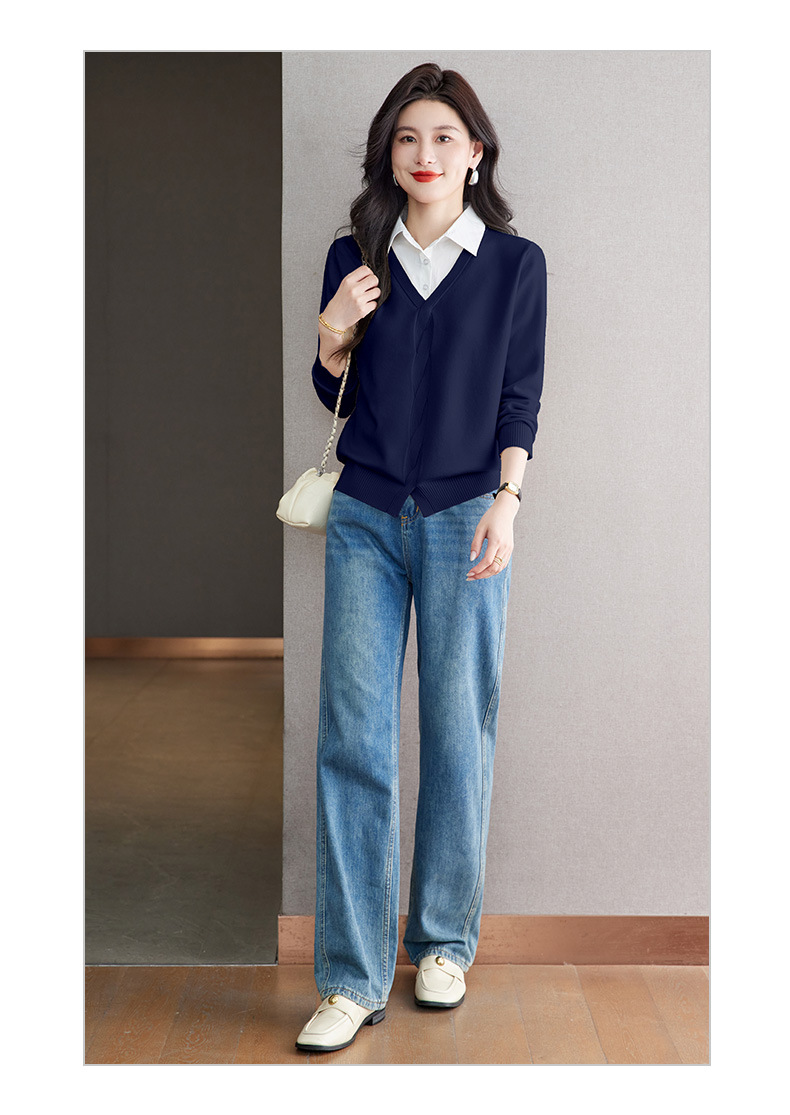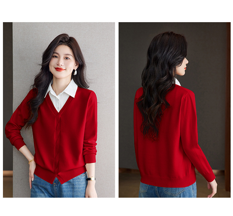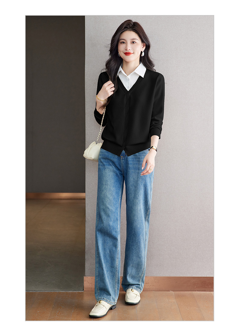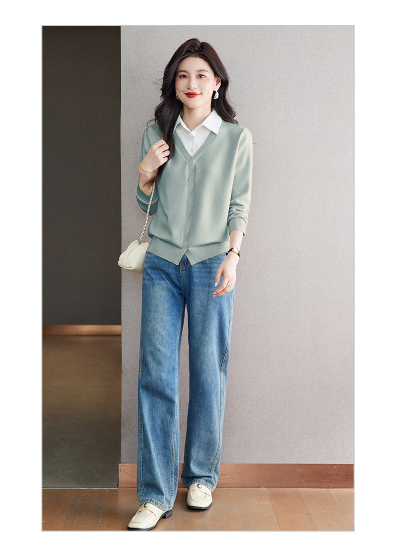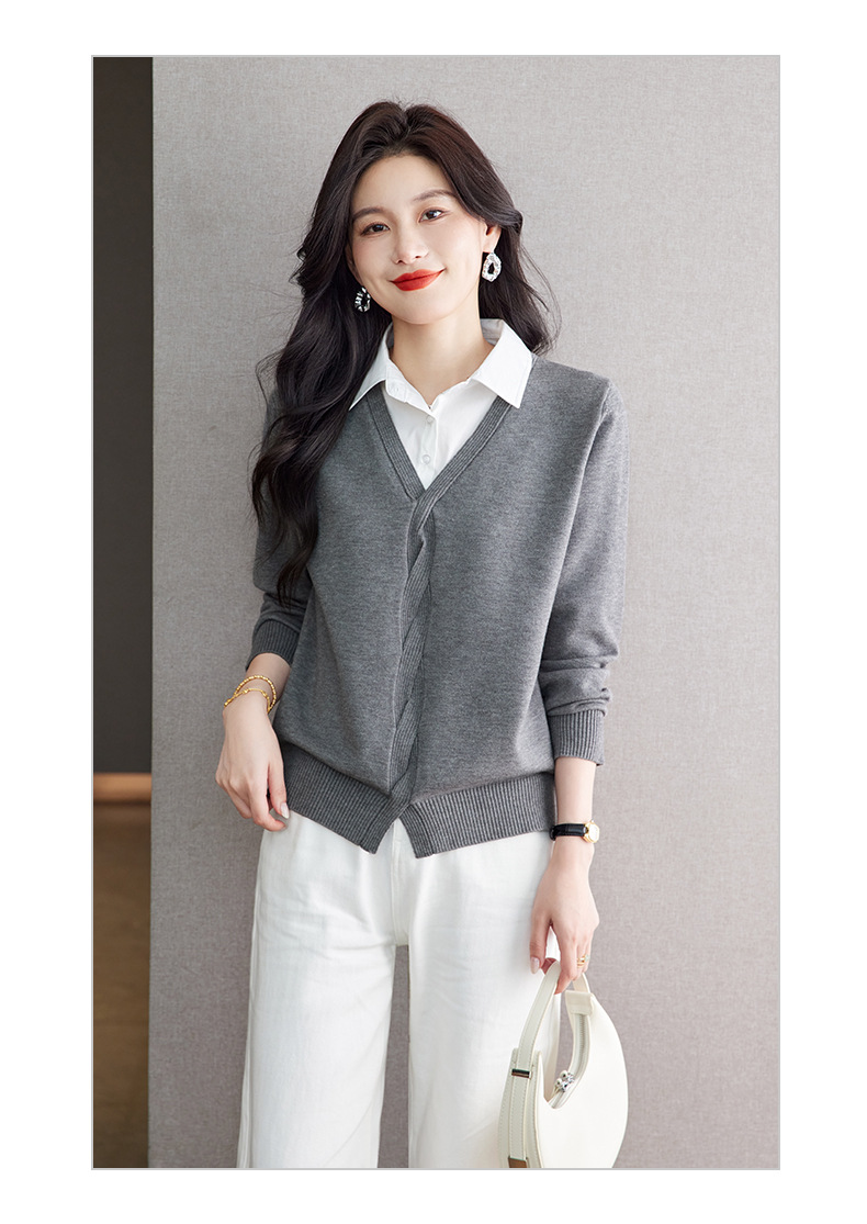 CC秋季衬衫领长袖针织t恤女2025新款气质洋气打底衫内搭假两件上衣