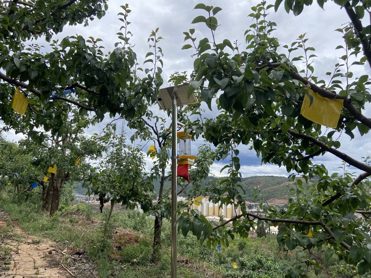 果园杀虫主要采用黄板,蓝板和杀虫灯,玫瑰李树与杂草共生,果园人工除草并堆肥果树下。