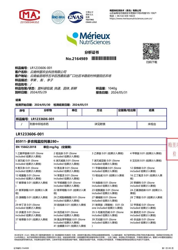 生产者刘兴成刘大哥的果园里,目前主要种植有梨子,苹果,李子几种水果,全程按有机标准种植管理,不使用化肥、化学农药、激素,也不使用除草剂。