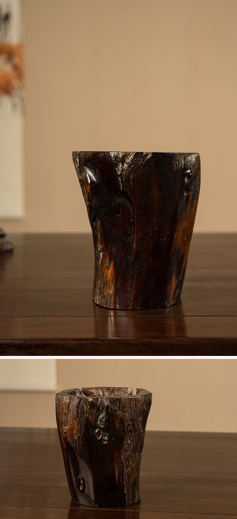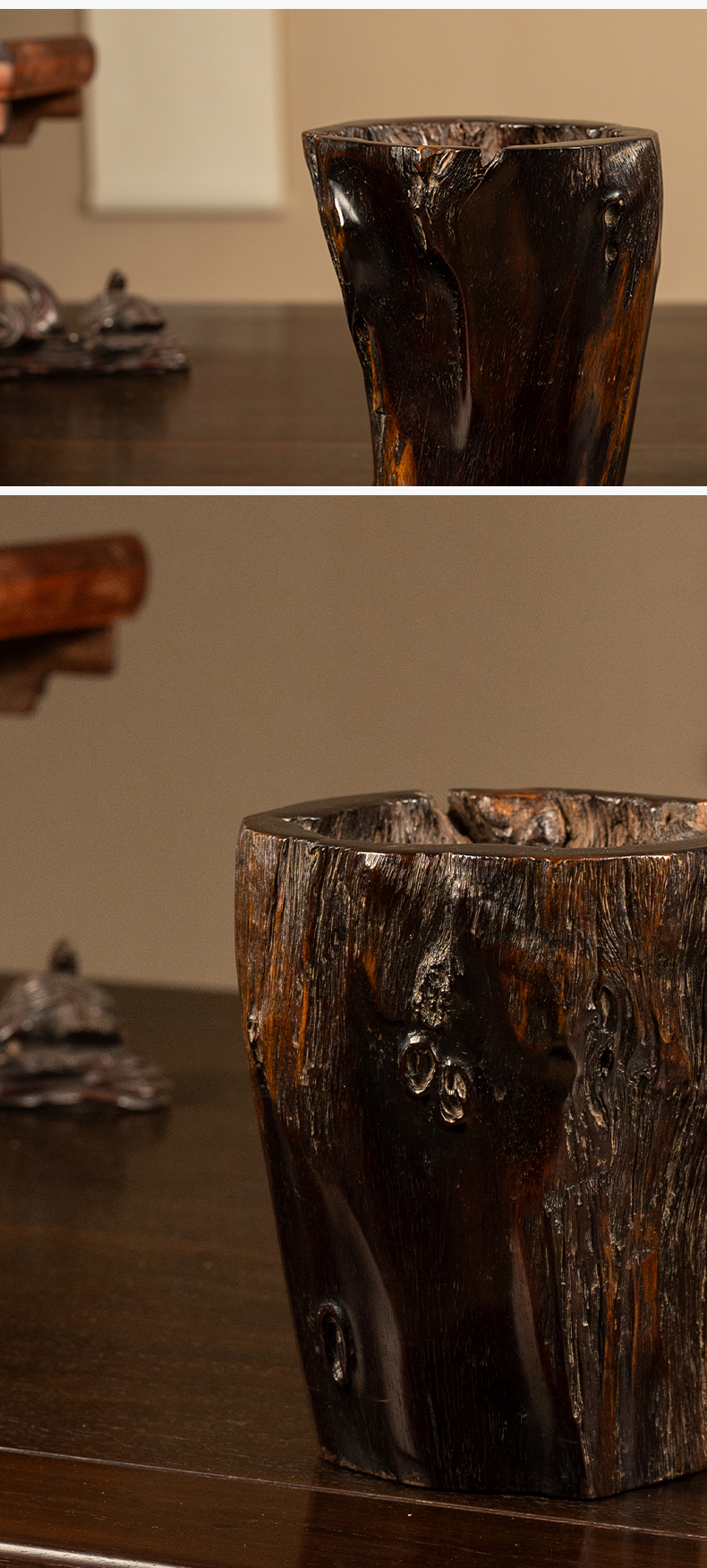 清 黄花梨镶竹丝编四抹门亮格柜摆件