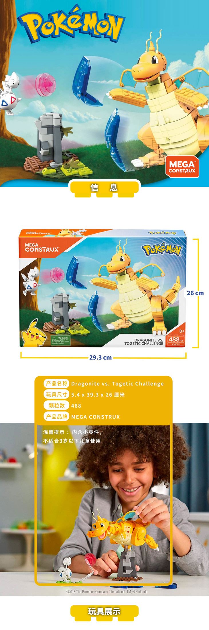 美泰 宝可梦 快龙与波可基古挑战套装 拼装玩具