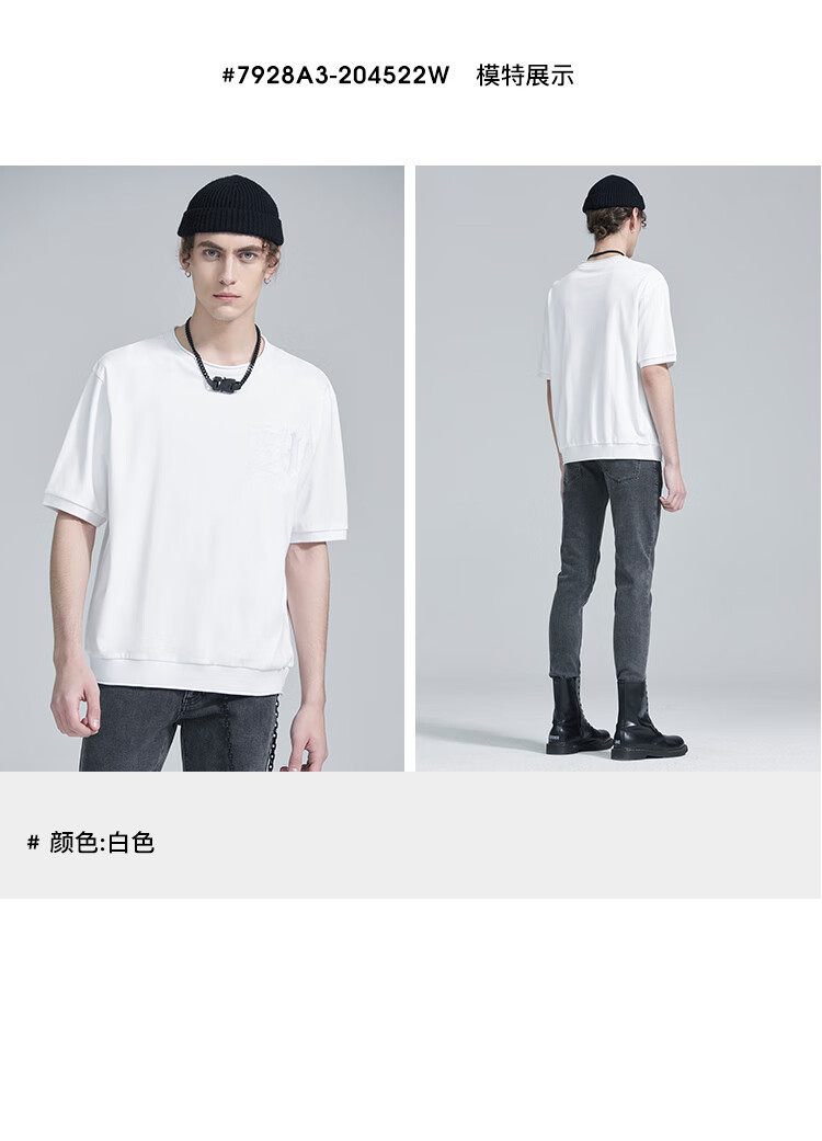 HIM漢崇 简约撞色字母烧花后幅印花舒适休闲百搭短袖T恤 2026夏季