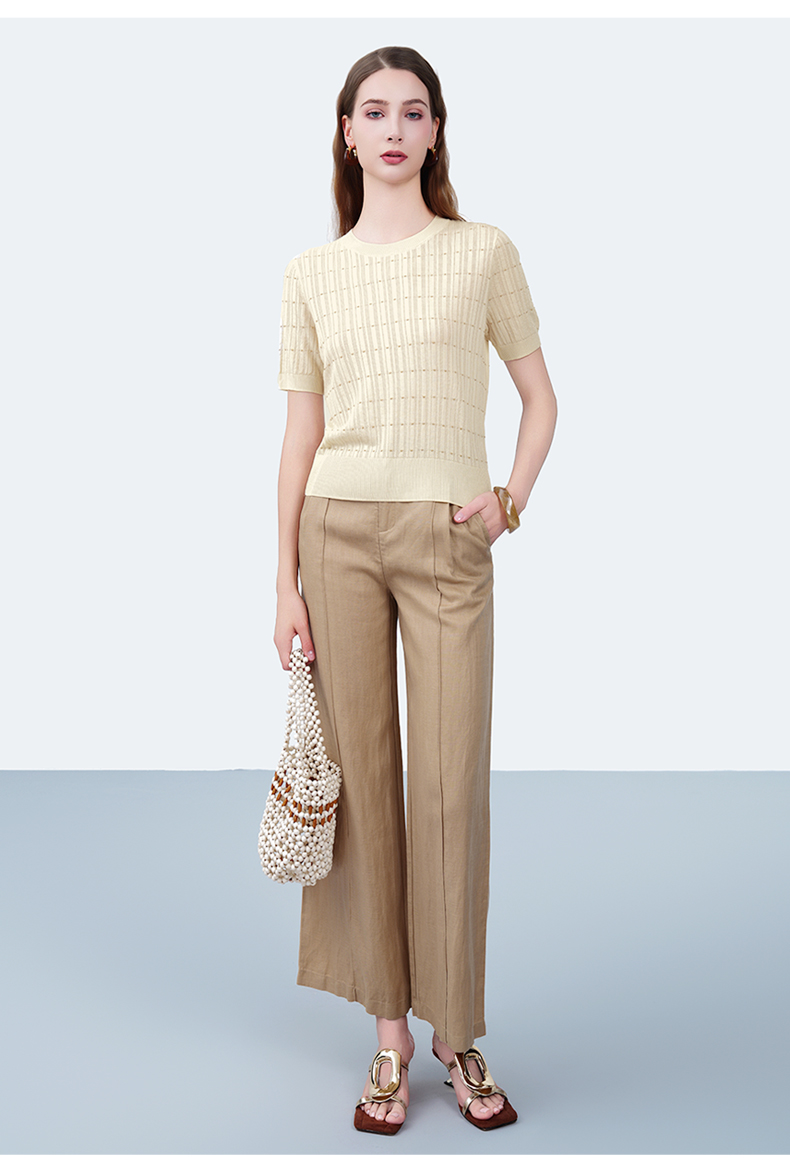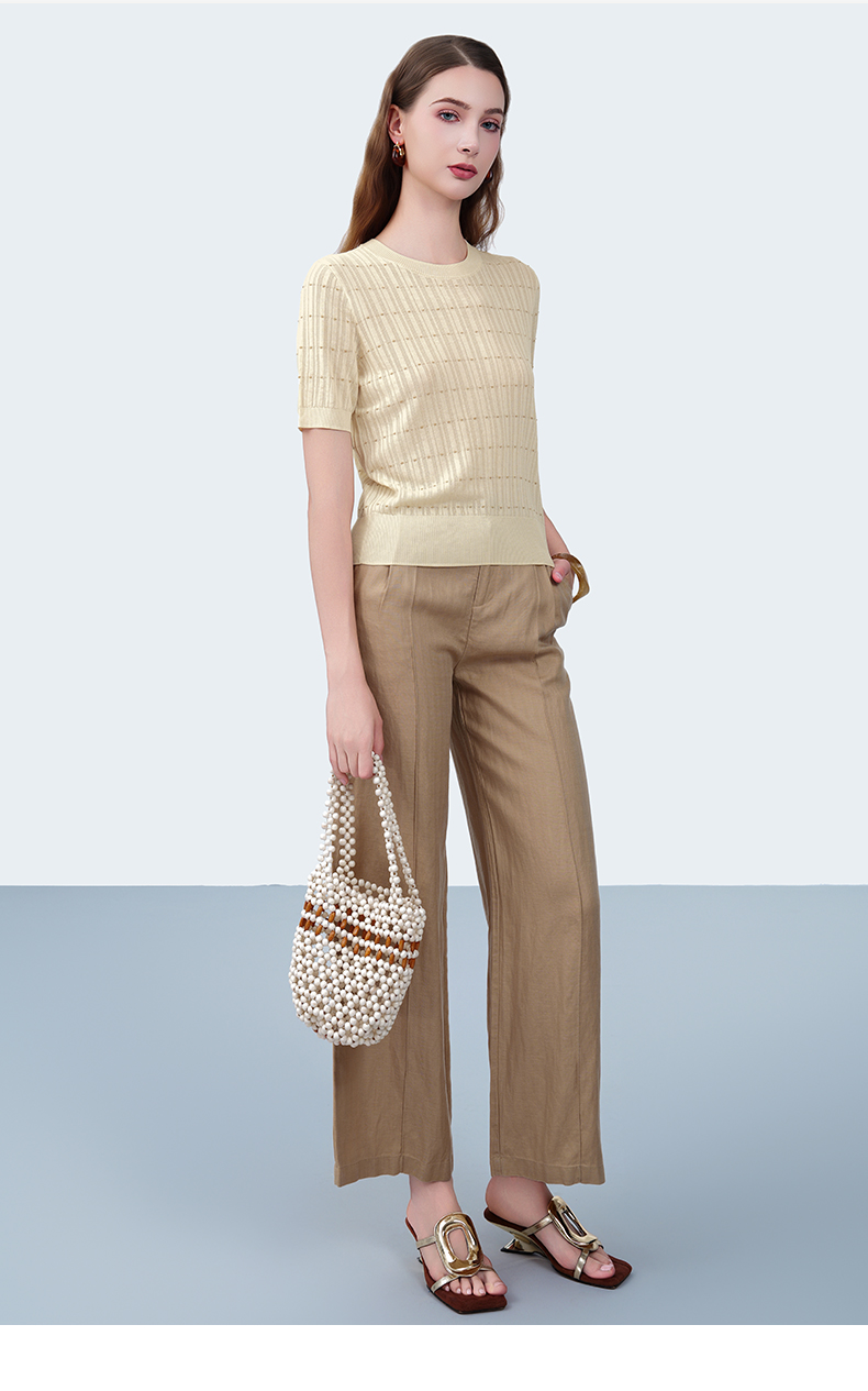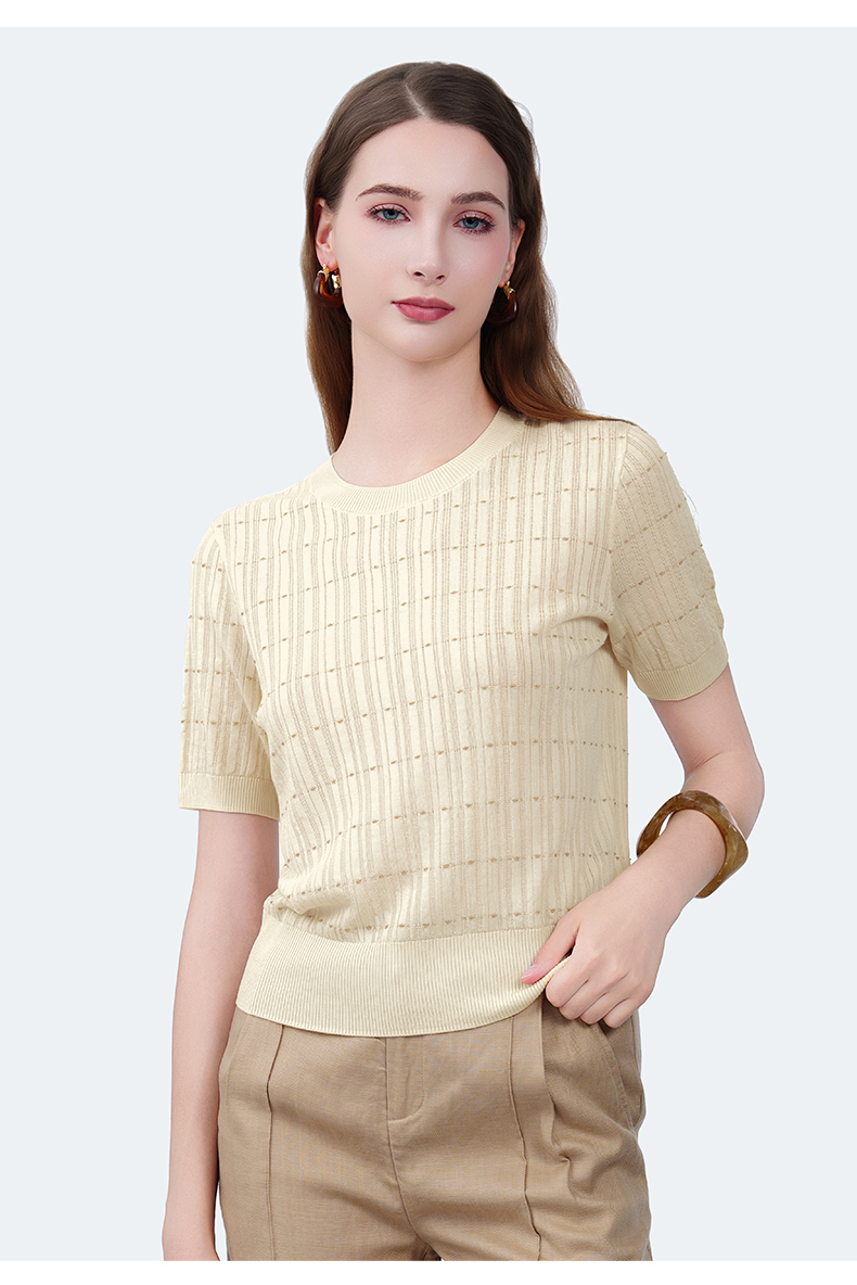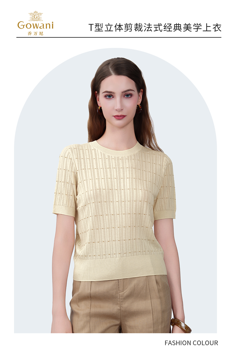 乔万尼新品金葱针织透气收腰T恤EZ2M118