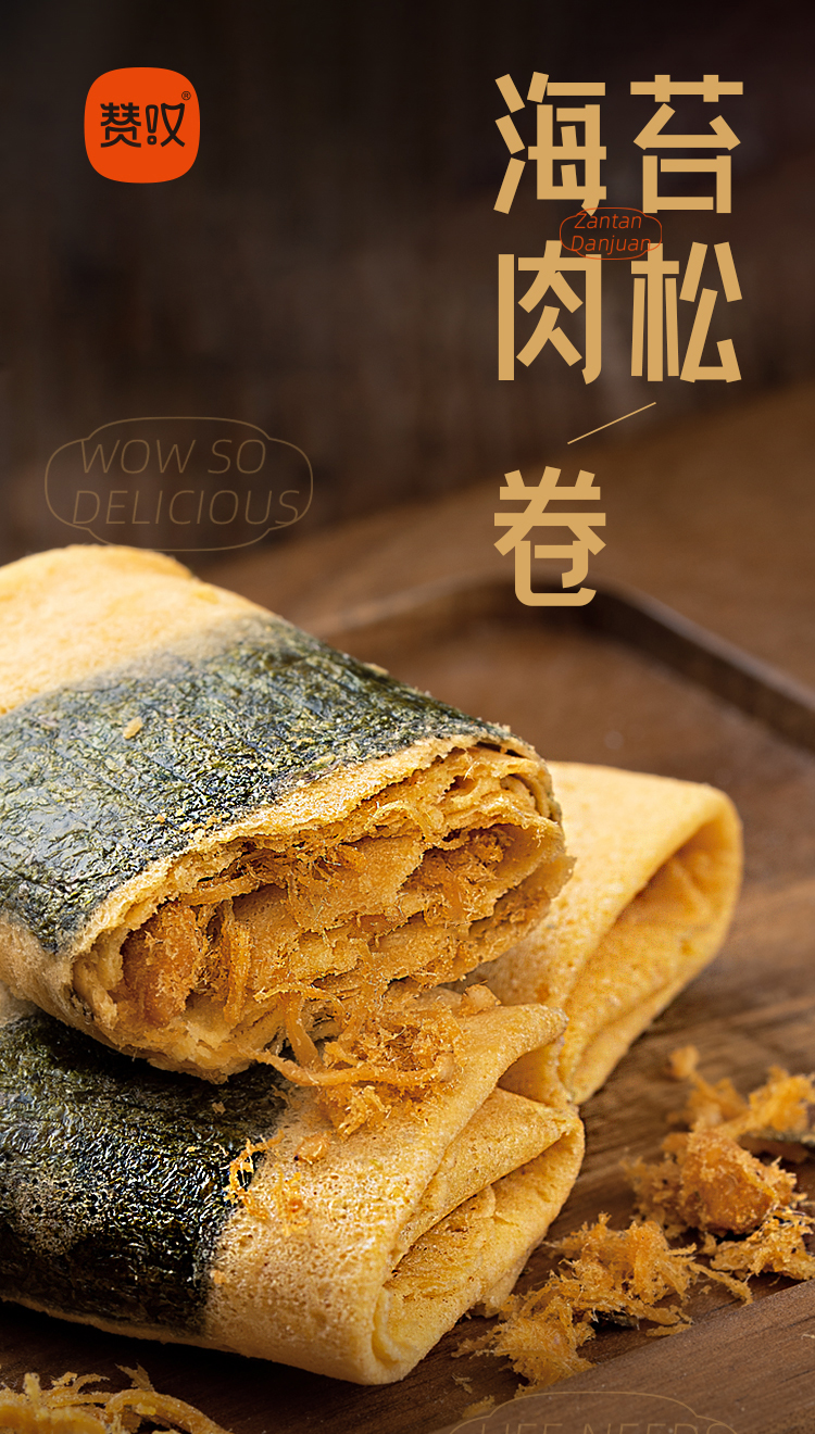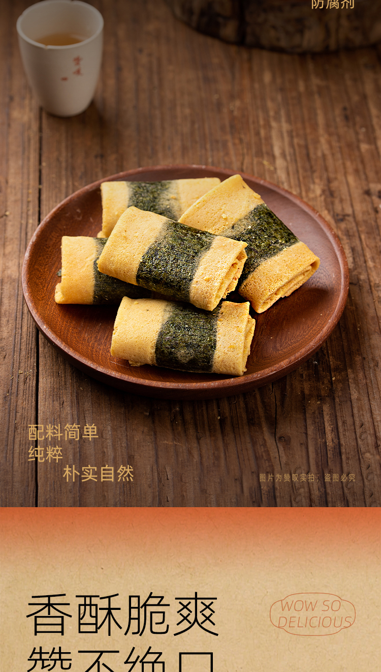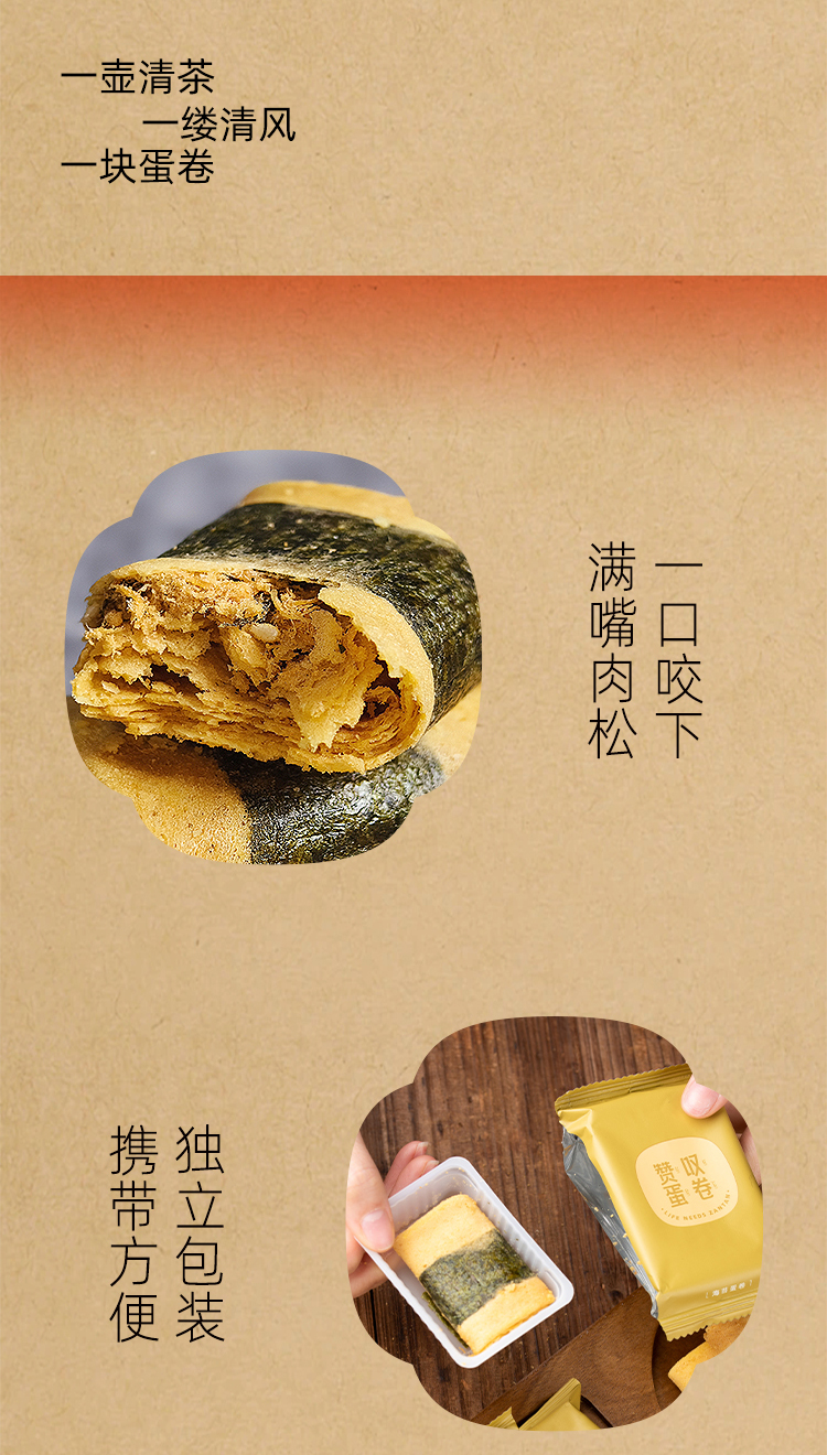 赞叹海苔肉松蛋卷下午茶点 香酥薄脆美味独立包装休闲零食