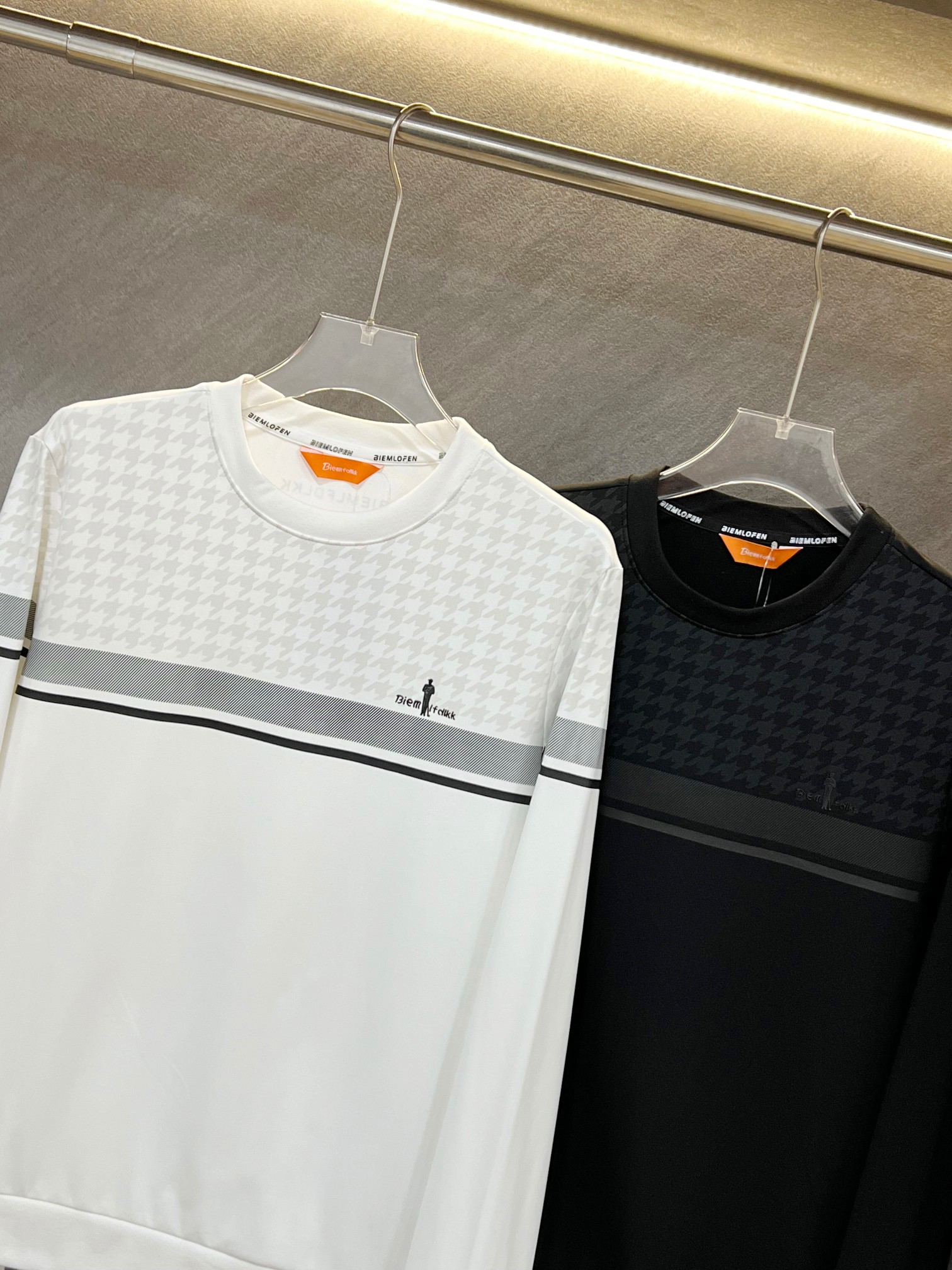 110 货号090522110 ss 出口订单比音勒芬加绒卫衣千鸟格纹 复古典雅 印花圆领T恤