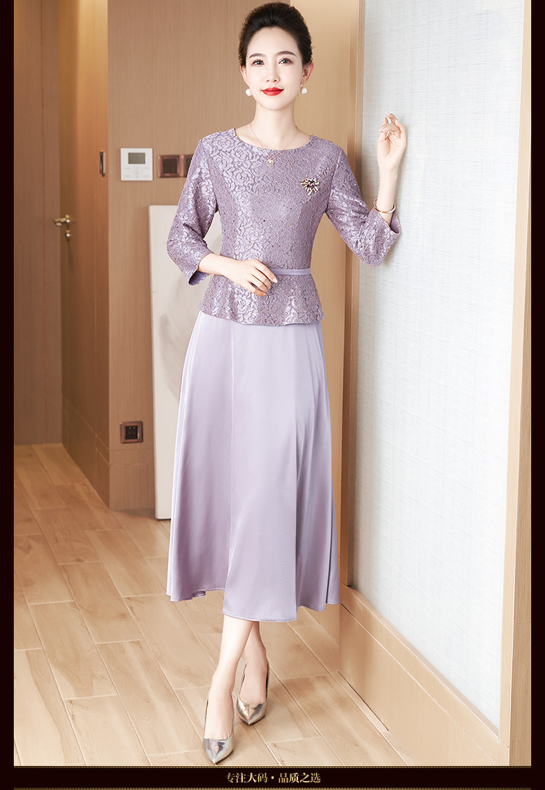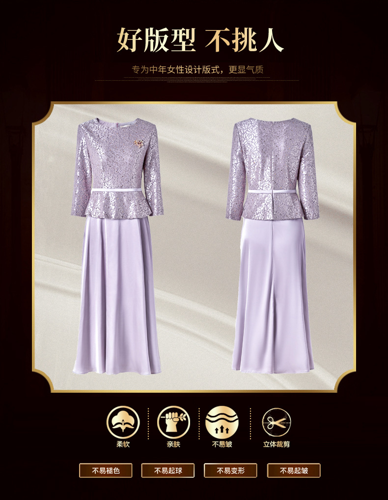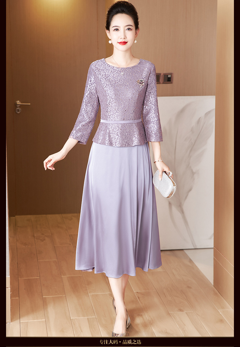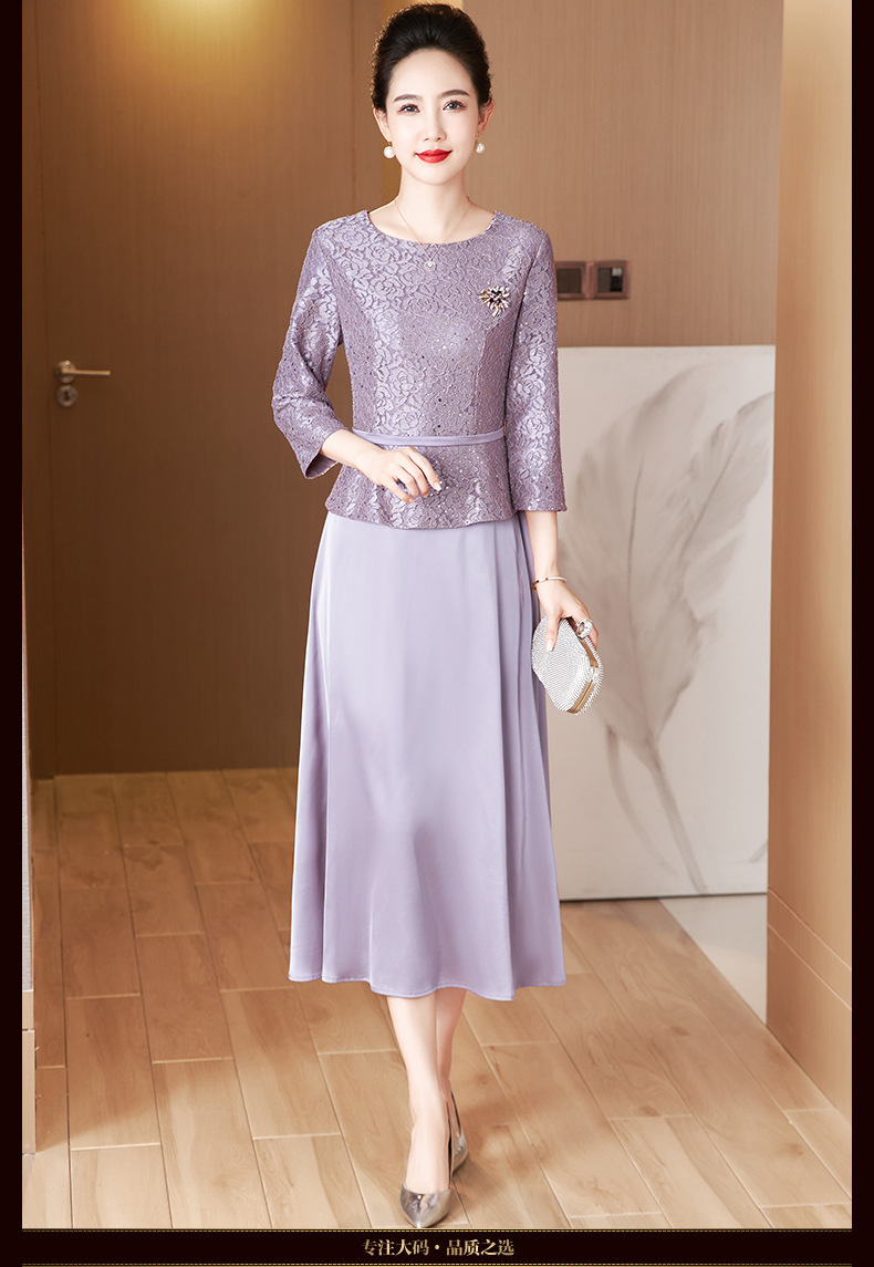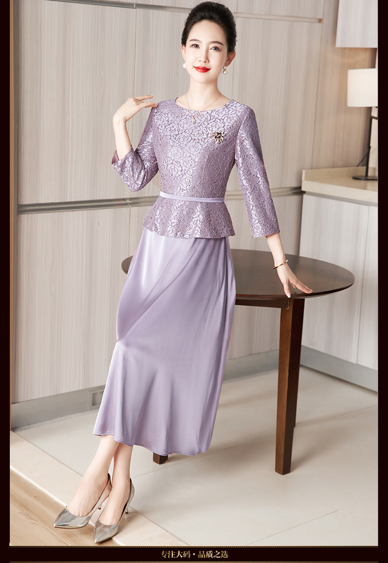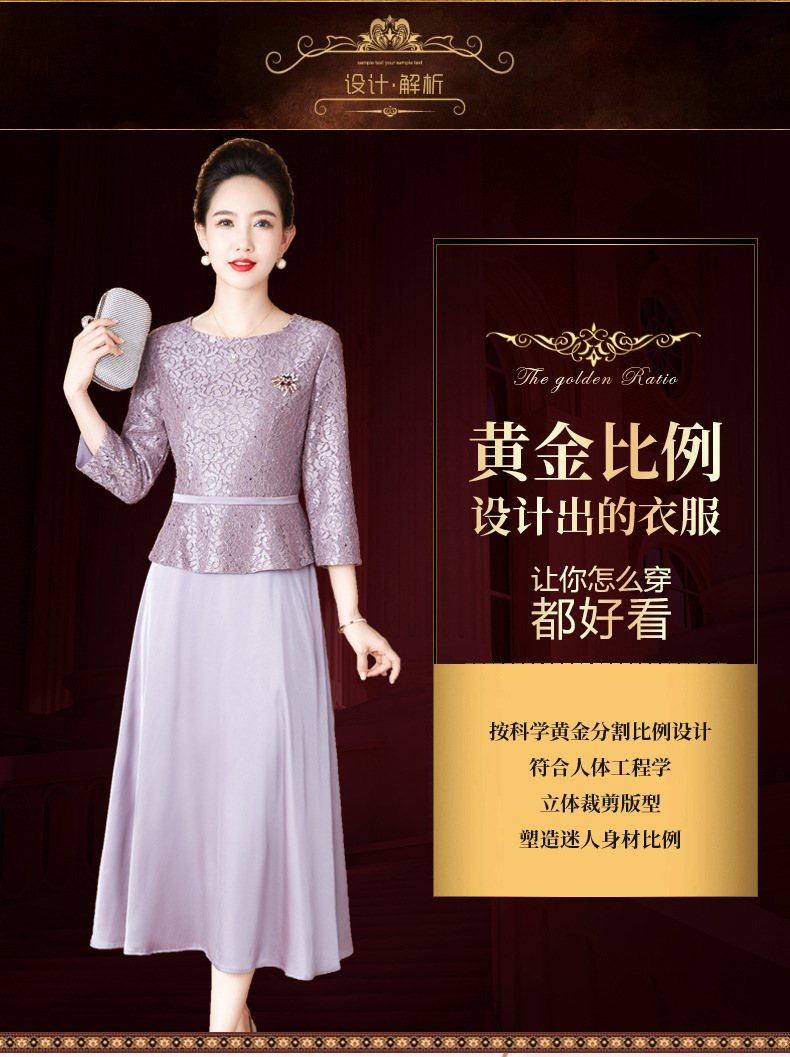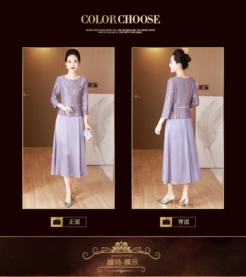 秋季收腰遮肚假两件礼服妈妈装气质中长款显瘦喜婆婆裙LC2372
