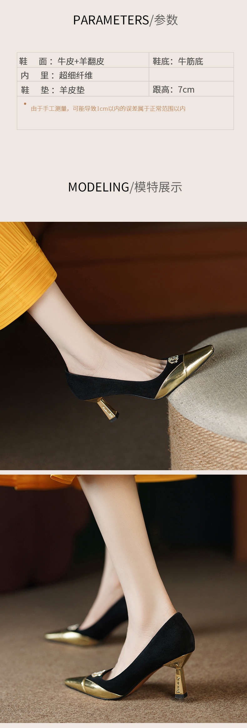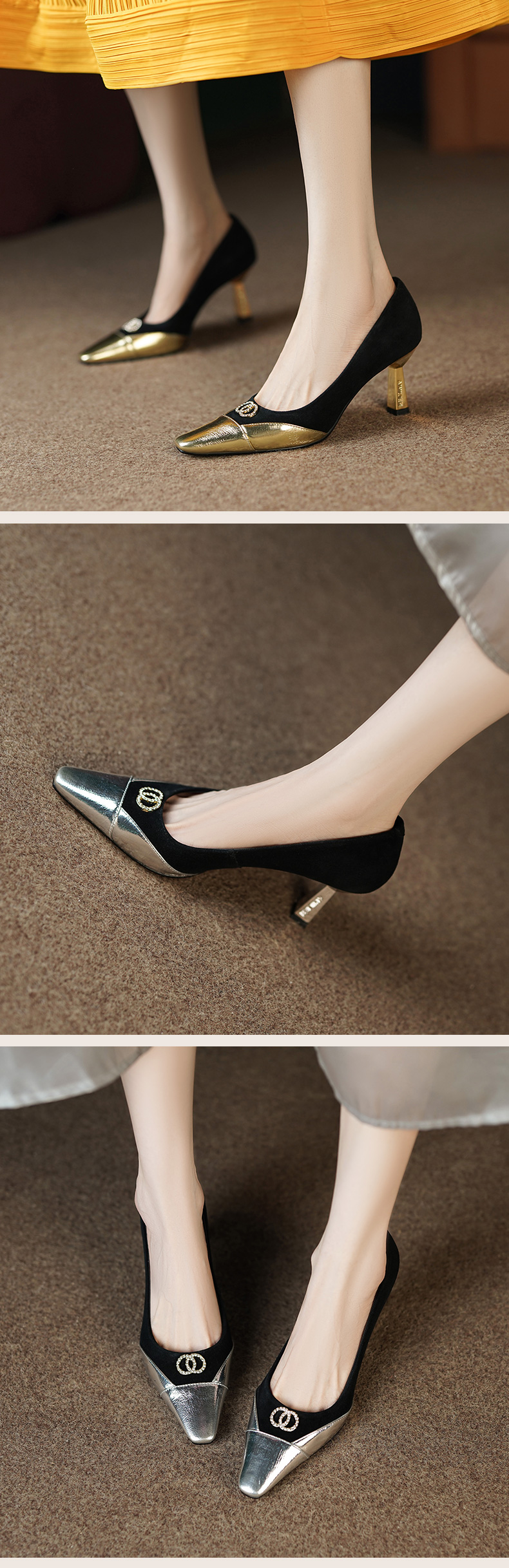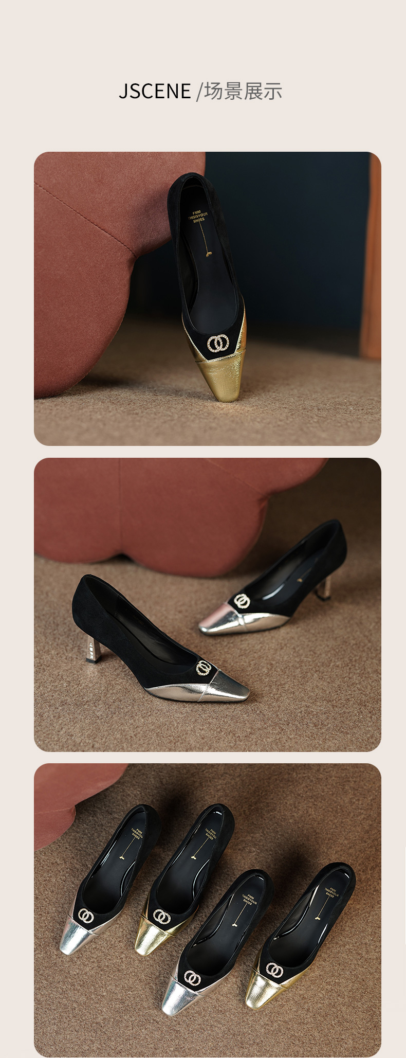 秋季新款,时尚个性撞色小香风高跟单鞋HCY-3667