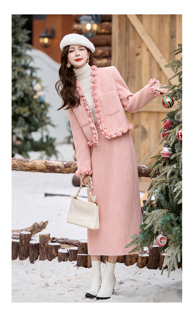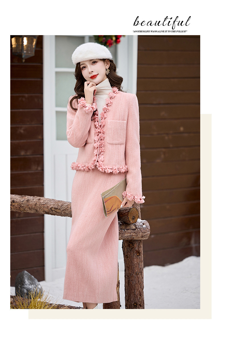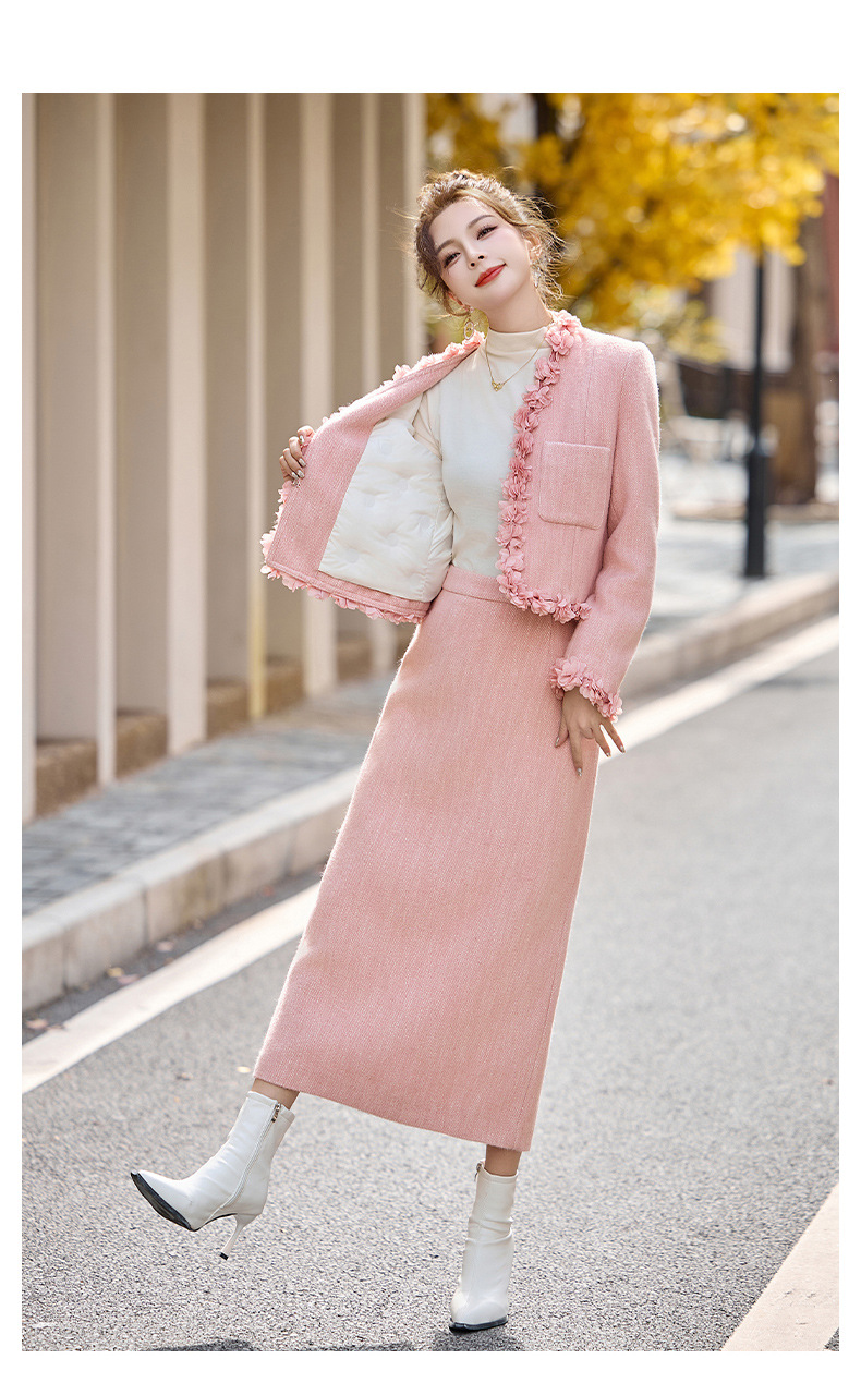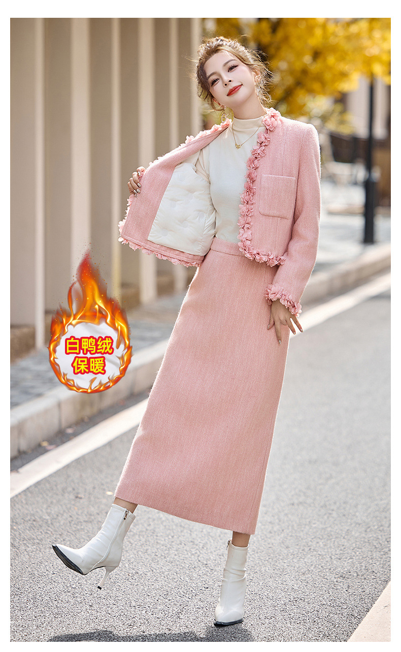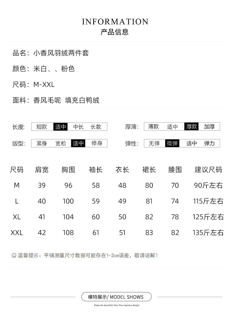 小香白鸭绒羽绒气质保暖冬装,甜美街头风两件套HR-LMJY8861