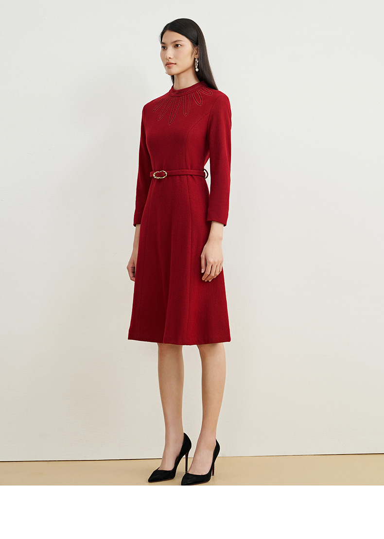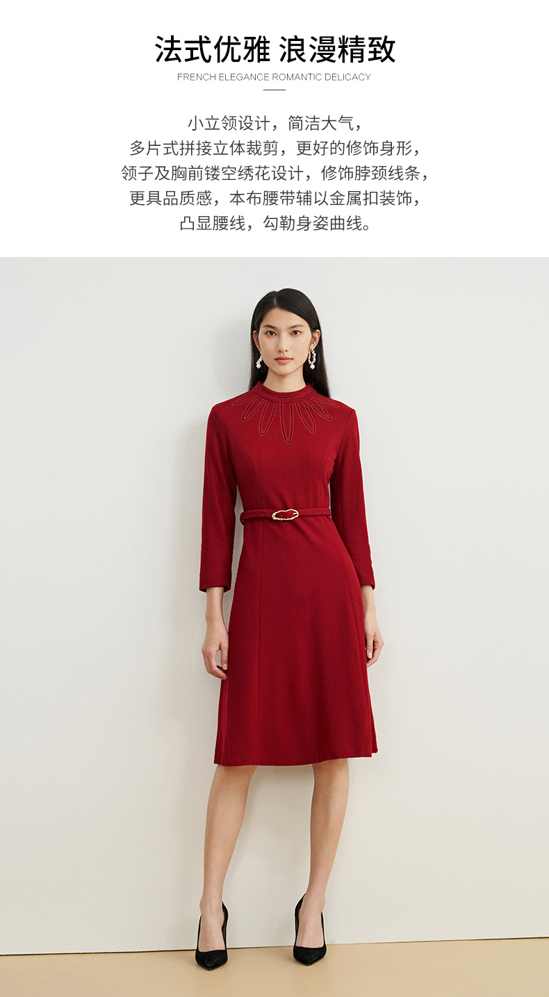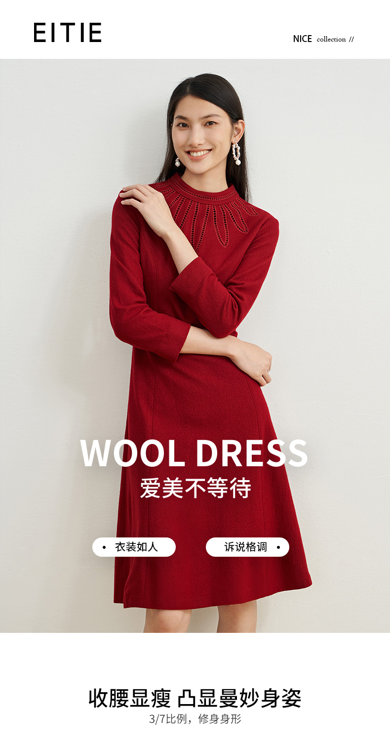 EITIE爱特爱新款高领收腰气质连衣裙6807512