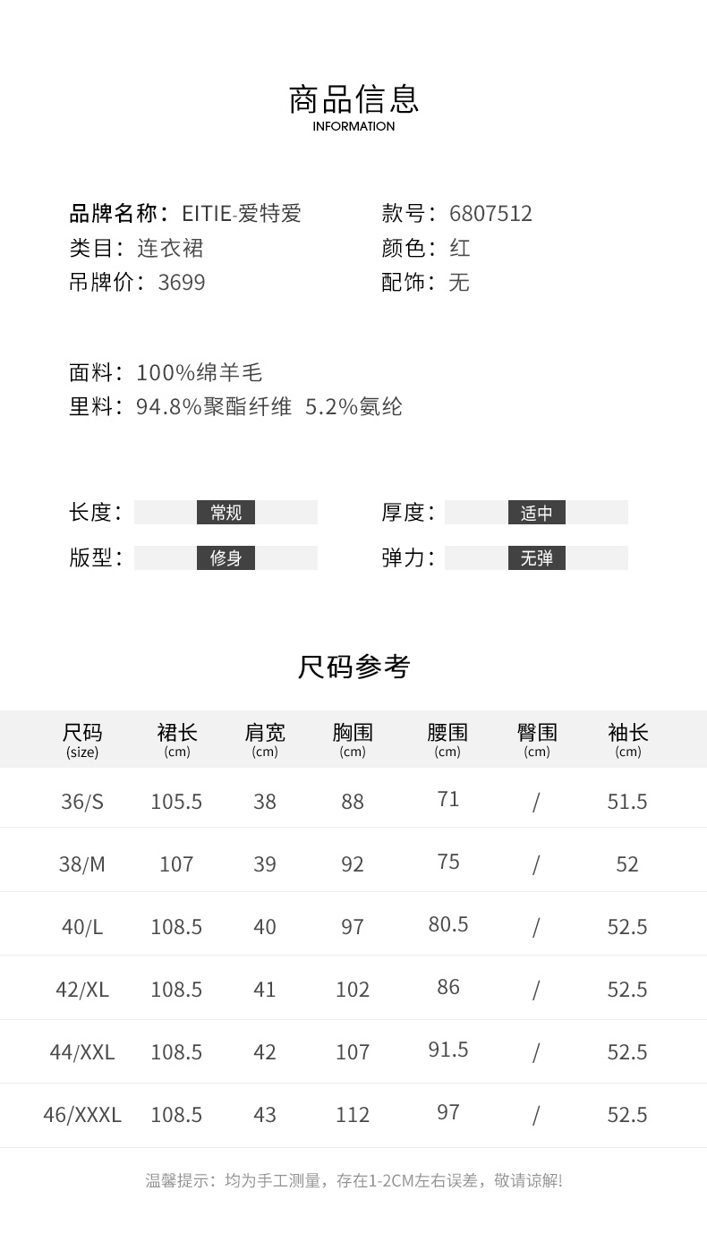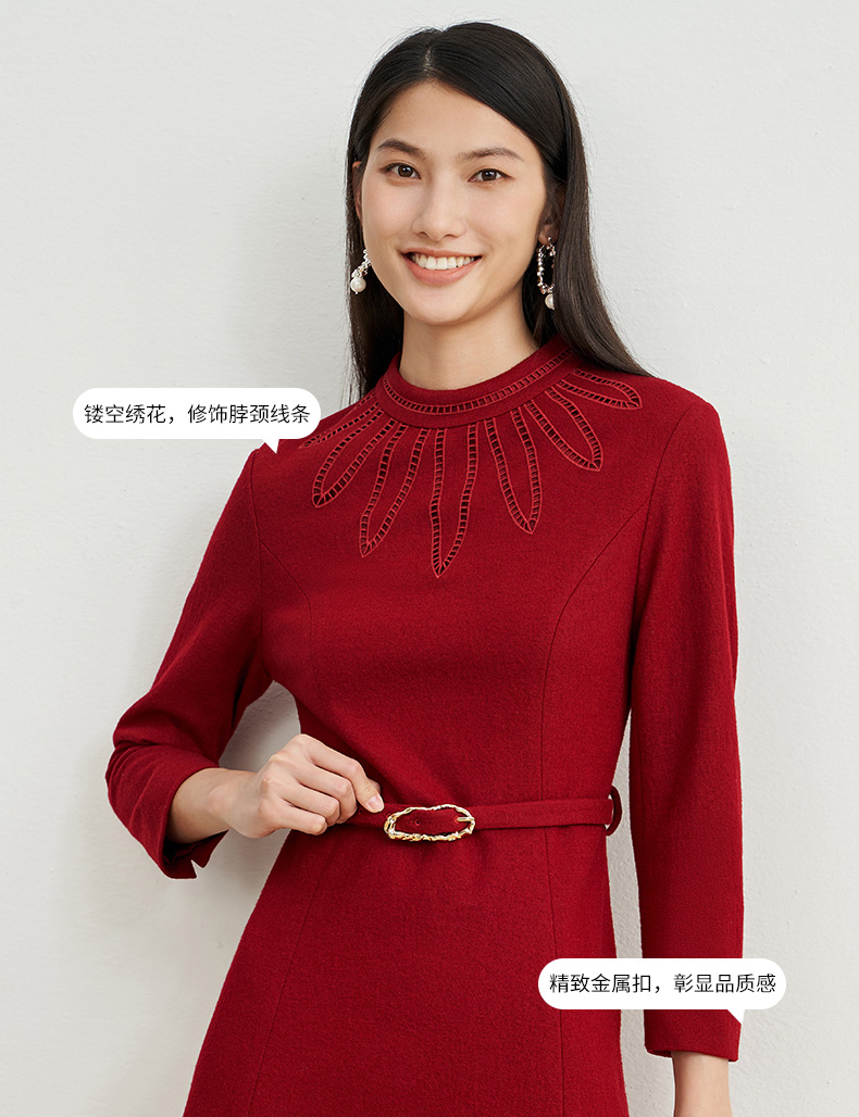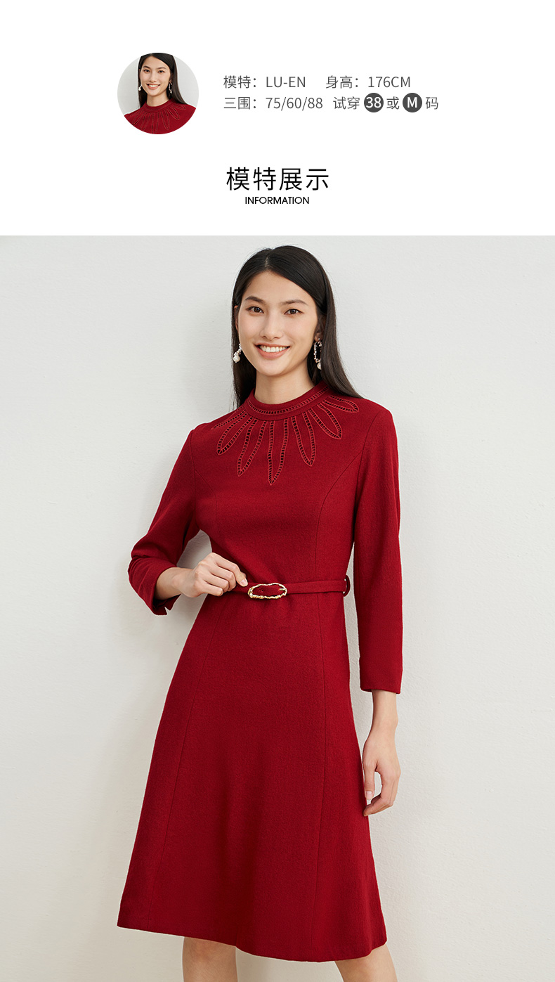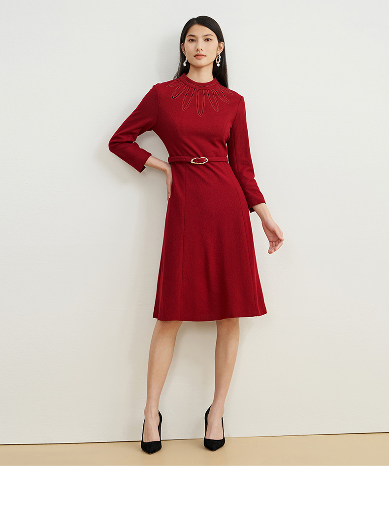 EITIE爱特爱新款高领收腰气质连衣裙6807512