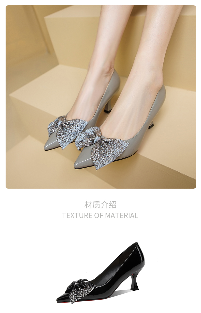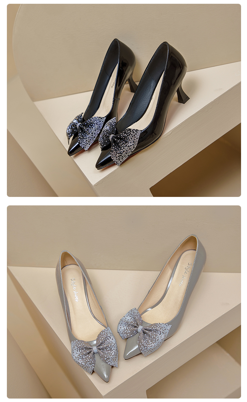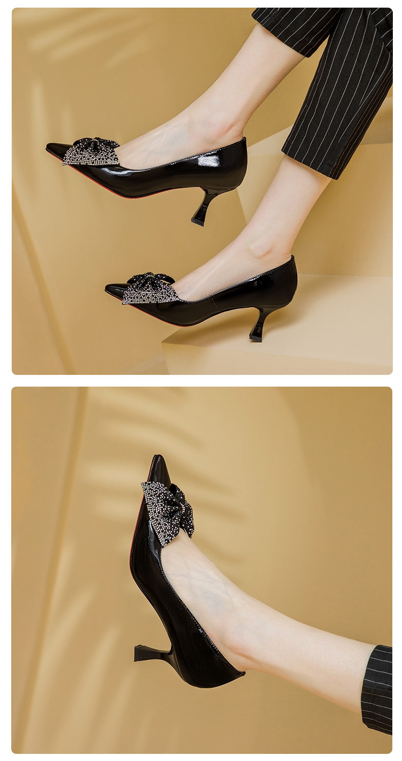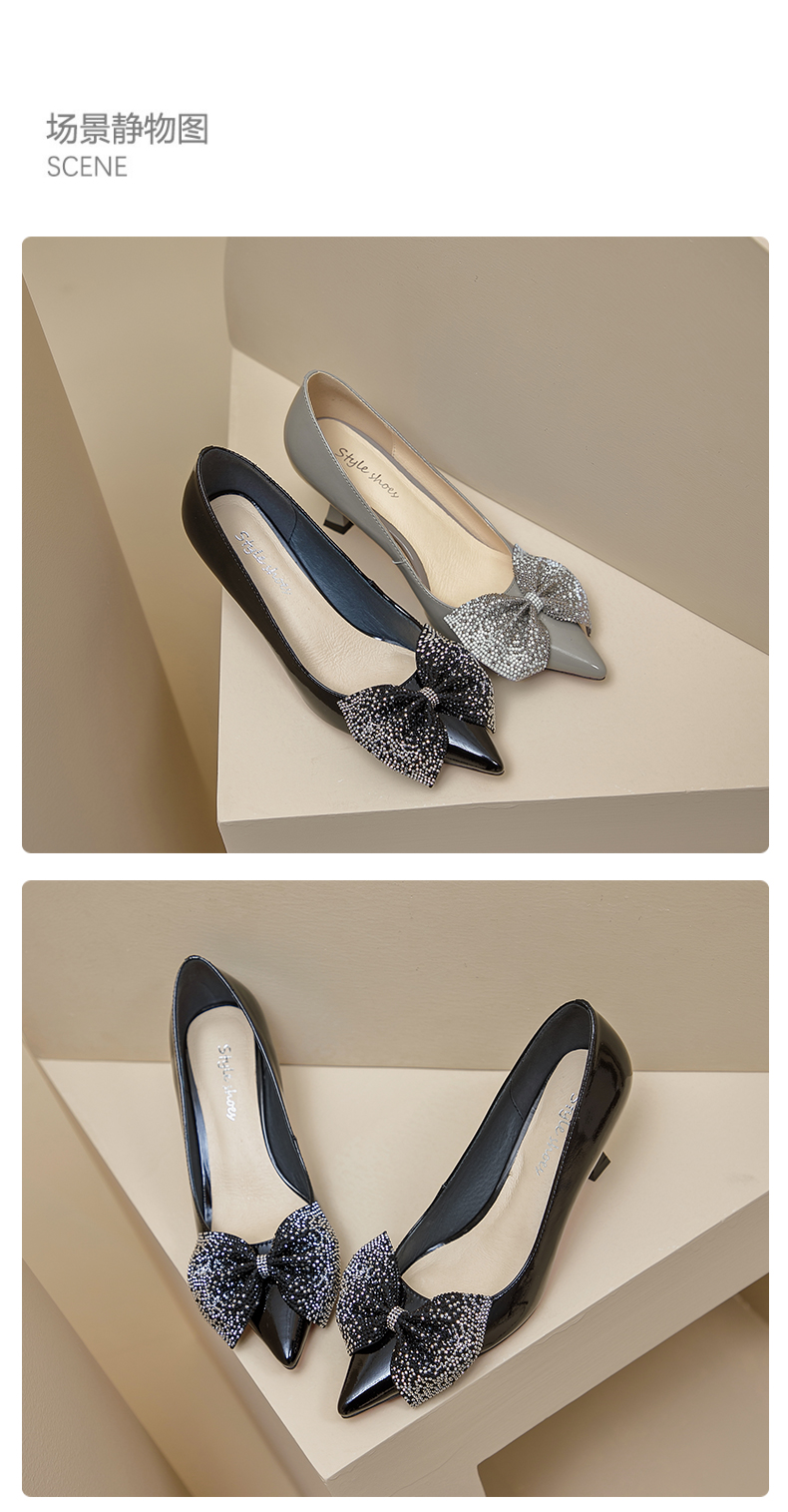 时尚优雅,尖头真皮蝴蝶结高跟单鞋XL542