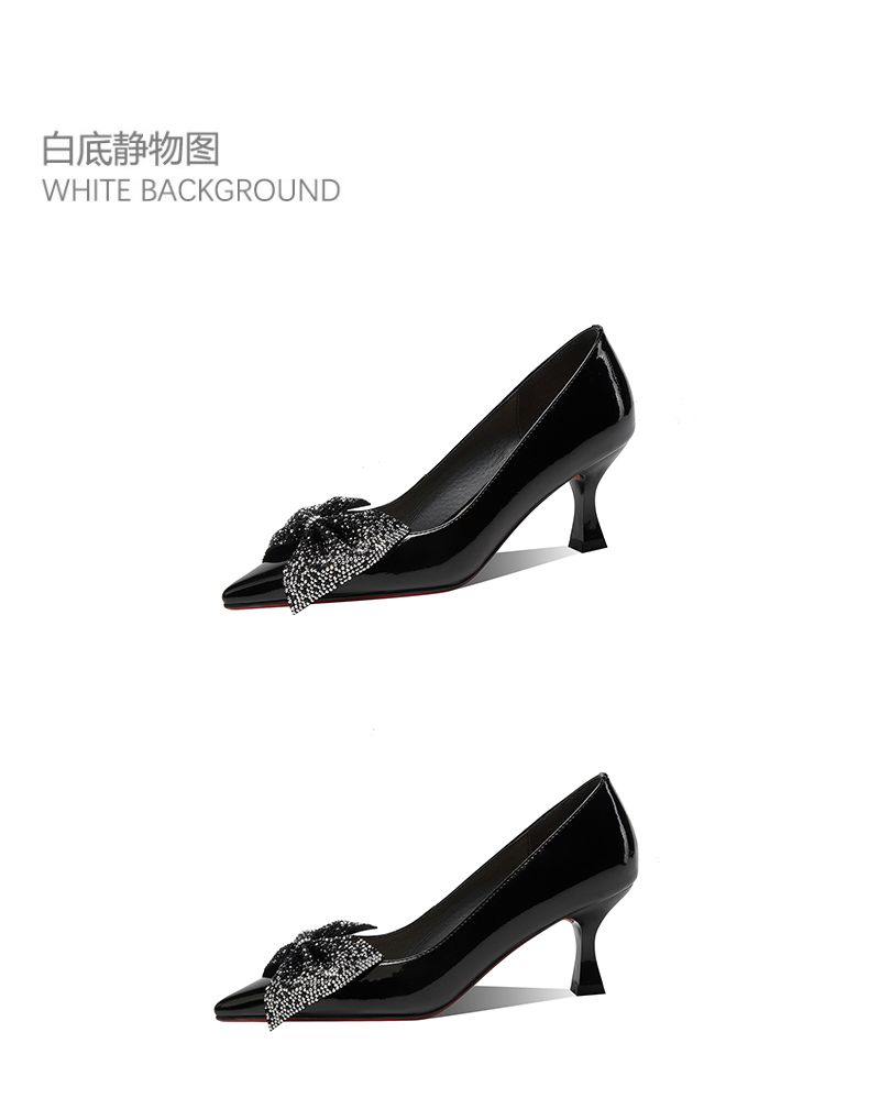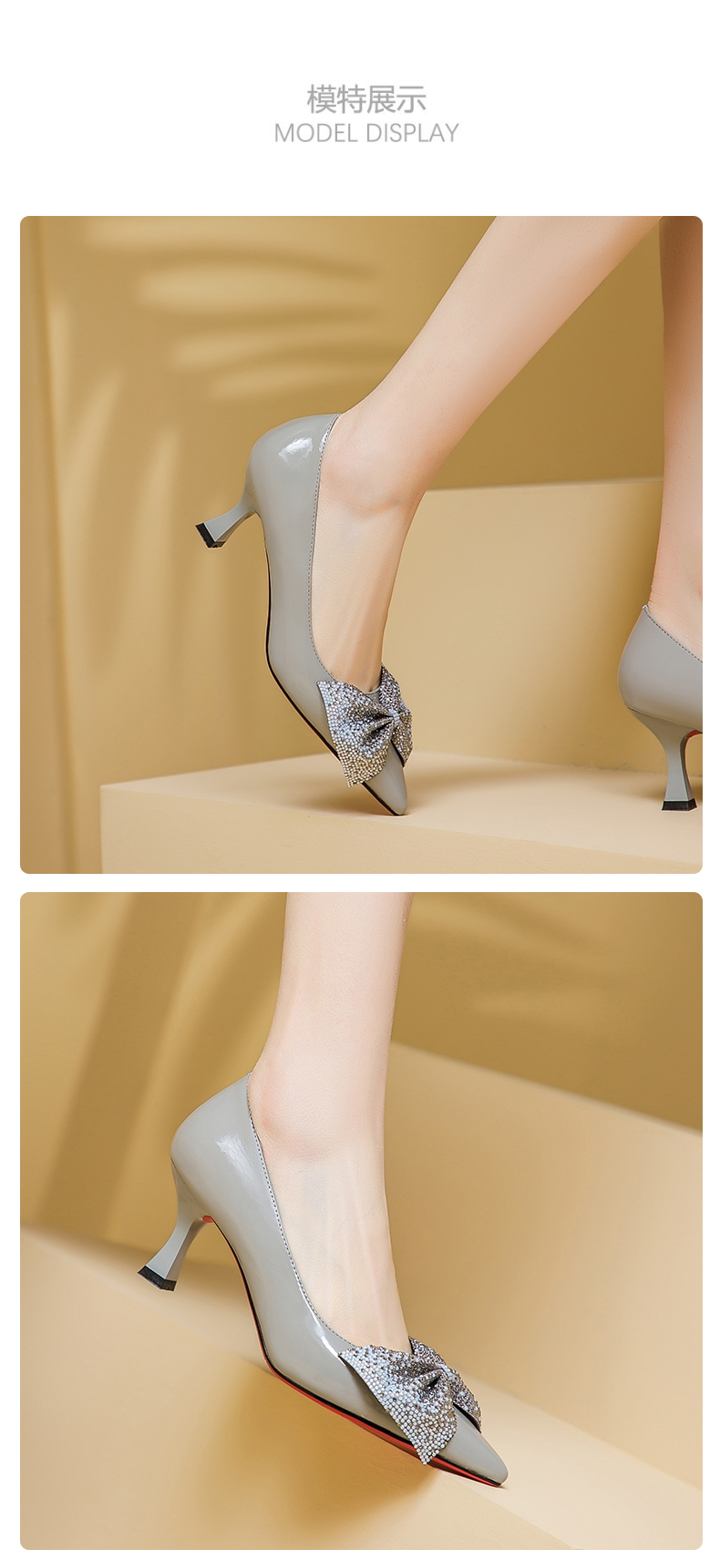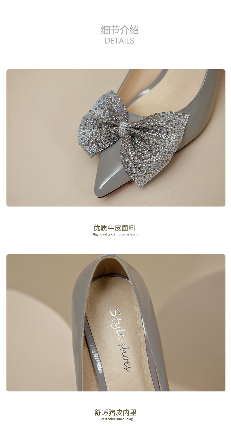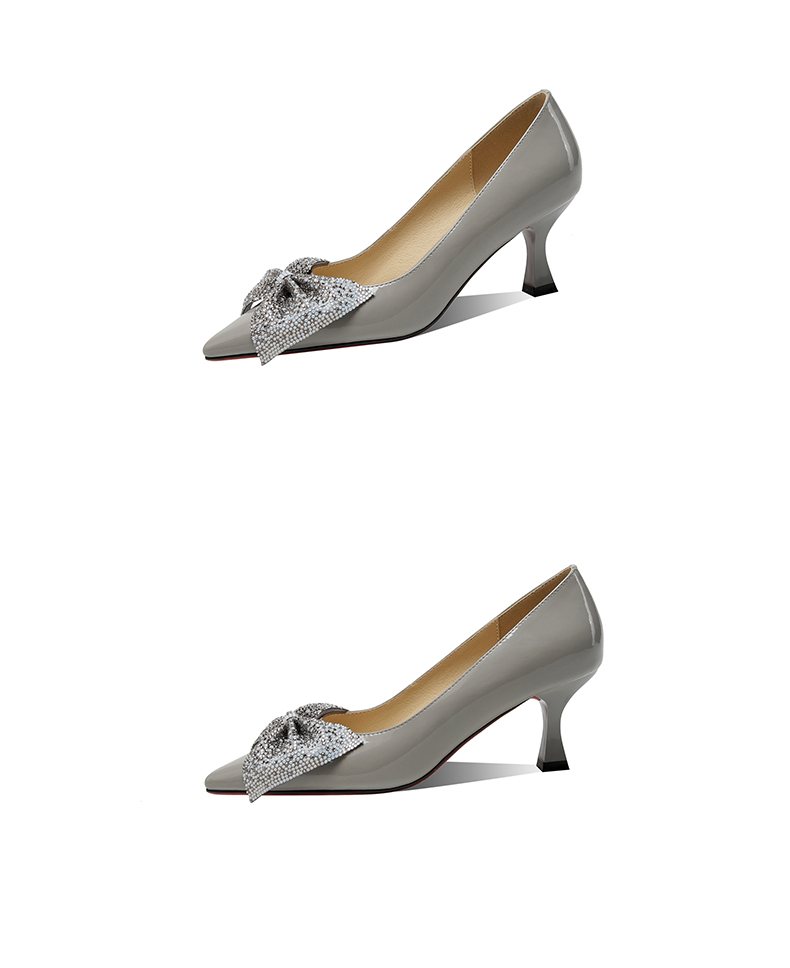 时尚优雅,尖头真皮蝴蝶结高跟单鞋XL542
