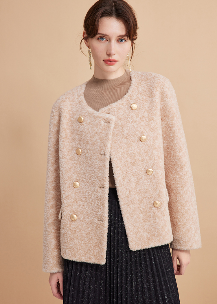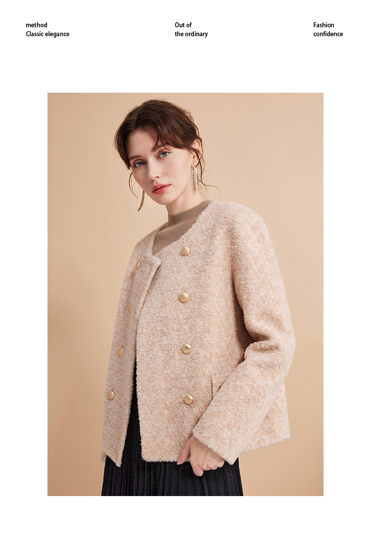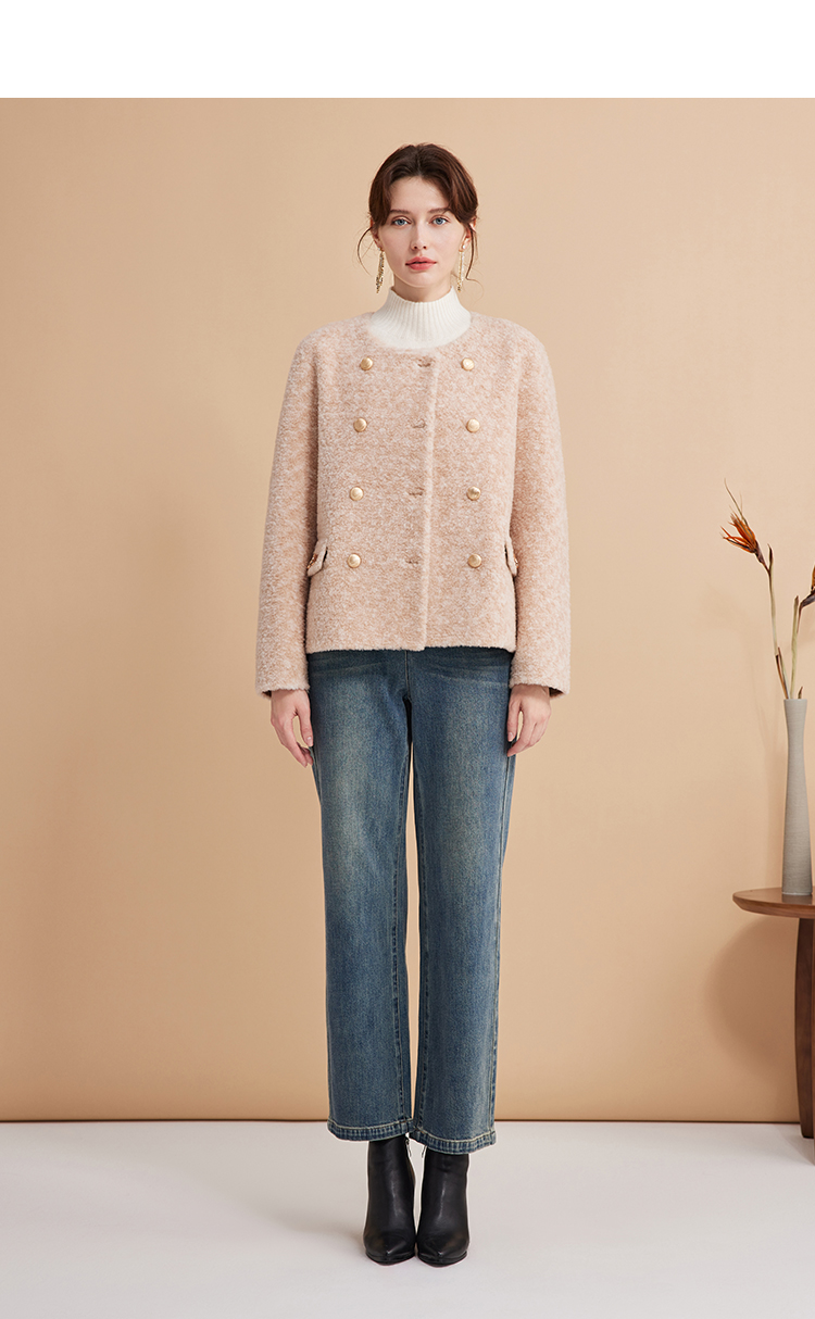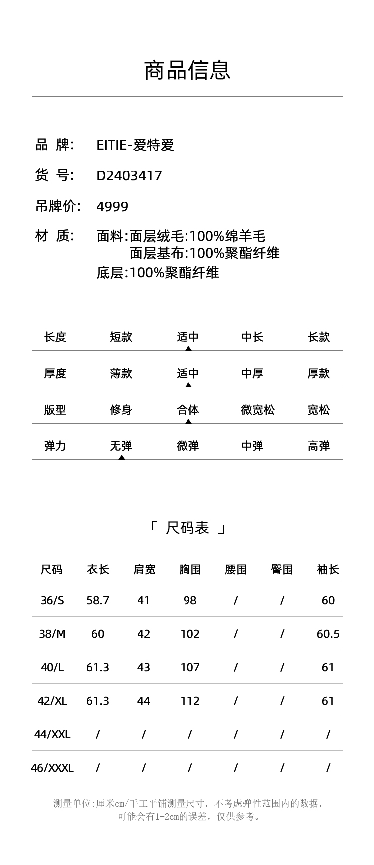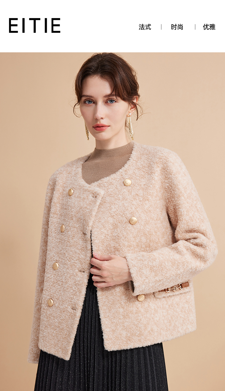 EITIE爱特爱冬季新款气质小香风100%绵羊毛直筒显瘦保暖外套D2403417