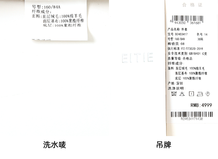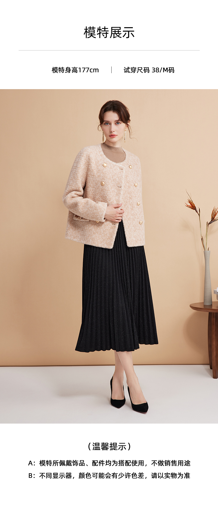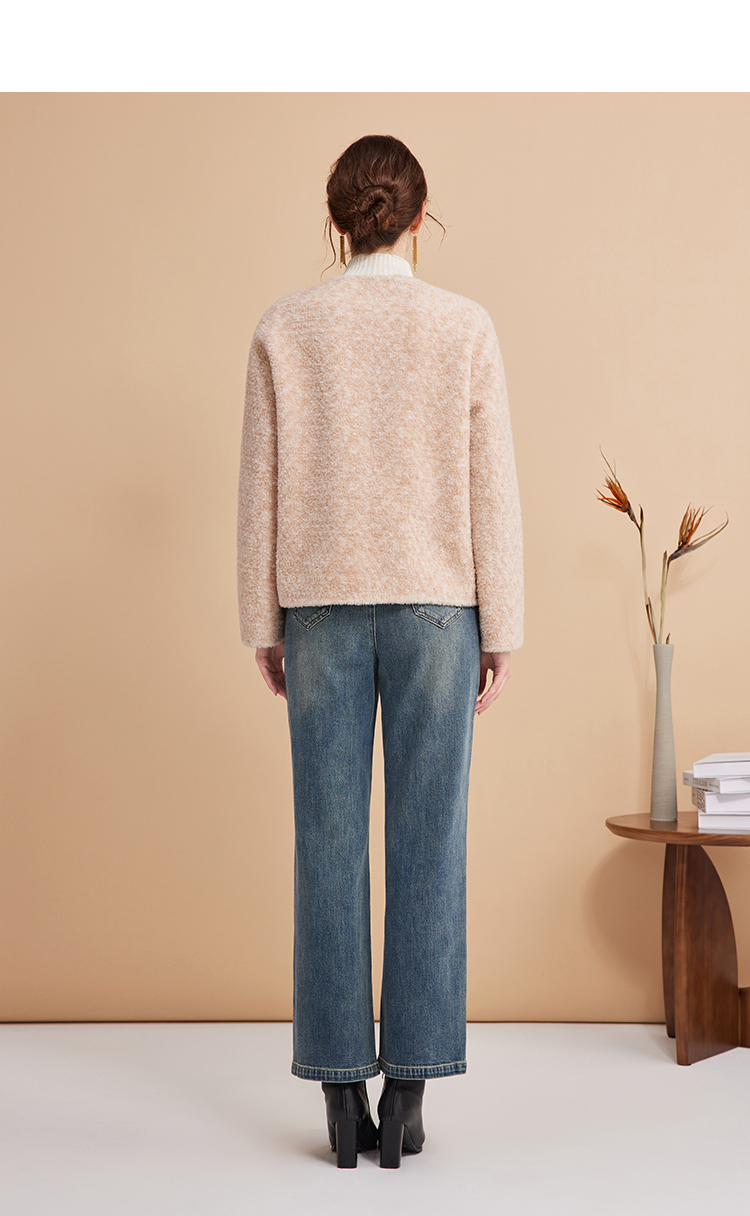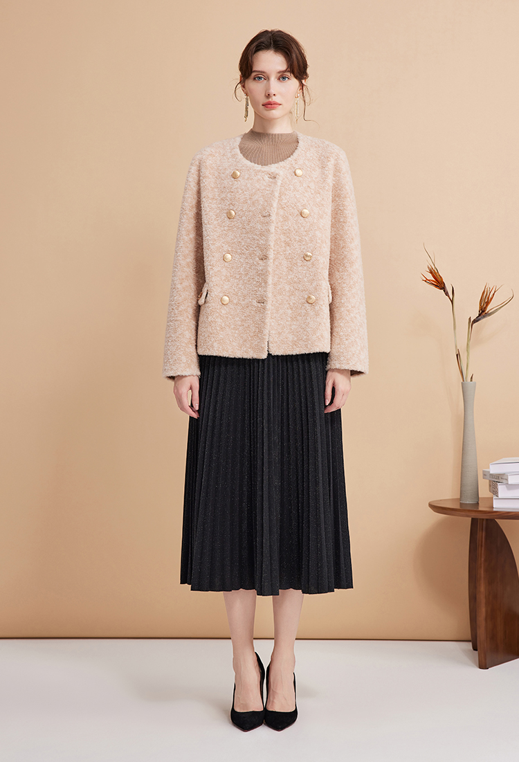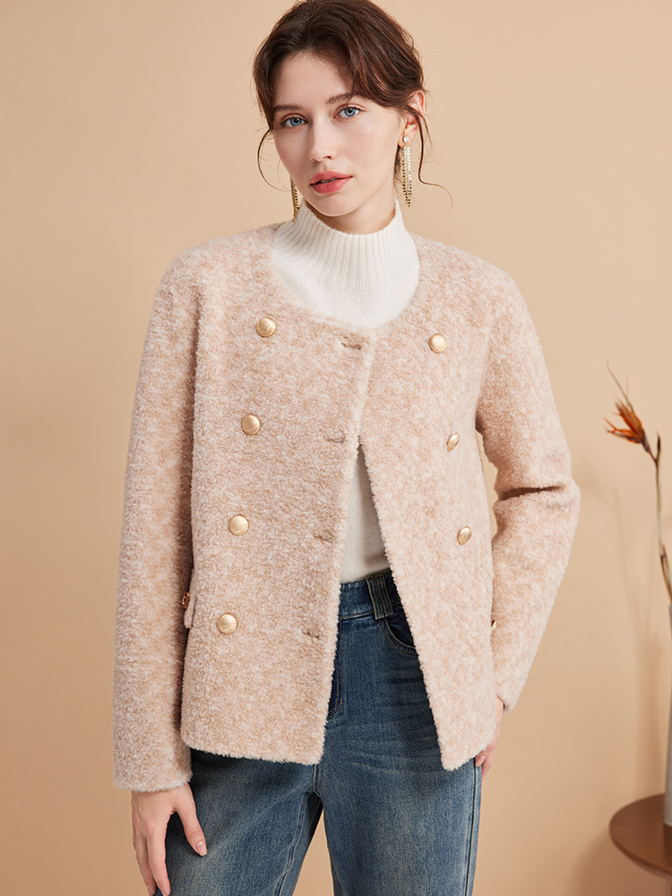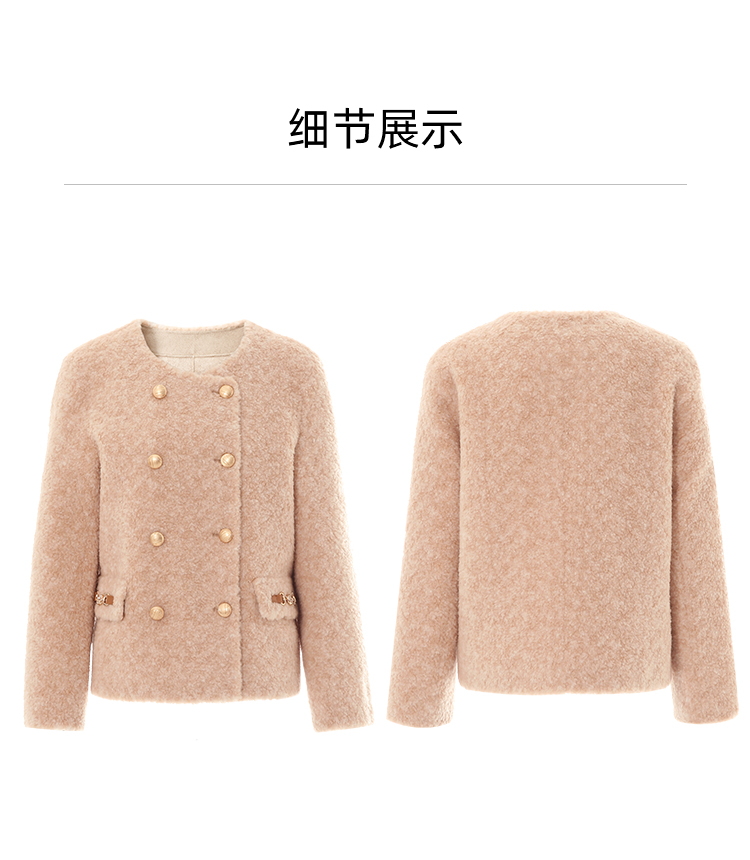EITIE爱特爱冬季新款气质小香风100%绵羊毛直筒显瘦保暖外套D2403417