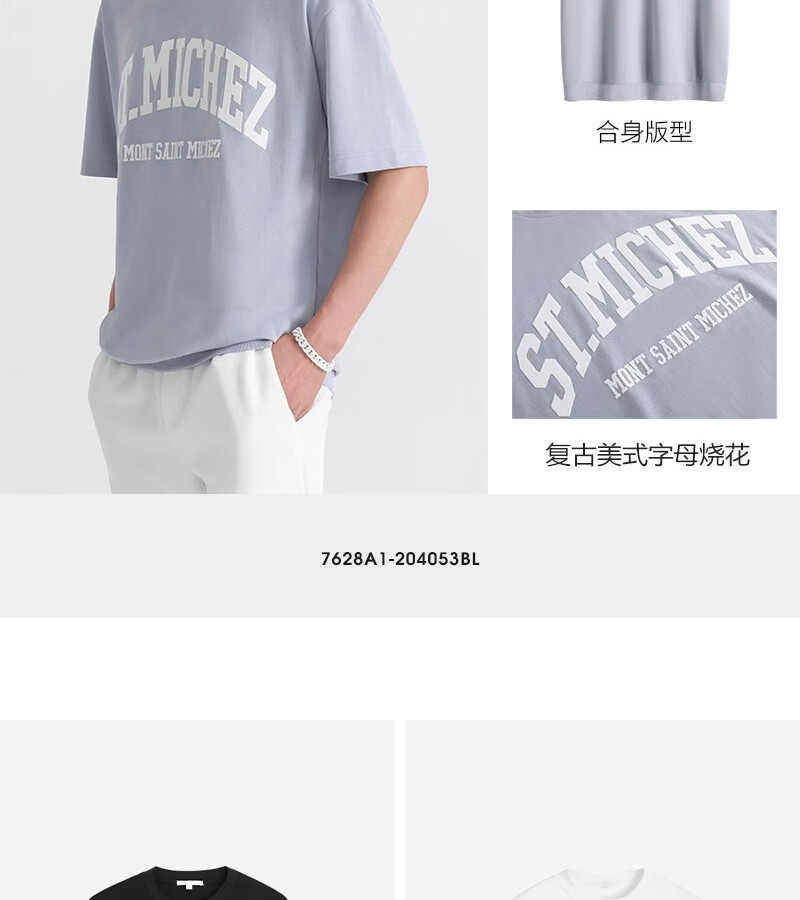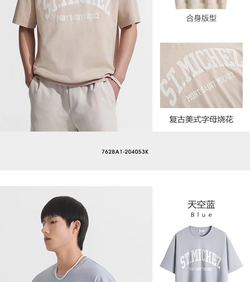 HIM漢崇 男士舒适休闲短袖T恤复古字母植绒印花圆领上衣 2026夏季