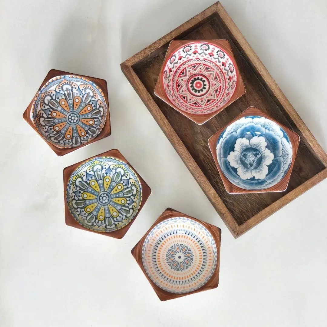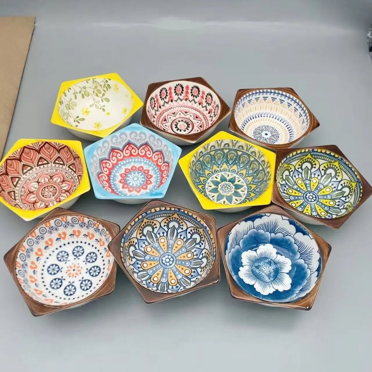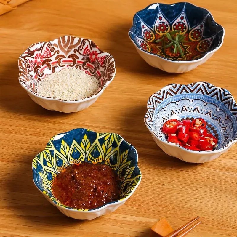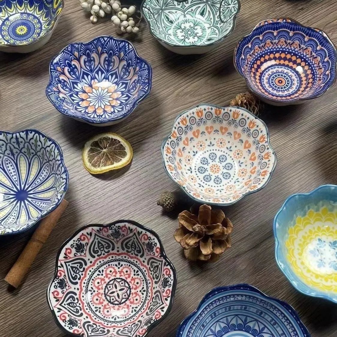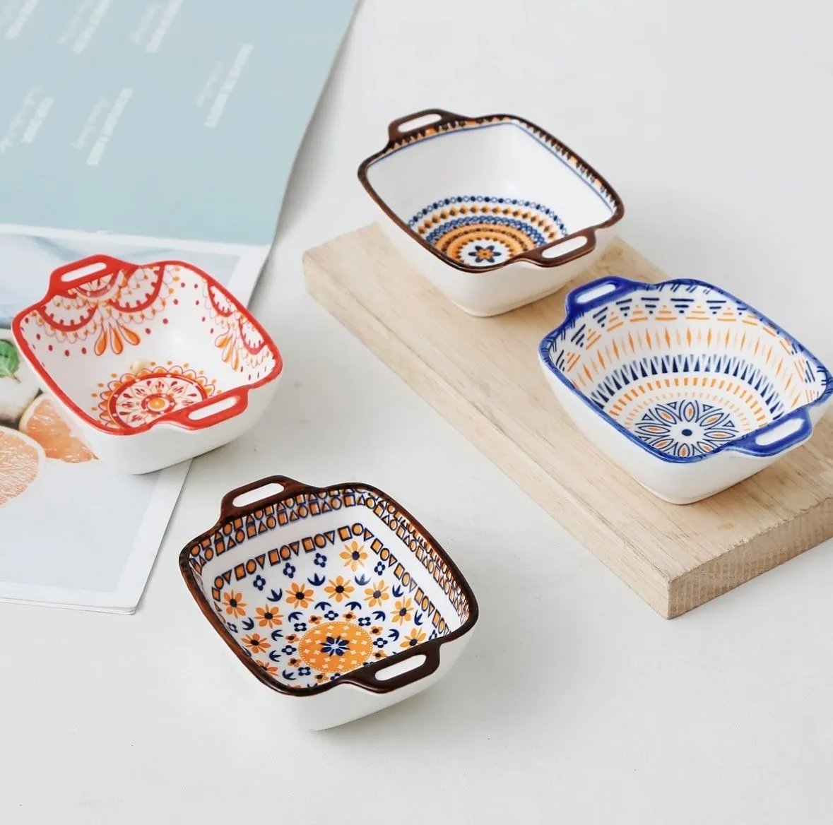 太实用了❗️出口日本❗️✅蘸料、小食、甜品都可以装 【波西米亚风4英寸陶瓷料碗福袋】盲盒仪式感拉满! 🔴3种碗型:双耳/花瓣/五边形,随机发 ✅出口日本,多款波西米亚花纹 ✅高温釉下彩工艺,耐用不娇气 ⚠️能进微波炉|洗碗机|实用性chao高! 【产品名称】:波西米亚风4英寸陶瓷料碗福袋 【产品规格】:6个,花色随机 【产品材质】:陶瓷 【陶瓷工艺】:釉下彩 【发货地区】:山东临沂 【发货时间】:72小时,周日不发,爆仓顺延 【发货快递】:极兔、圆通随机 【加费地区】:海南、甘肃、内蒙、青海、宁夏+2元 【不发货地区】新疆西藏不发 ✅花色随机发!不止图片款!介意慎拍! ✅清仓产品,如遇破损,可以退差价或者补发,不支持仅退款! 注意⚠️:陶瓷制品。不支持七天无理由❗